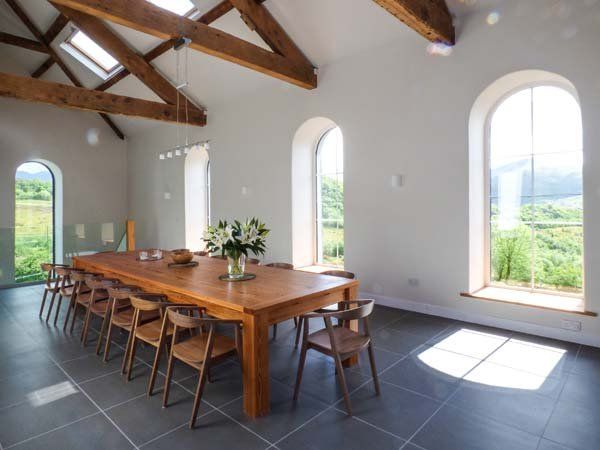 My daughter found this for us when she was staying over one weekend and we had been looking for a place to have a family and friends get-together for ages.. it was perfect! The interior of the building is architecturally very pleasing - a converted chapel with light pouring in to the living spaces from long windows that all the children in our party were utterly drawn to - they sat on the wide window sills reading, playing, just looking out at the mountains., even the 3 year old. The bedrooms are lovely; supercomfy beds, walk in showers, lots of hot water. The living spaces are well equipped for big gatherings with comfortable and sociable seating areas and long tables both inside and out for a good Viking feast , should you want one, and the kitchen is excellently equipped- we did lots of cooking and everything we needed was there -even a balloon whisk (which I needed to make a sauce on the first night and thought, will there be one? -and there it was!) This is also a big enough place for peopel not to be all in the same place at the same time - there is a games room and other space to sit quietly if you want. Looking out of the windows was one of my pleasures, every day - you can see Snowdon and you can take a lot of great walks direct from the Capel. There is a disused slate quarry (with 'Electric Mountain' underneath) round which you can take a walk just 15 minutes stroll away. We also walked down to Llanberis through the country park (bussed it back to the previous village, Deiniolen and walked the last mile to the Capel, getting fab views) but there are buses right the way back if you time it right. There is also a little playground a short walk away which the 3 year old loved. My son in law said it was probably the best view in the world for pushing a swing. This is a very special place, and Caroline, the owner, has clearly made so much effort to make great holidays for her guests (so many thoughtful touches) - several of us said we would like to stay there forever, it was so lovely. It's perfect in itself, but also well located for trips out, if you can tear yourself away- we went to Beddgelert and Portmeirion, both of which are quite easy distances. Highly recommended.