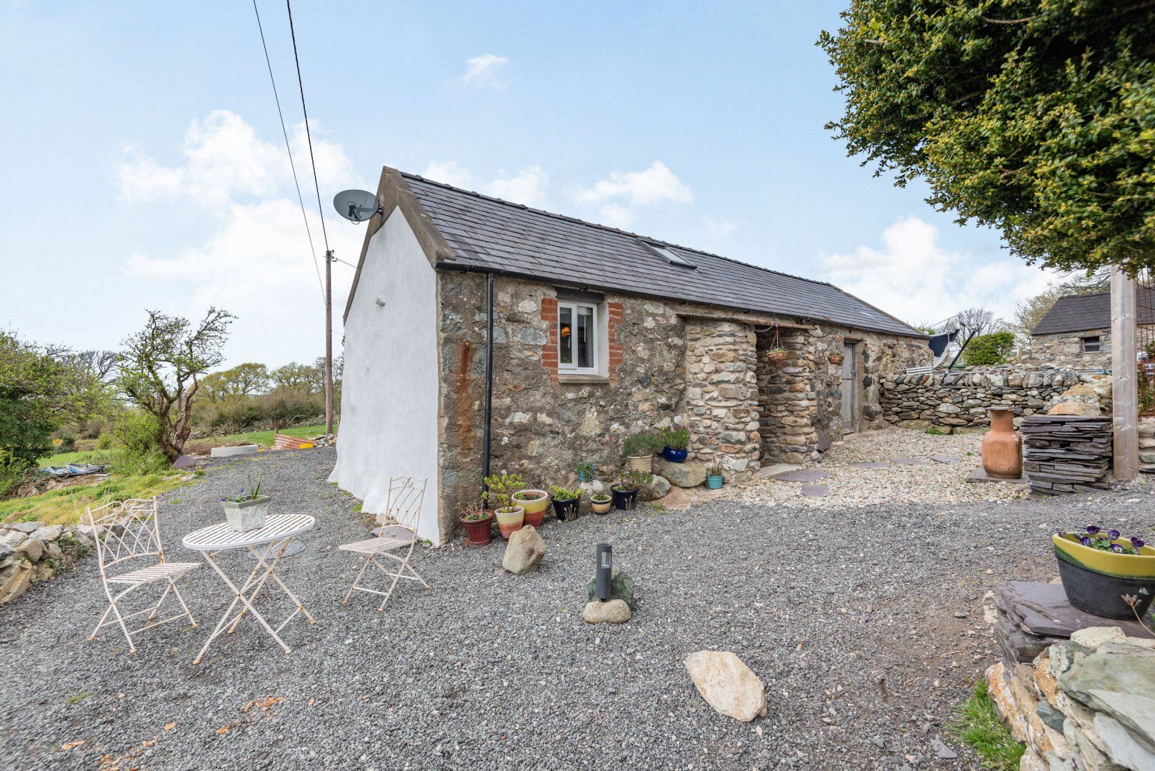 Woodburning stove. Electric oven and hob, microwave, fridge/freezer, TV with Freeview, DVD, CD/radio, WiFi, selection of books, games and DVDs. Fuel, power and fuel for stove inc. in rent. Bed linen and towels inc. in rent. Ample off road parking. Bike storage. Courtyard with furniture. Sorry, no smoking. Shop and pub 1 mile. Note: Crog loft is accessed by steep stairs and is open at the top with sloping ceilings, very low head height and the bed is a low level double, care to be taken. Check in time is 4pm