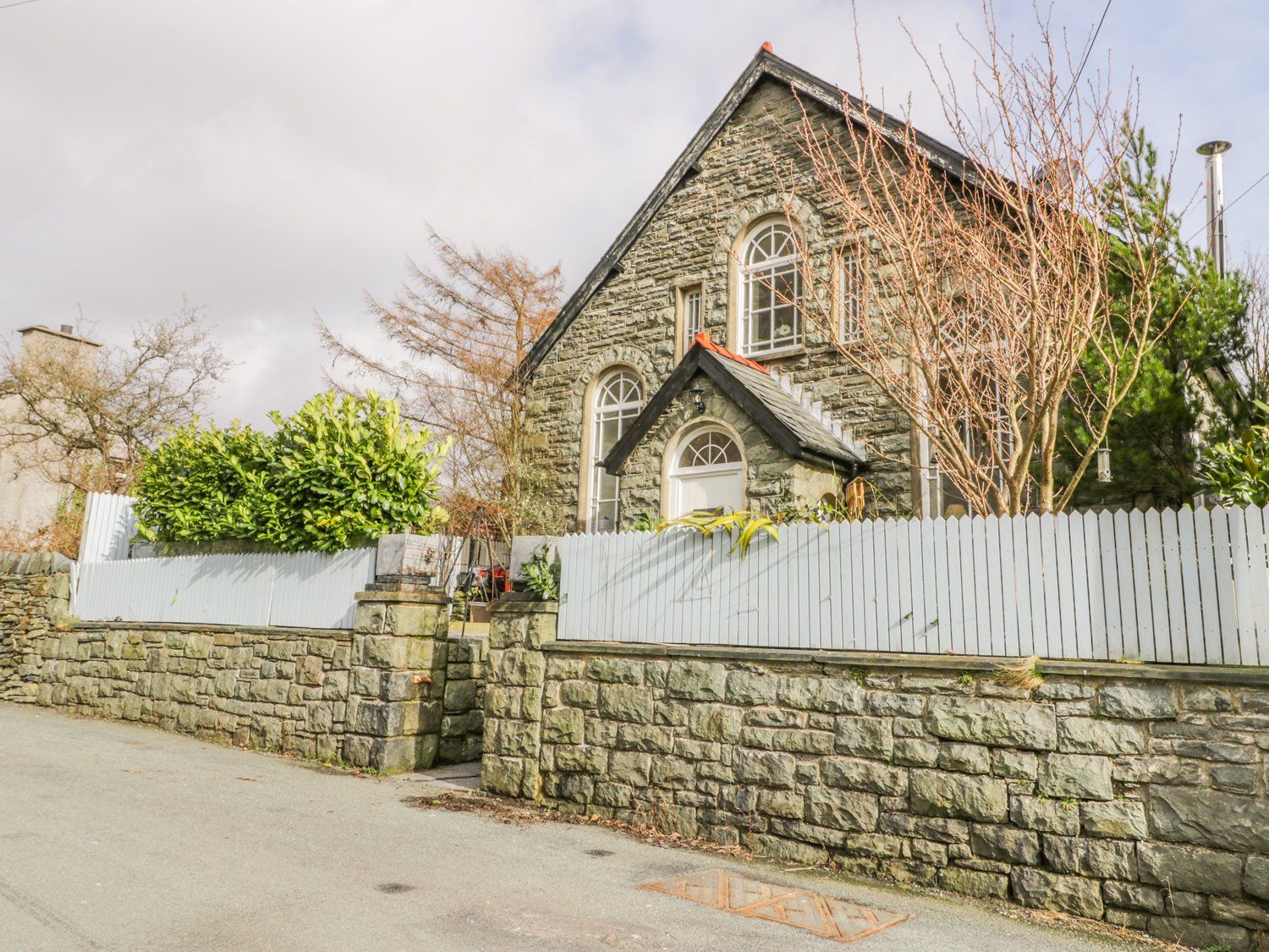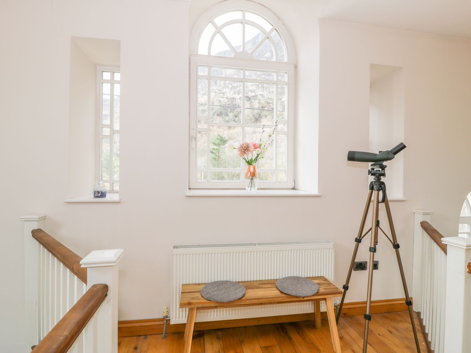 Holiday home Horeb Chapel House is a detached former chapel property resting within the village of Tanygrisiau. It houses four ground-floor double bedrooms, comprising of two super-king-size bedrooms and two king-size bedrooms. Also on the ground-floor is a bathroom with a shower over bath, basin and WC and a shower room with a walk-in shower, basin and WC. Additional rooms on the ground-floor are a snug room with the sofa bed and a woodburning fire. Please note the woodburning stove can only accept logs and will not be in operation until after 24/11/23. Cooker, microwave, fridge/freezer, dishwasher, washing machine, tumble dryer. Smart TV, 2 x TVs with NOW TV, Alexa and WiFi. Pokemon Go Spot. Bed linen and towels inc. in rent. Fuel and power inc. in rent. Please note that the woodburner will ot be in use until after 24/11/24 and a woodburner starter pack can no longer be provided after 14/1/24, although logs can be purchased from a local shop, please only use logs in the woodburner. Upstairs, is a mezzanine-style open-plan living room with a sitting area, a dining area and a kitchen area. Note: potential drop hazard on the mezzanine open-plan living room, children should be supervised. Outside, you will find roadside parking and a front garden area. Horeb Chapel House is an outstanding dwelling for a family gathering to North Wales.