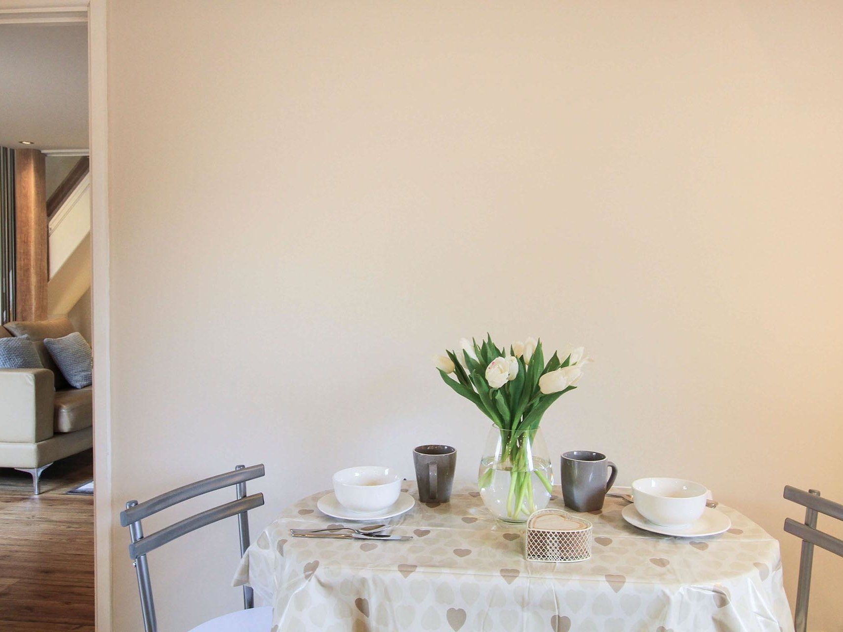 Amenities Electric Central Heating, electric oven, hob, washer dryer, fridge with ice compartment, microwave, toaster, Bed linen and towels provided, Flatscreen TV, DVD player, enclosed courtyard, off road parking. Two well behaved dogs welcome. Within walking distance to amenities. Note: The stairs are quite narrow and a little steep. Note: The front courtyard can be used for access by neighbours on occasion. Please note that dogs are charged at £20 per dog.