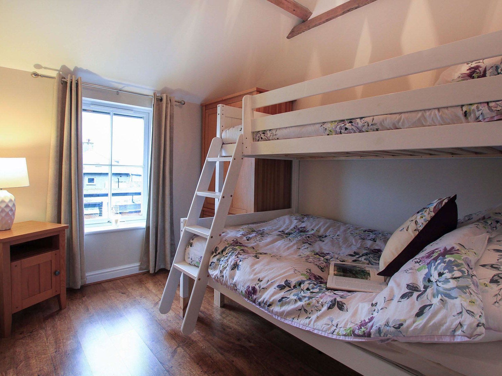 There are stairs from the sitting room which lead up to the two bedrooms. One has a double bed and the other is a double (4ft) with single bunk over the top.
