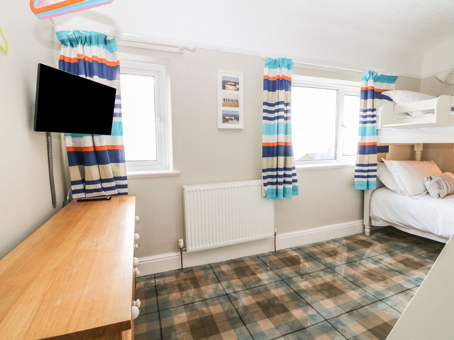 Holiday home The Beach House is a semi-detached cottage located in the North Wales town of Criccieth. It has four bedrooms, consisting of a family room with 'quad pod' bunk beds, a super king-size with an en-suite, and two double rooms, as well as a family shower room, the property can sleep eight people. Also inside there is a kitchen, a living/dining room with a woodburning stove, a conservatory and a cloakroom. The Beach House is an excellently furnished house in an idyllic coast location.