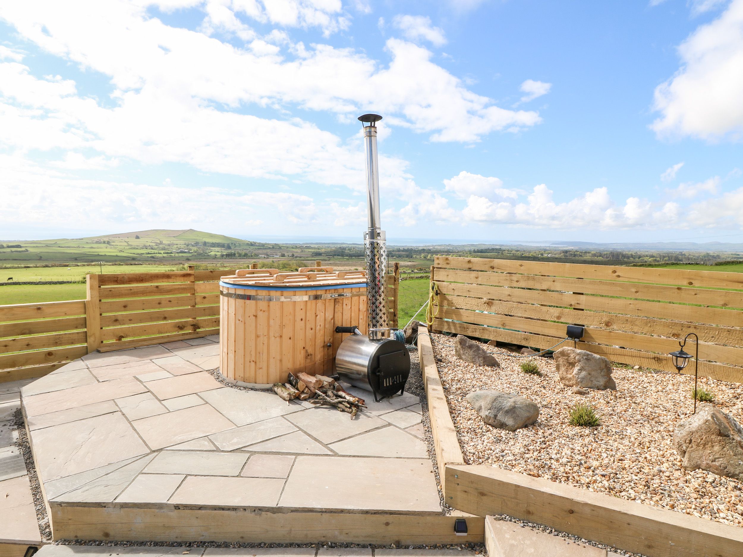 Amenities Gas central heating with underfloor heating. Electric oven and hob, microwave, fridge, washer/dryer, dishwasher, Iron & Ironing board. dressing gown, hair dryer and complimentary slippers. TV, Superfast WiFi. Fuel and power inc. in rent. Bed linen and towels inc. in rent. Ample off-road parking. Patio with wood-fired hot tub, outdoor seating area, gas BBQ. One well behaved pet welcome. Sorry, no smoking. Shop 2.9 miles, pub 3.1 miles. Note: Property is accessed by a three-quarter mile rough farm track, so may not be suitable for low cars. Note: The log burner is not for use
