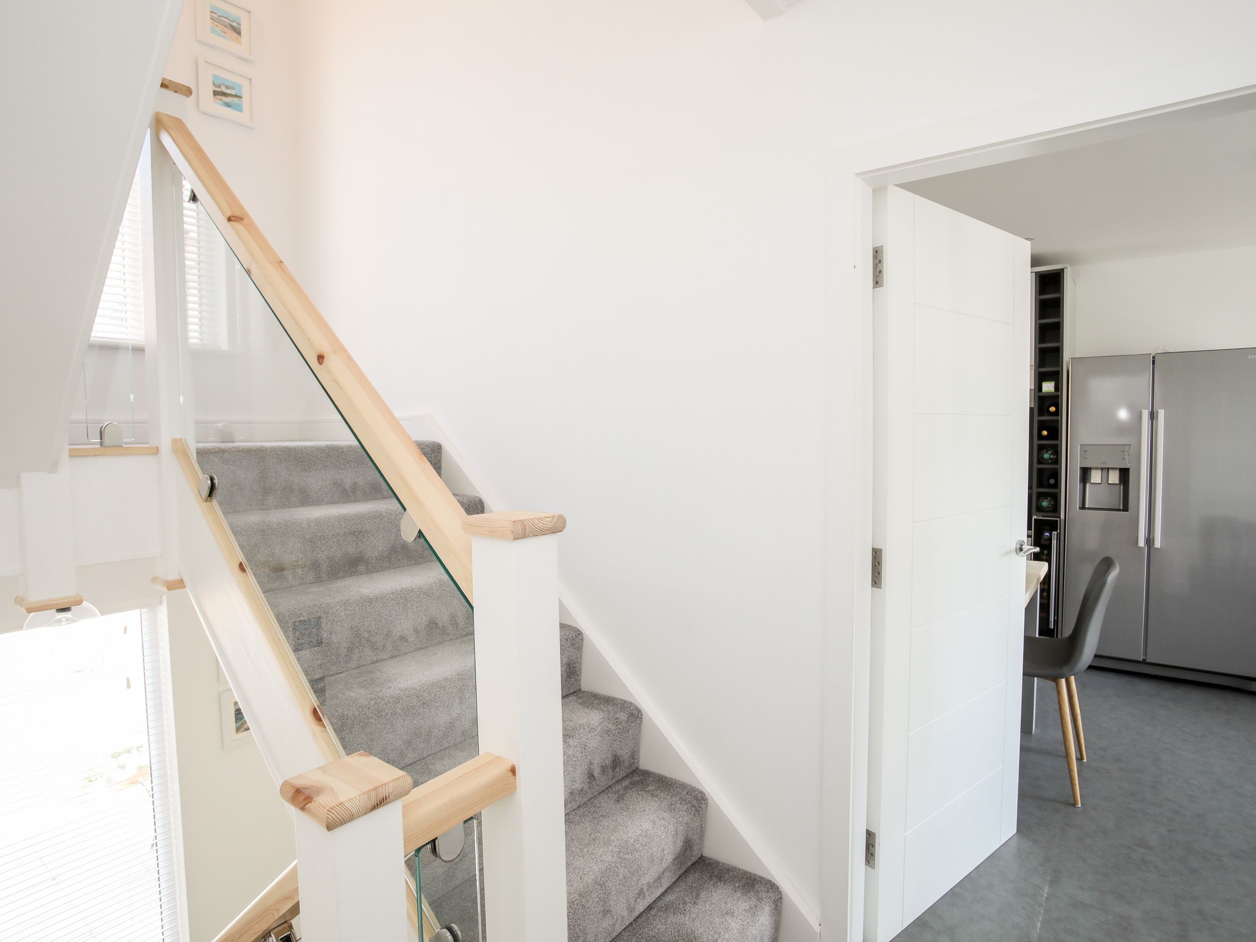 Accomodation Details Please note: 7 night minimum bookings and Saturday Changeovers only from 24th of May until the 14th of October and school holidays. Over four floors. Three bedrooms: 1 x third-floor Super king-size with en-suite shower room with walk-in shower, basin, heated towel rail and WC, 2 x second-floor king-size (zip/link, can be twin on request). Bathroom with bath, shower over, basin, WC. Ground-floor shower room with walk-in shower, basin and WC. First-floor open-plan living space with kitchen, dining area and sitting area with balcony. Utility room
