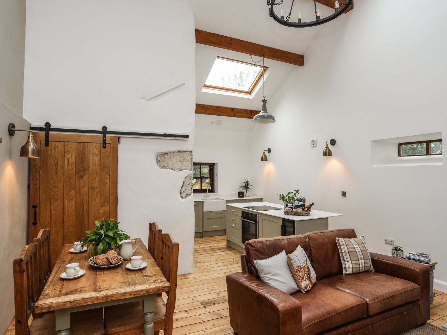 Yr Hen Oriel is a barn conversion nestled in Ceunant near Llanrug, Wales. Hosting two bedrooms, including a king-size with en-suite bath and a twin with en-suite shower, this property can sleep four people. There is also an open-plan living space with kitchen, dining and sitting area with woodburning stove. To the outside is an enclosed garden patio with furniture and ample off-road parking. Yr Hen Oriel is a fabulous retreat in Wales, whatever time of year.