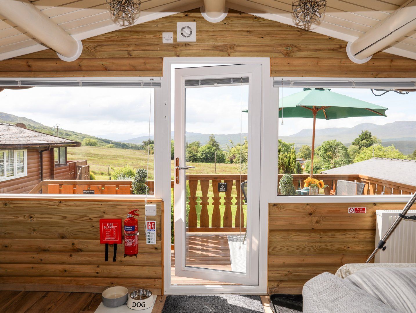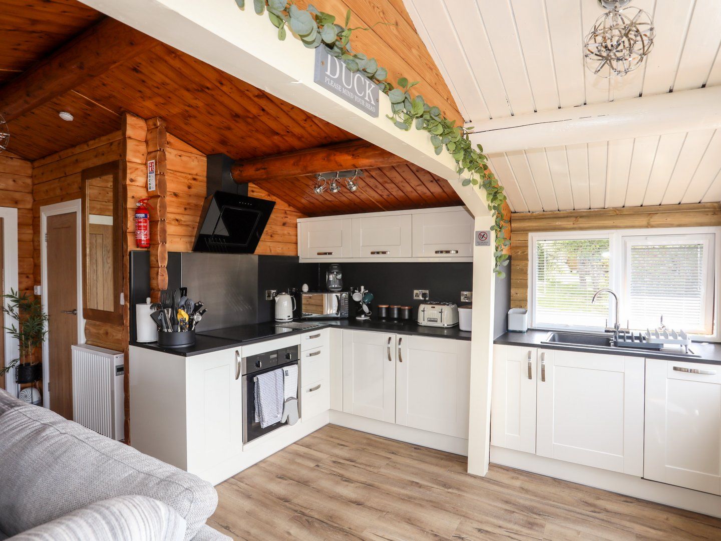 Amenities Electric central heating with electric woodburner. Electric oven and induction hob, microwave, fridge with ice-box and dishwasher. Tassimo coffee machine (please bring own pods). 3 x Smart TVs, WiFi and telescope. USB charging point. Fuel and power inc. in rent. Bed linen and towels inc in rent. Off-road parking a short walk from lodge. Elevated decking with furniture and lawn with picnic table. Electric BBQ. 2 small or 1 medium well-behaved dogs welcome. Sorry, no smoking. Shop 2.7 miles, pub 2.8 miles