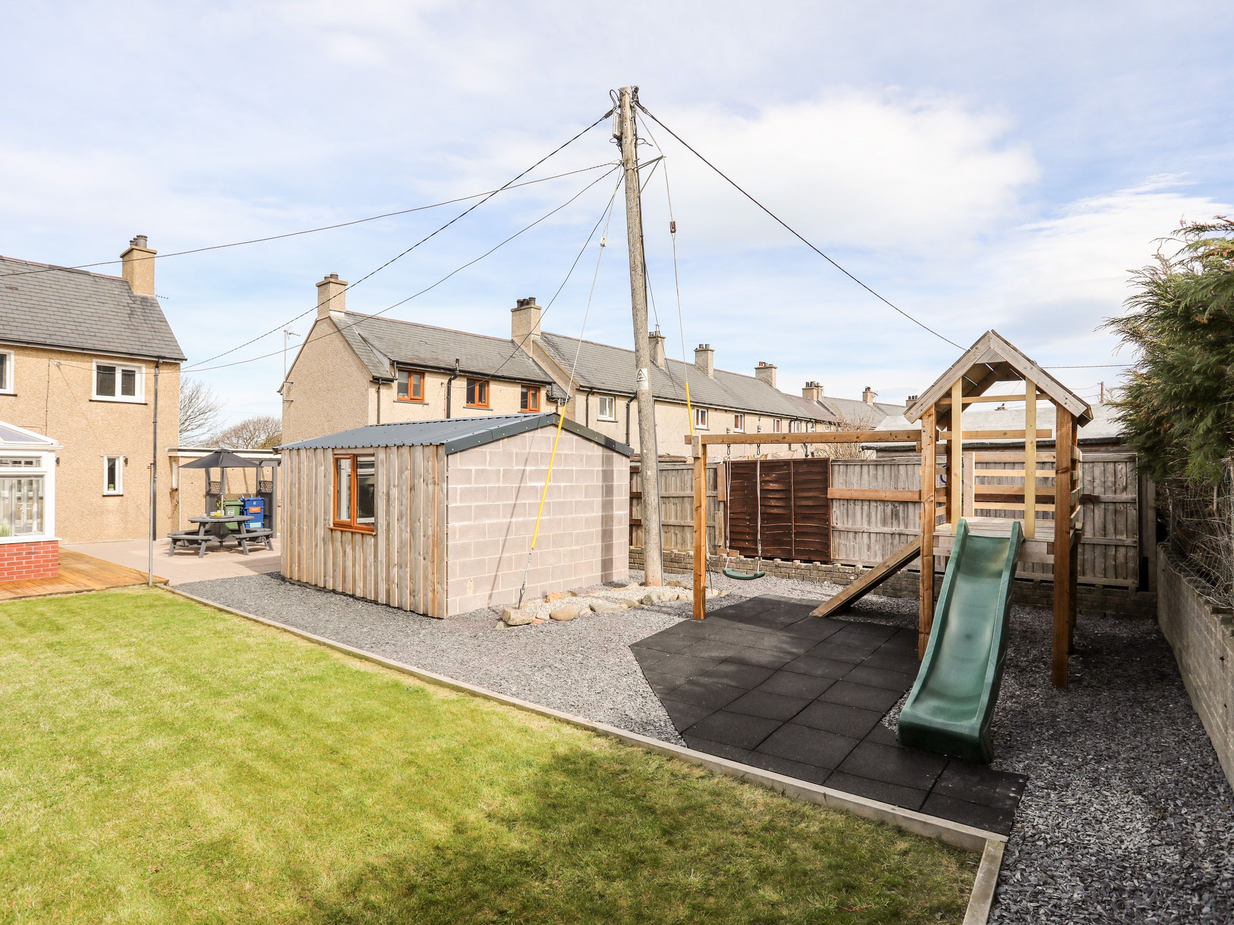 Amenities Electric storage heaters with woodburning stove. Oven, hob, fridge, freezer, microwave, washing machine, tumble dryer, dishwasher. Smart TV via Amazon Fire Stick, TV, WiFi. Fuel, power and starter pack for woodburning stove inc. in rent. Bed linen and towels inc. in rent. Highchair, stairgate and travel cot available. Off-road parking for 2 cars with unrestricted roadside parking available. Pet-friendly garden with lawn, furniture and climbing frame. 1 well behaved dog allowed and a supplement of £20 for every other dog up to a maximum of 3. No smoking. Shop 0.3 miles. Tafarn Y Twr pub 0.4 miles, beach 0.4 miles. Note: There is a step down to the ground-floor shower room and utility. Note: This property has a Good Housekeeping Bond of £300. This property only accepts a minimum of 3 night bookings