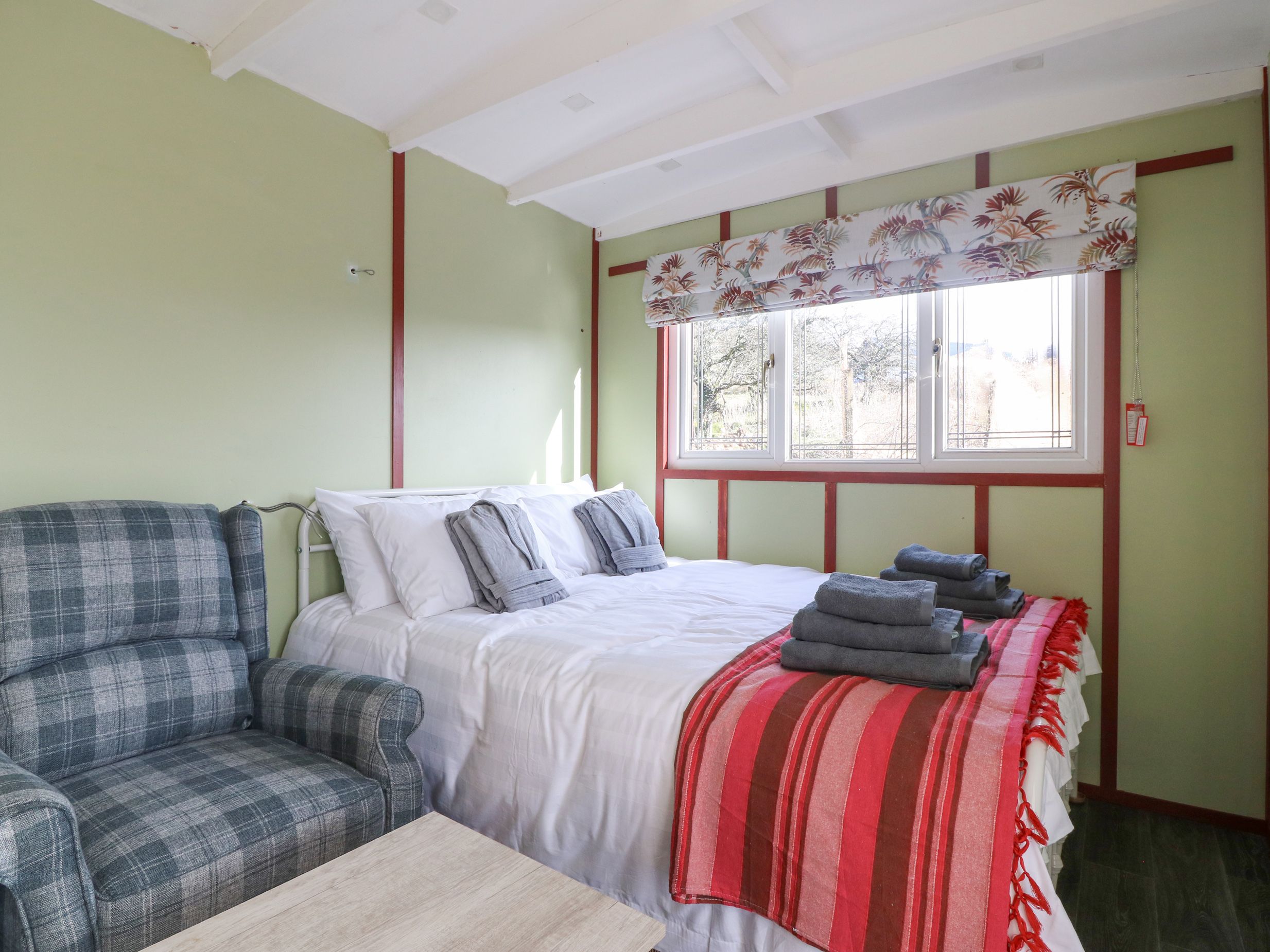 Holiday home Nŷth Y Bioden (Magpie's Nest) consists of a studio-style layout with double bed, kitchen, and sitting area with an electric/induction hob, microwave, fridge with ice box, kettle, and toaster. There is a shower room with walk-in shower, basin and WC. Outside there is off-road parking for one car and an enclosed front garden with decking area, furniture, patio, gravelled area with hot tub, and barbecue. One well-behaved dog welcome, but sorry, no smoking. You'll find a shop in 3.3 miles, a pub in 3.1 miles and a beach in 8.2 miles. WiFi, fuel, power, bed linen and towels are all included in the price. Nŷth Y Bioden (Magpie's Nest) is a delightful spot for your stay in Wales. Note: Check-in is from 4pm, check-out by 10am. Note: There are steps up to the property, please take care.