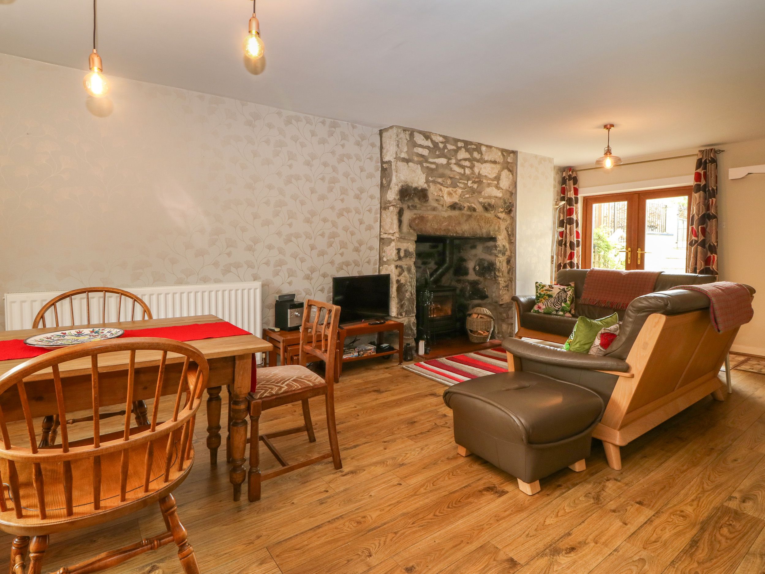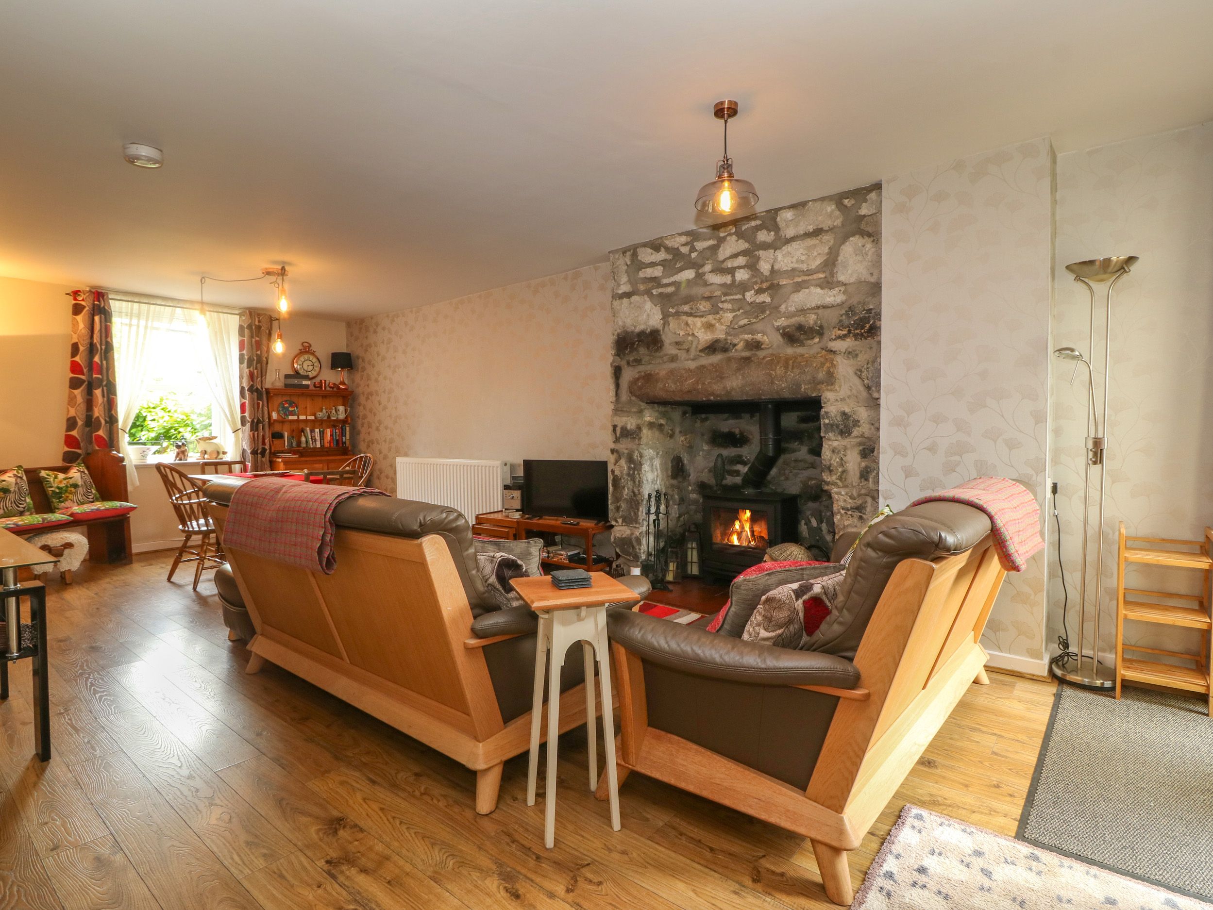 Holiday home Yr Encil consists of a kitchen with microwave, washer/dryer, slimline dishwasher, fridge/freezer, electric oven and hob, kettle, and toaster, and a living/dining room with dining seating, Smart TV, and woodburning stove. The bedrooms consist of a super-king-size (can be a twin on request) and twin (can be king size on request). Outside, there is an enclosed front garden with patio and terrace by the river with furniture and private driveway parking for one car. One well-behaved pet welcome. Sorry, no smoking. You can find a shop in 0.1 mile and a beach in 0.6 miles. WiFi, fuel, starter pack for woodburning stove, power, bed linen and towels are all included in the price. Stay at Yr Encil for your next picture-perfect holiday. Note: Check-in from 4pm, check-out by 10am. Note: This property has a 3 night minimum stay in place