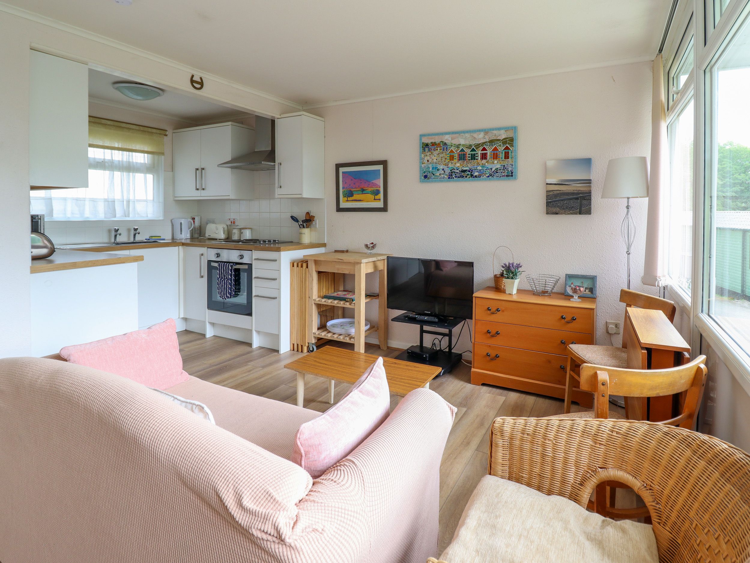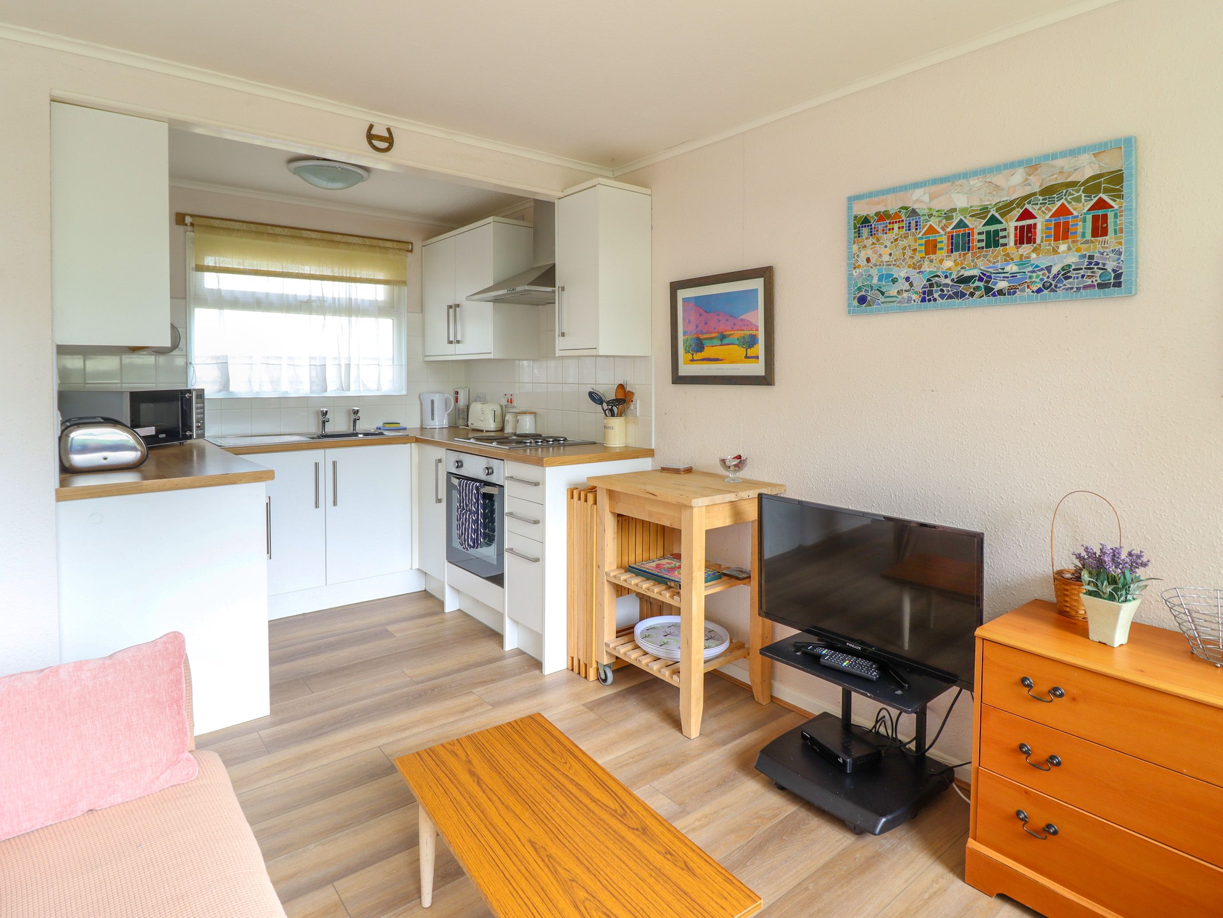 Holiday home Seahorse, a single-storey holiday cabin, consists of a kitchen with microwave, kettle, toaster, electric oven and hob, and fridge with icebox, a dining room with dining seating, and a sitting room with TV. The bedrooms consist of a double and twin, along with a bathroom. Outside, there is a non-enclosed front patio with lawned area and picnic bench and off-road parking for one car. One well-behaved pet welcome. Sorry, no smoking. You can find a shop in 3.1 miles and a pub in 0.1 mile. Fuel, power, bed linen and towels are all included in the price. WiFi usage is payable on site. Please note: WiFi can be intermittent on the park at times. Please note: This property has a 3 night minimum stay in place