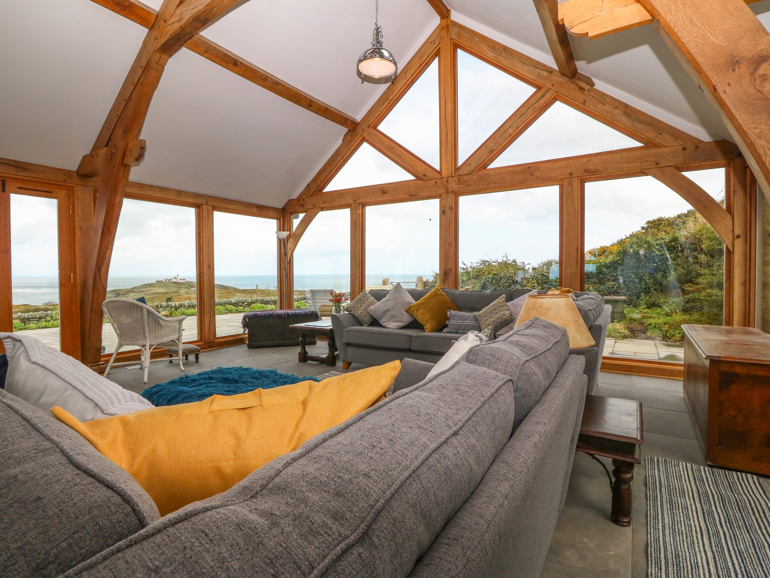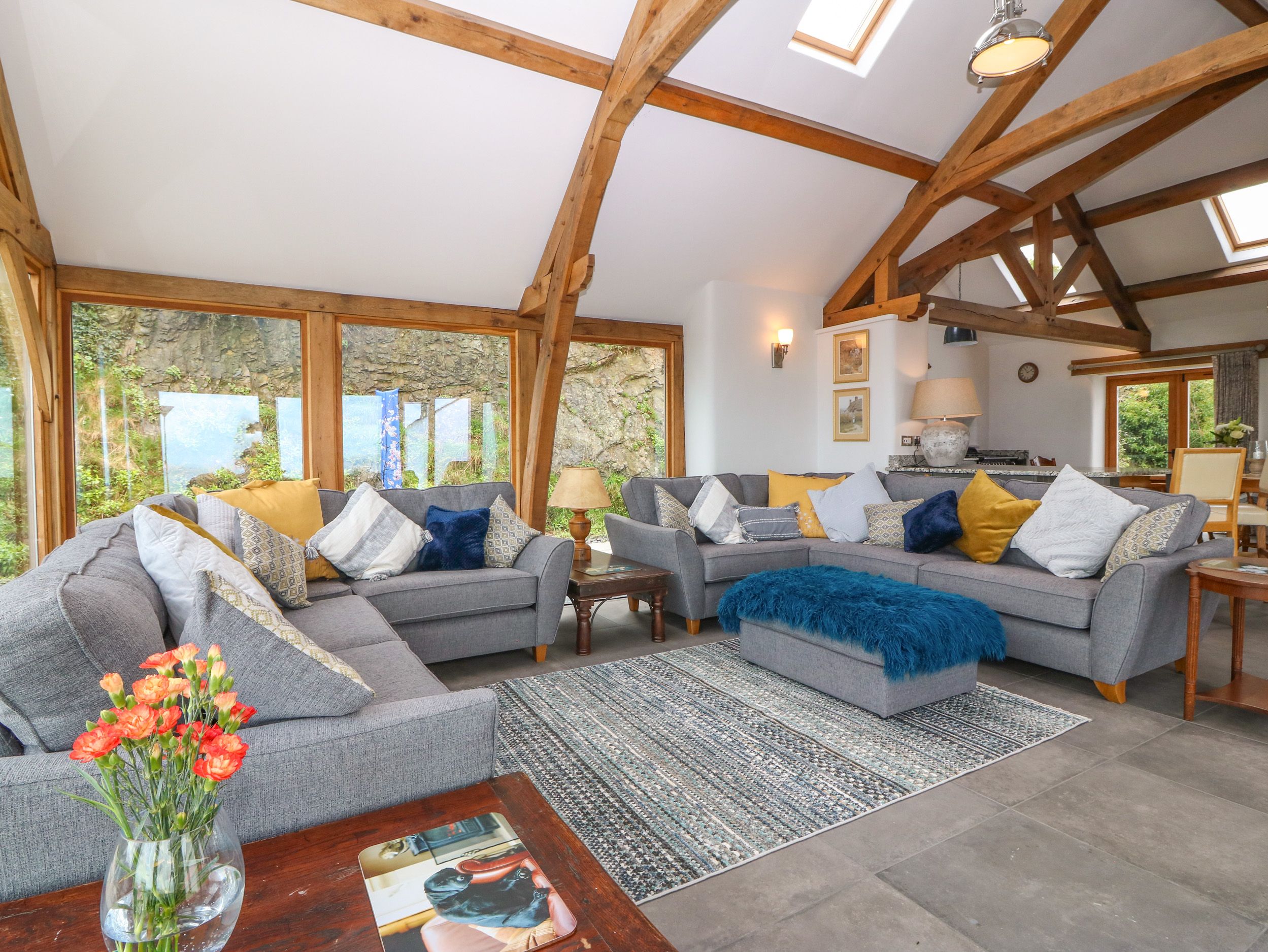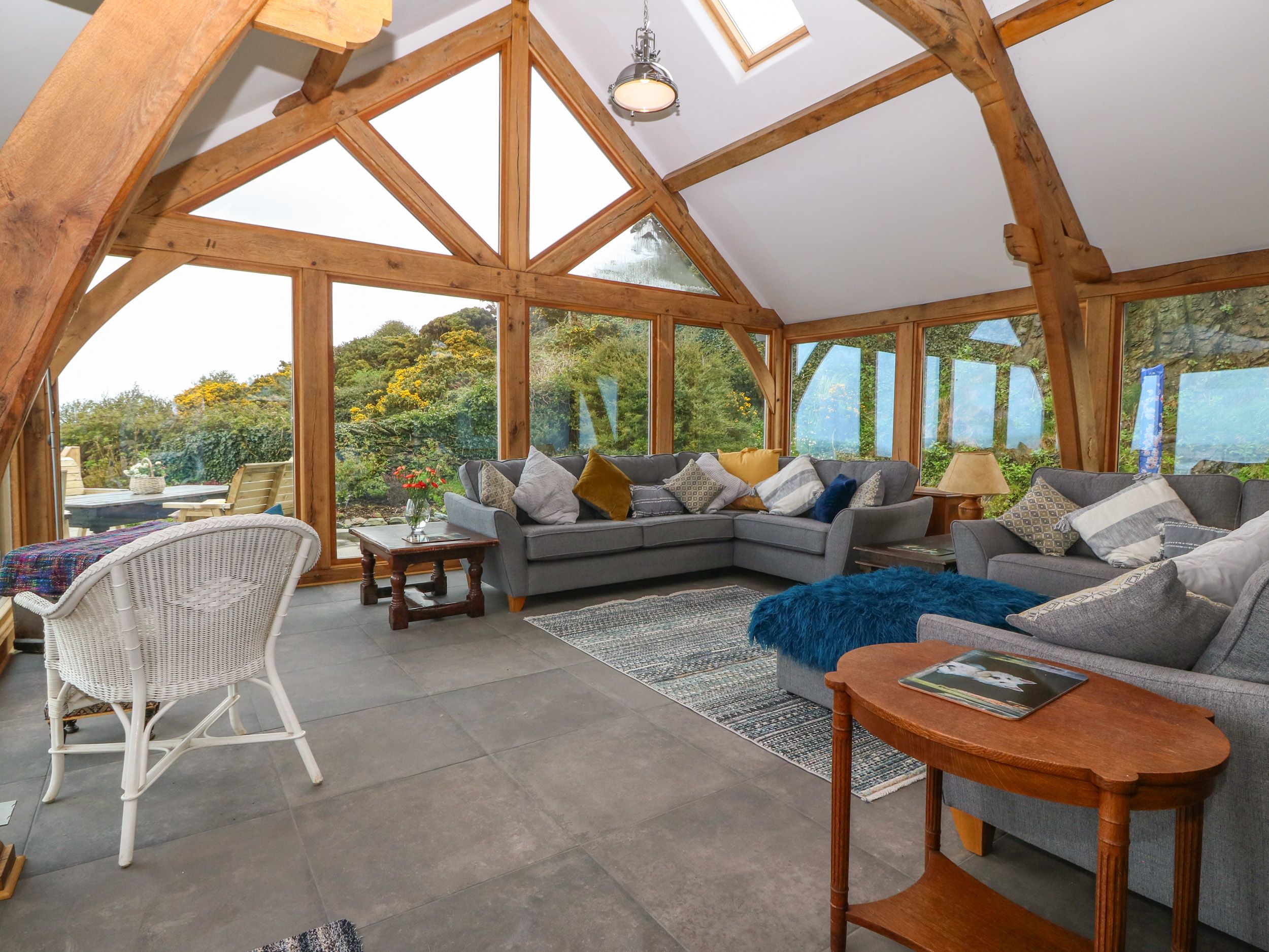 Accomodation Details Sykes Gem Awards 2025 Bronze winner for Best in North Wales. Three bedrooms: 1 x super-king-size (zip/link, can be twin on request) with access to Jack-and-Jill bathroom, 1 x king-size with access to Jack-and-Jill bathroom, 1 x ground-floor king-size bed with en-suite rolltop bath, handheld shower, basin, heated towel rail, and WC. Jack-and-Jill bathroom with rolltop bath, handheld shower, basin, heated towel rail, and WC. Ground-floor shower room with walk-in shower, basin, heated towel rail, and WC. Open-plan living space with kitchen, dining area, and sitting area/conservatory. Sitting room with woodburning stove. Snug with woodburning stove. Parlour. Note: Minimum 4 nights stay