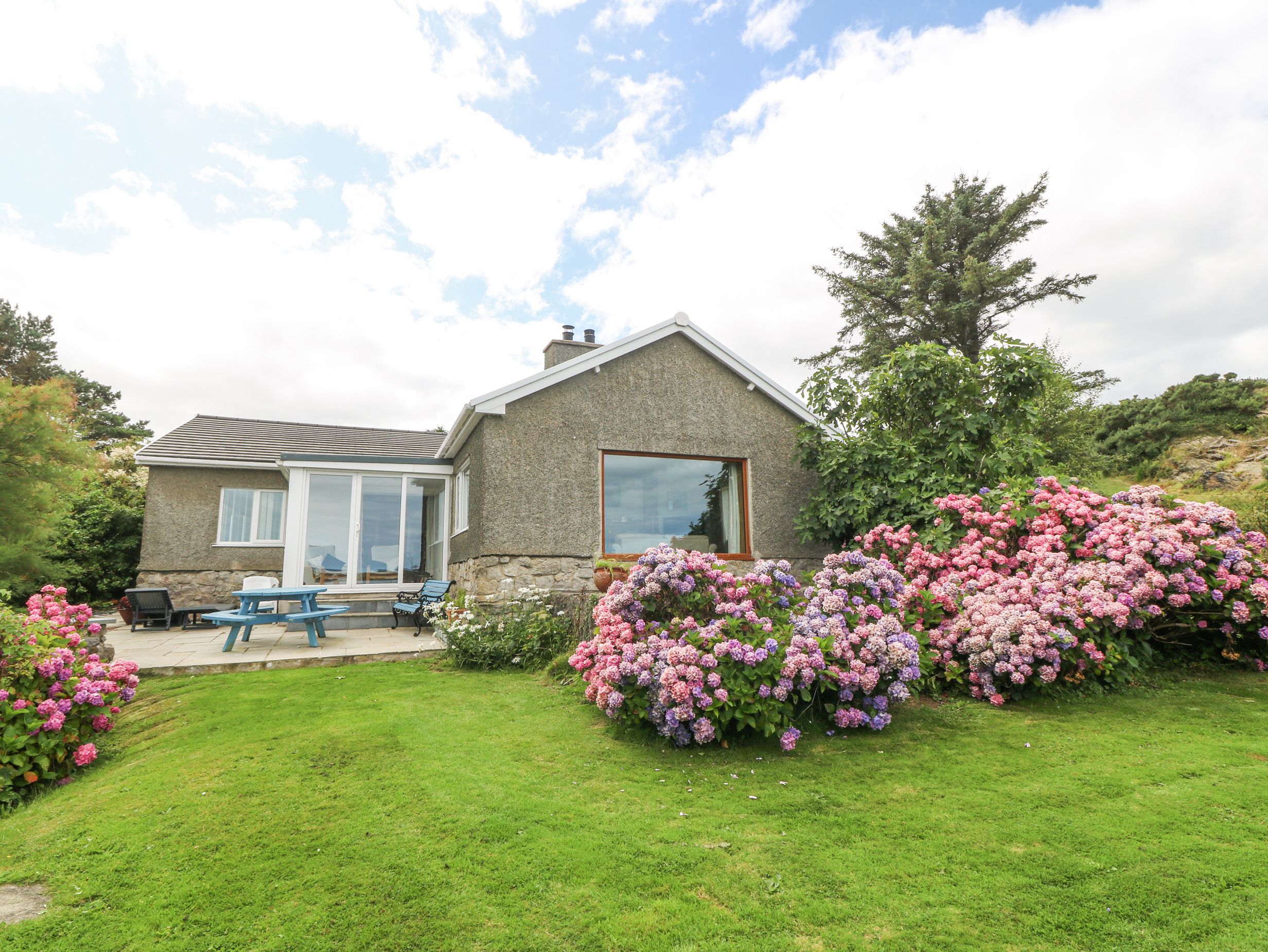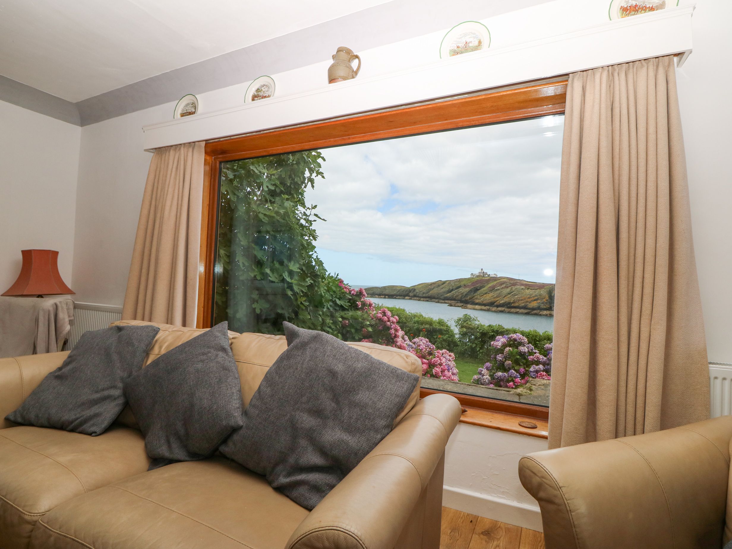 Holiday home The living areas in the detached bungalow consist of a kitchen/diner with an electric oven and hob, microwave, fridge, washing machine, dishwasher, dining seating for six people, a dining room with seating for four people, and a sitting room with a TV and woodburning stove. The bedrooms consist of a king-size with an en-suite shower room, another king-size and a twin with a pull-out bed, along with a shower room and a cloakroom. Outside, there is a front patio with furniture and five-acre, lawned grounds leading to tiered gardens and access to the beach, as well as off-road parking for four cars. Within 2.4 miles, you'll find a shop, within 2, a pub, and within 0.1 the beach. Please note that two dogs are welcome, but smoking is not. Fuel, power, a starter pack for the stove, bed linen and towels are included in the cost. A highchair and travel cot are also provided. Enjoy a blissful stay by the coast at The Headland.