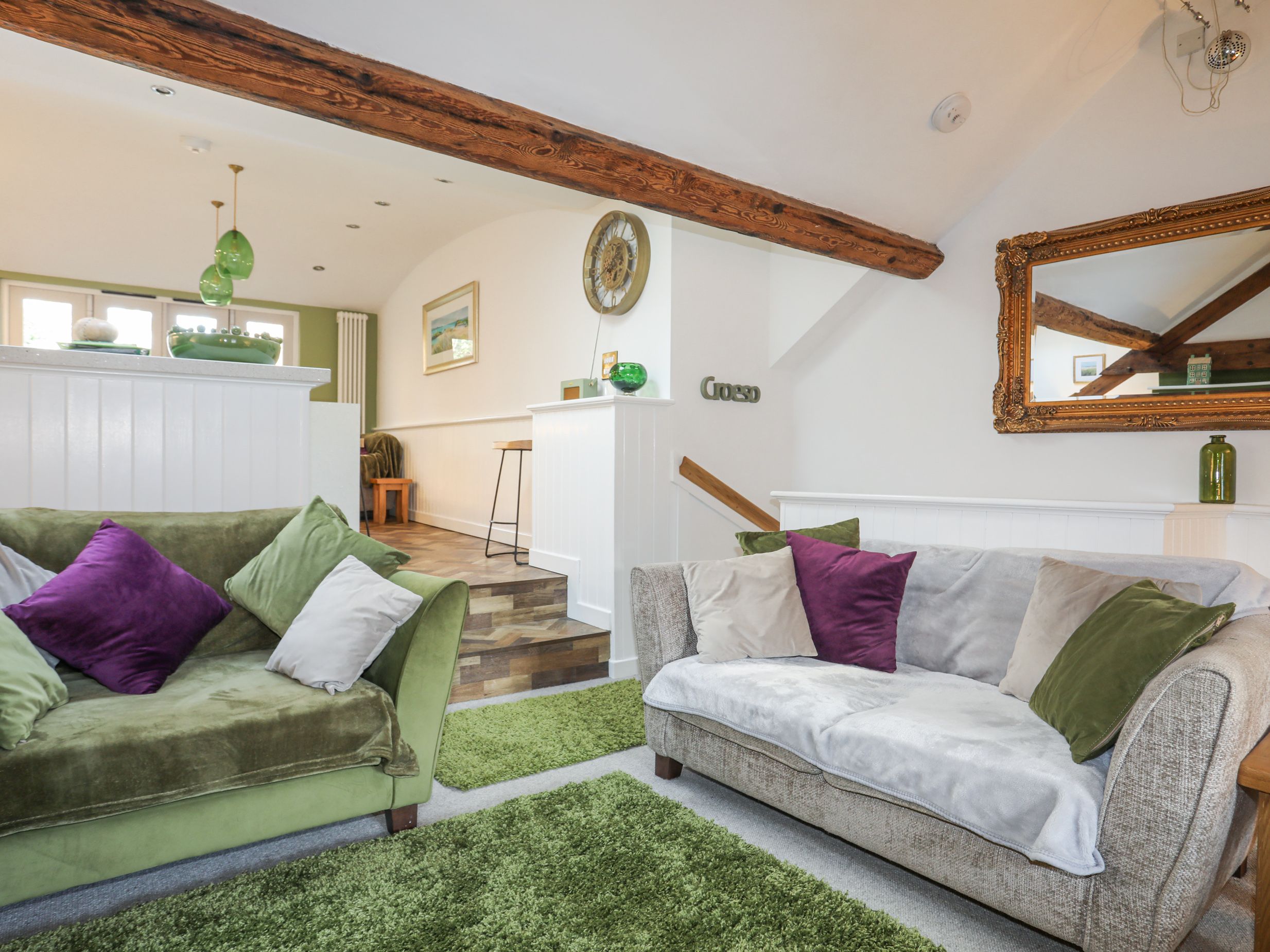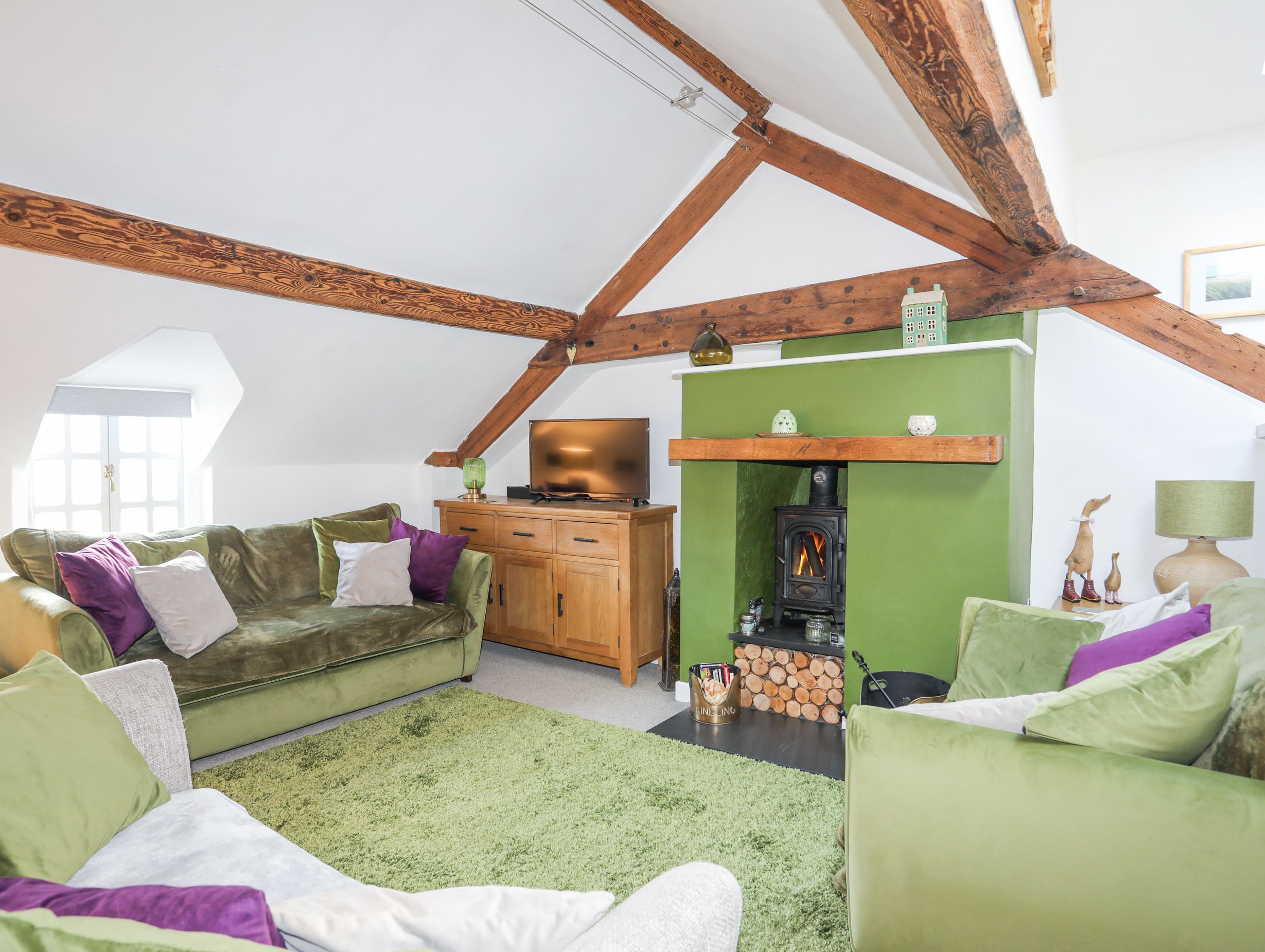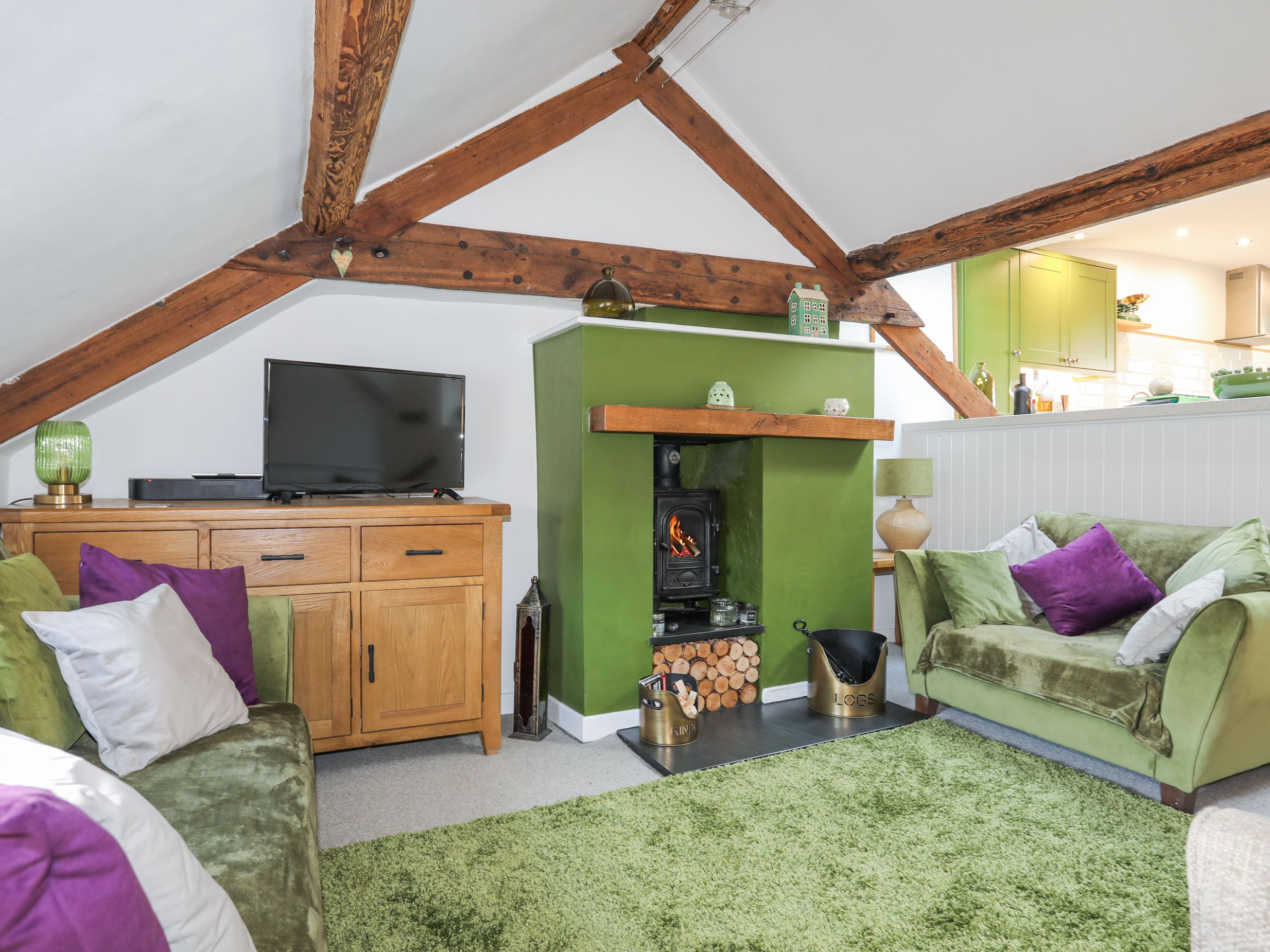 Accomodation Details Two bedrooms: 1 x ground-floor double, 1 x ground-floor twin. Ground-floor bathroom with bath, shower over, basin and WC. Open-plan living space with kitchen, dining area and sitting area with woodburning stove