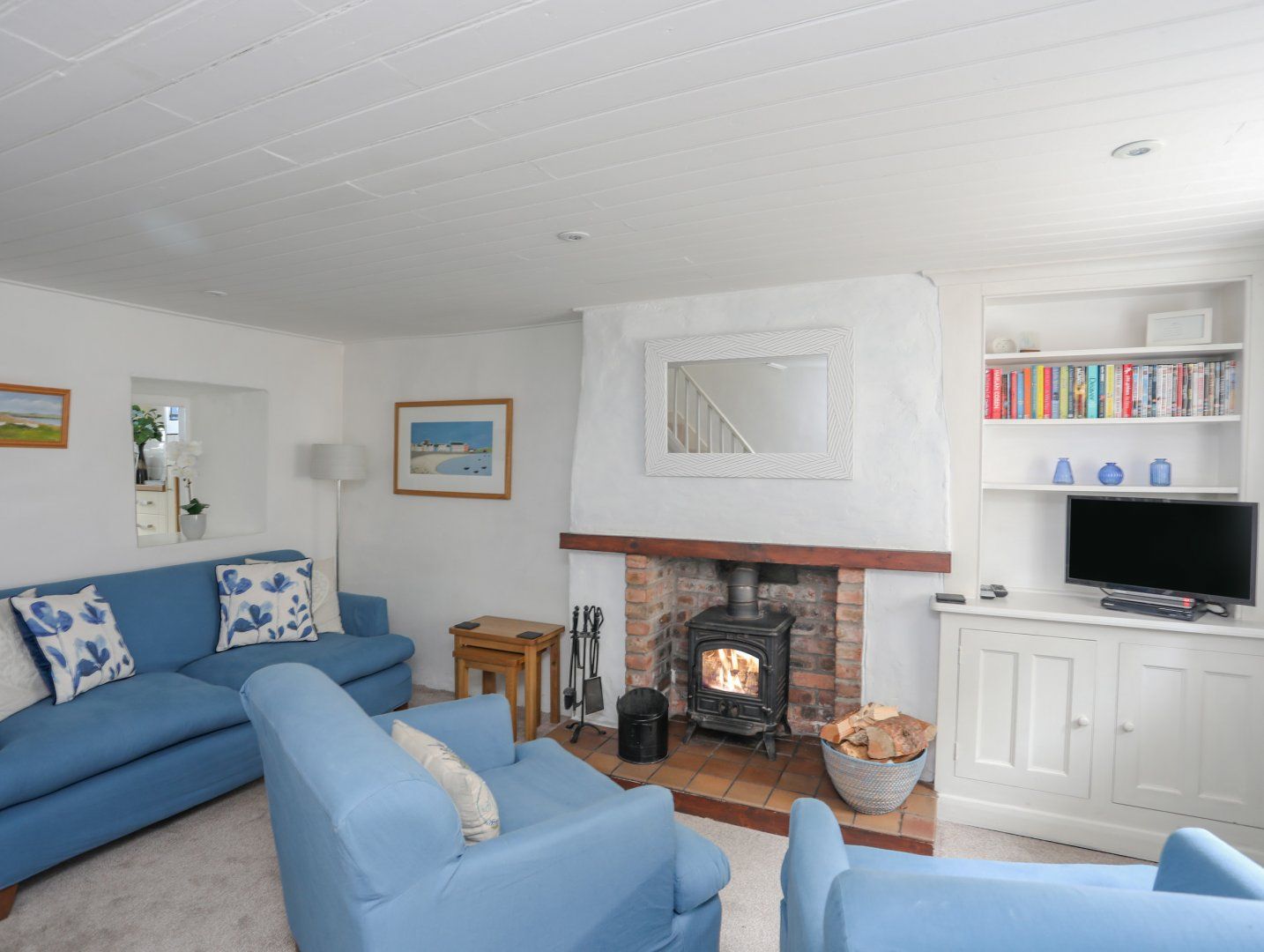 This delightful bijou holiday cottage is nestled on a quiet street, within a historic conservation area just a few minutes' stroll from the centre of Beaumaris. Blue Cottage is the perfect place to recharge your batteries; relax and unwind next to the woodburner in the evenings and sun yourself in the garden during the day. Cosy is the best way to describe this sweet - and dare we say, romantic - holiday cottage! A home from home with so much to see and do nearby. Beaumaris has everything you need, so you could park your car and forget about driving for a week! There's so much to explore in this pretty town: a moated castle, the Gaol, the Janet Bell Gallery, wonderful individual shops and fabulous restaurants. You'll love the breathtaking scenery of the Menai Strait, with the backdrop of the glorious mountains of Snowdonia. If you can't wait to visit local attractions however, close by is the beautiful 200 acre Plas Cadnant Estate where you will find spectacular historic gardens, or the lighthouse and Priory at Penmon point.