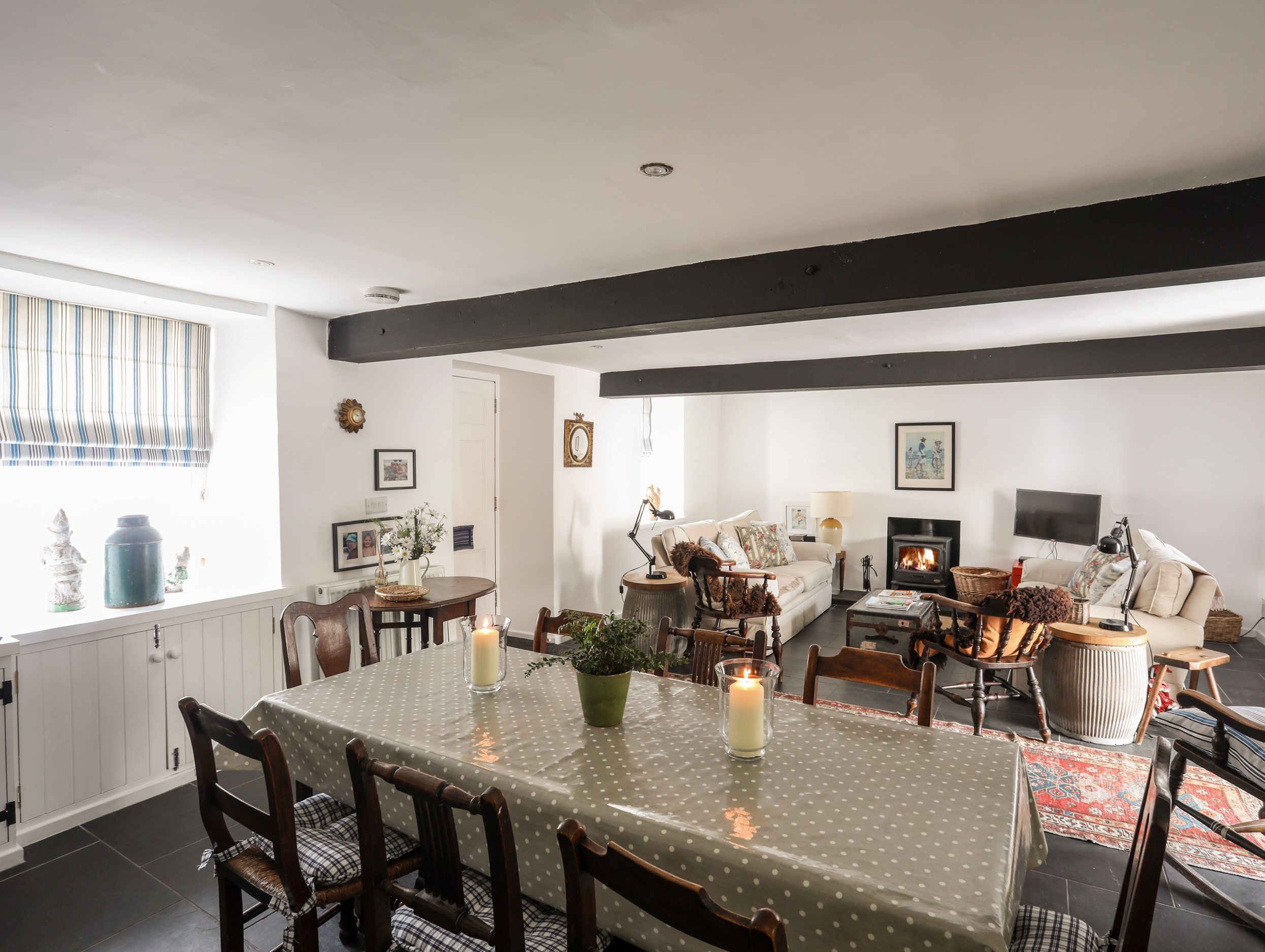 Amenities NEFF oven, grill, gas hob, fridge, dishwasher, toaster. Washing machine, fridge with ice compartment, freezer, microwave. Wood burning stove, TV DVD player. Wifi. Enclosed garden. Central heating. Travel cot, high chair. Amenities, shops and pubs within 2 minute walk. 1 well behaved dog welcome at a £30 charge per holiday. Note: street parking which can be limited during school holidays. Note: the double is 4ft. Note: As with many traditional houses the staircase may not be suitable for those with limited mobility. Minimum of 7 night bookings during school holidays