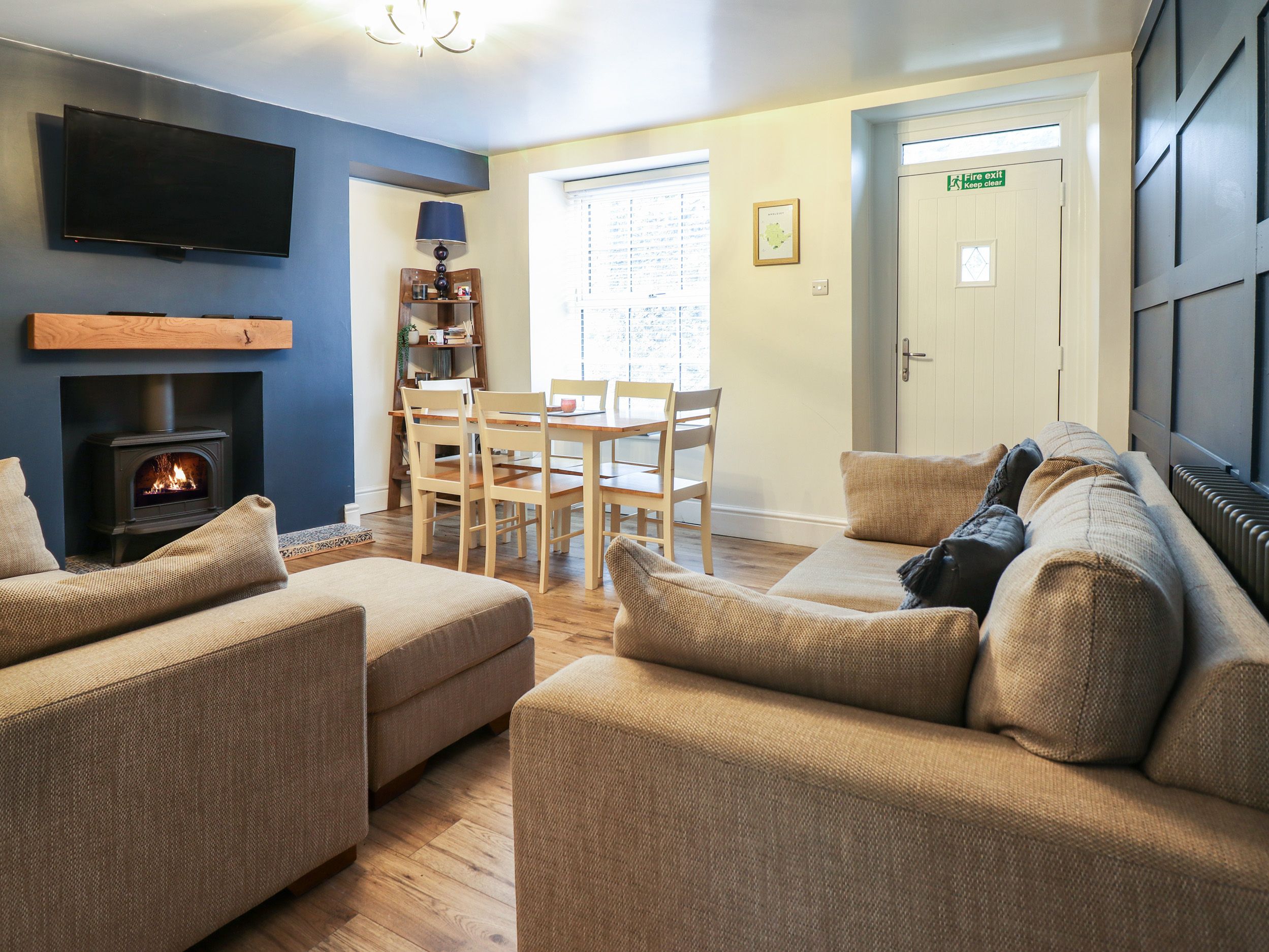 Accomodation Details Over three floors. Three bedrooms, 1 x king-size with Smart TV, 1 x second-floor double, 1 x second-floor adult bunk. Shower room with walk-in shower, basin, heated towel rail and WC. First-floor cloakroom with basin and WC. Kitchen. Living/dining room with gas woodburner effect stove