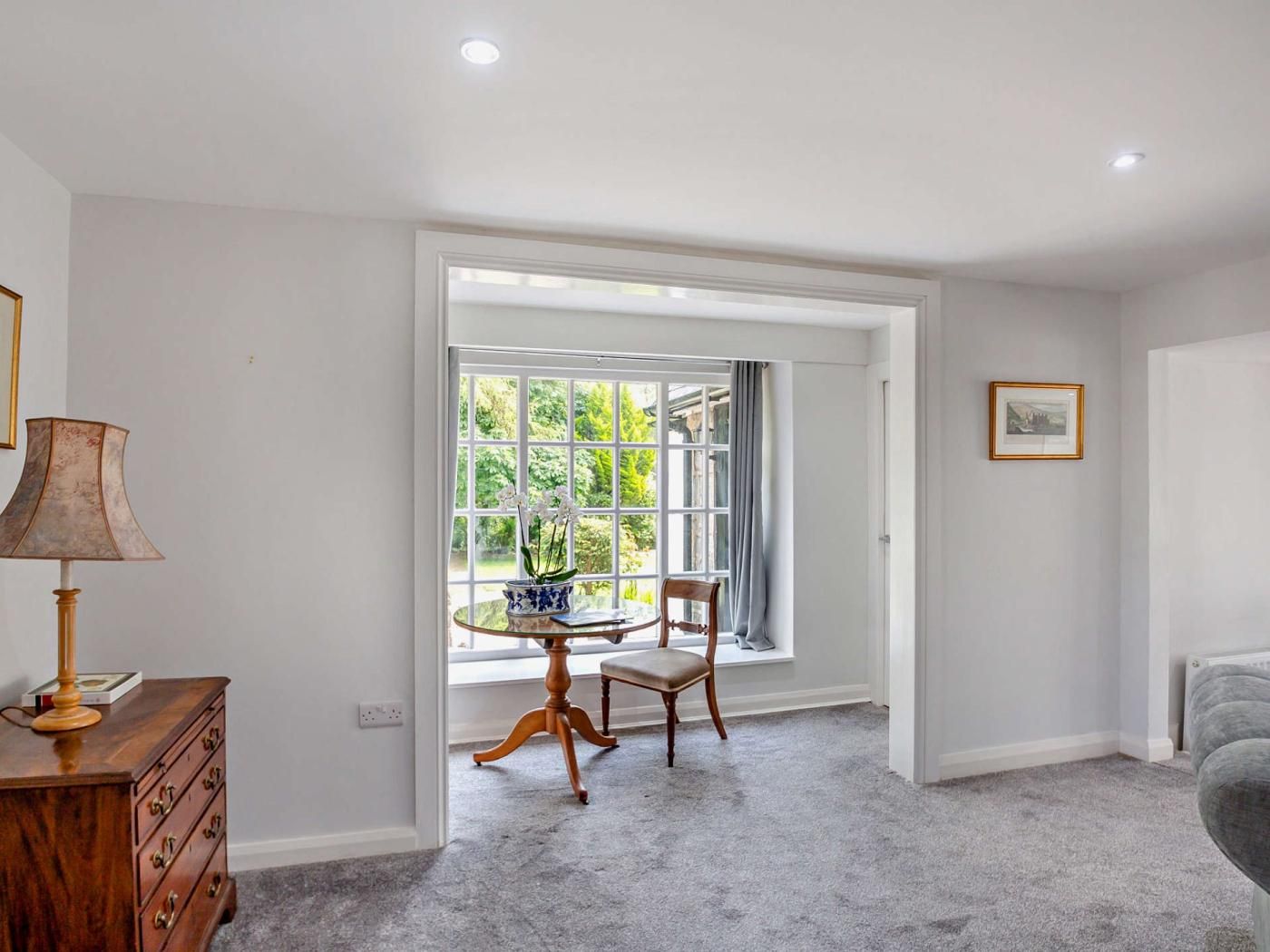 Nestled in a picturesque countryside setting, this charming property provides spacious accommodations amidst lush grounds – a serene environment surrounded by mature trees, shrubs, and vibrant plants that form a stunning garden oasis.
