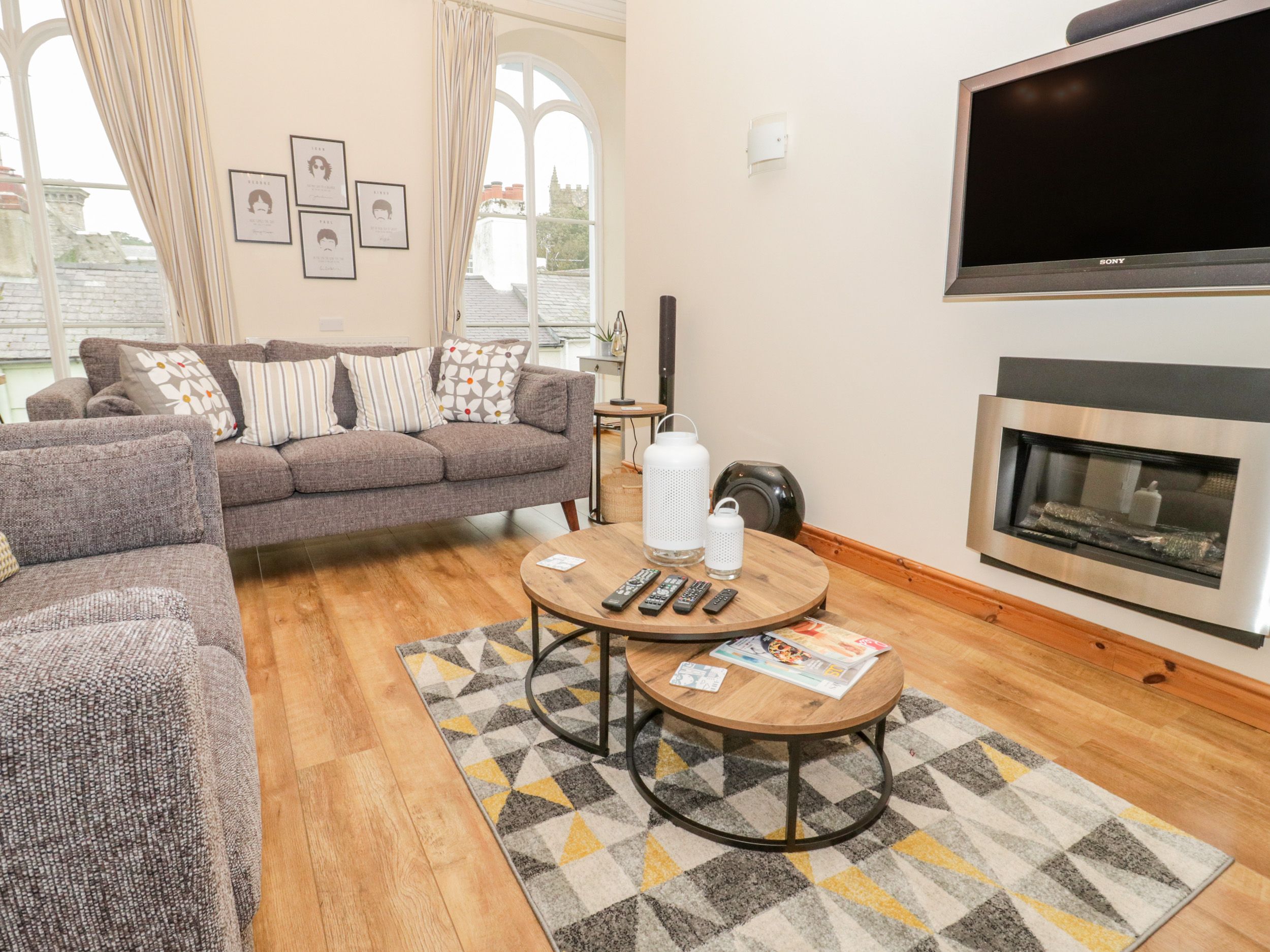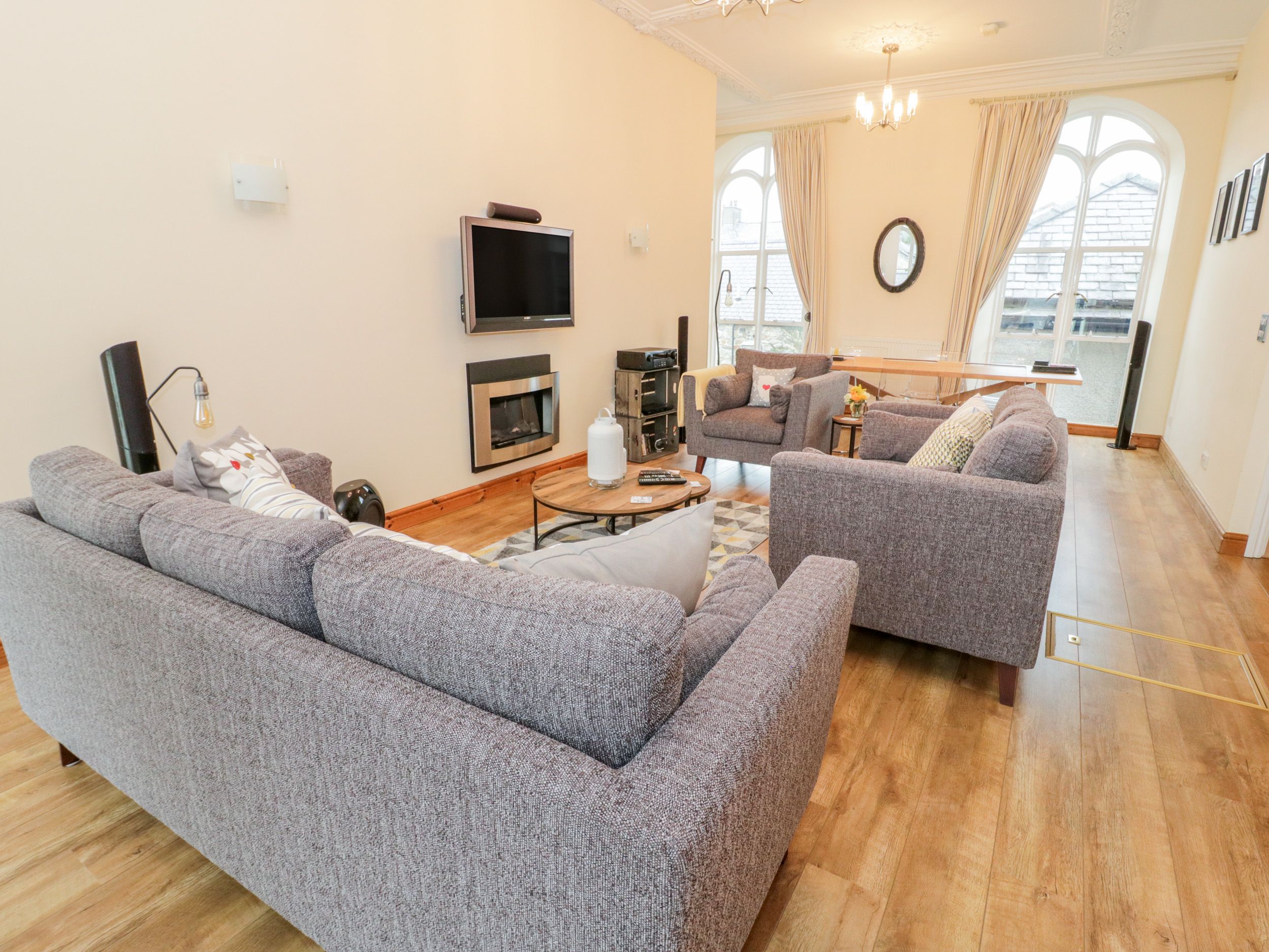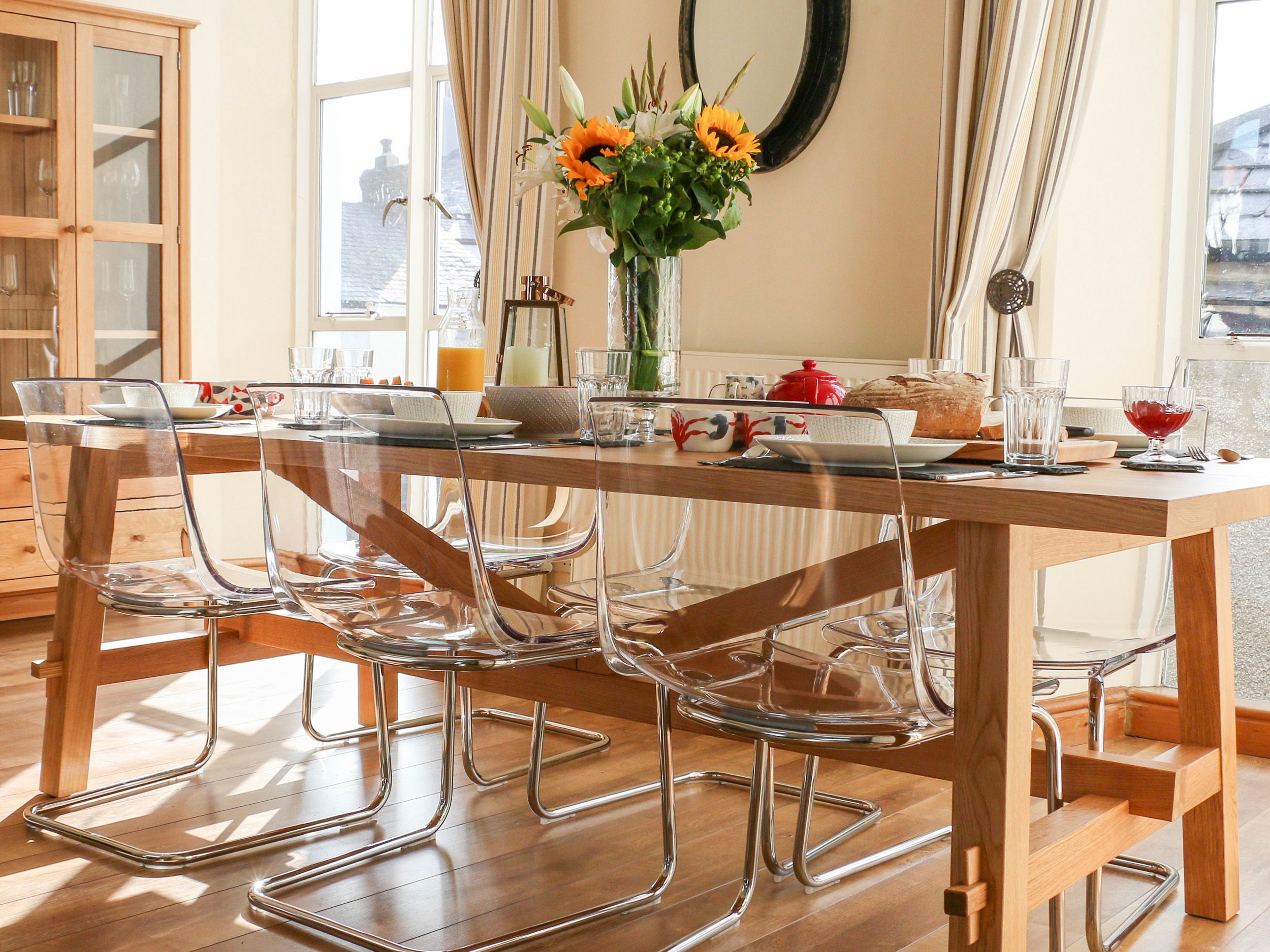 Holiday home Seion Chapel is a lovely, former Methodist chapel is situated in the centre of Beaumaris, on the Isle of Anglesey, Wales. Set over three floors, the property hosts three bedrooms: a ground-floor king-size with en-suite freestanding, Jacuzzi bath, walk-in shower, basin and WC, a ground-floor double with en-suite shower, basin and WC, and a second-floor twin with en-suite shower, basin and WC, able to sleep up to six guests and all serviced by a cloakroom. There is a first-floor open-plan living room with a kitchen featuring electric oven and hob, microwave, fridge, coffee maker, dishwasher, toaster, and kettle, a utility with washer/dryer, and fridge/freezer, a dining area, sitting area with an electric fire and a second-floor games room. Outside has roadside parking available on a first-come, first-serve basis. Seion Chapel is a wonderful choice for a seaside break to the Isle of Anglesey.