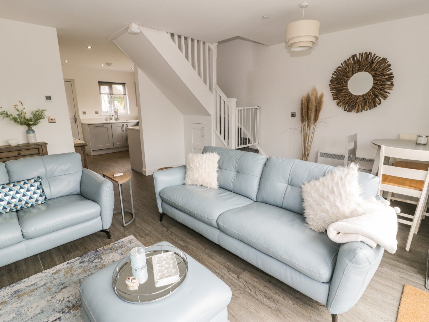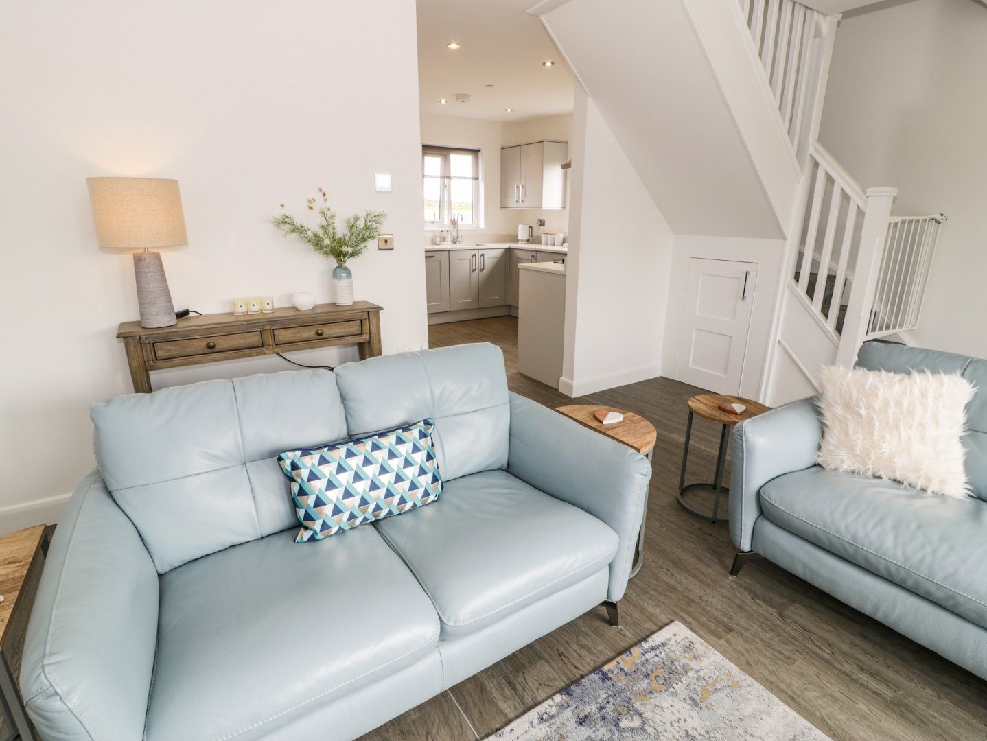 Three bedrooms: 1 x ground-floor king-size with en-suite walk-in shower, basin, heated towel rail and WC, 1 x king-size with Juliet balcony, 1 x king-size. Bathroom with bath, shower over, basin, heated towel rail and WC. Kitchen. Living/dining room