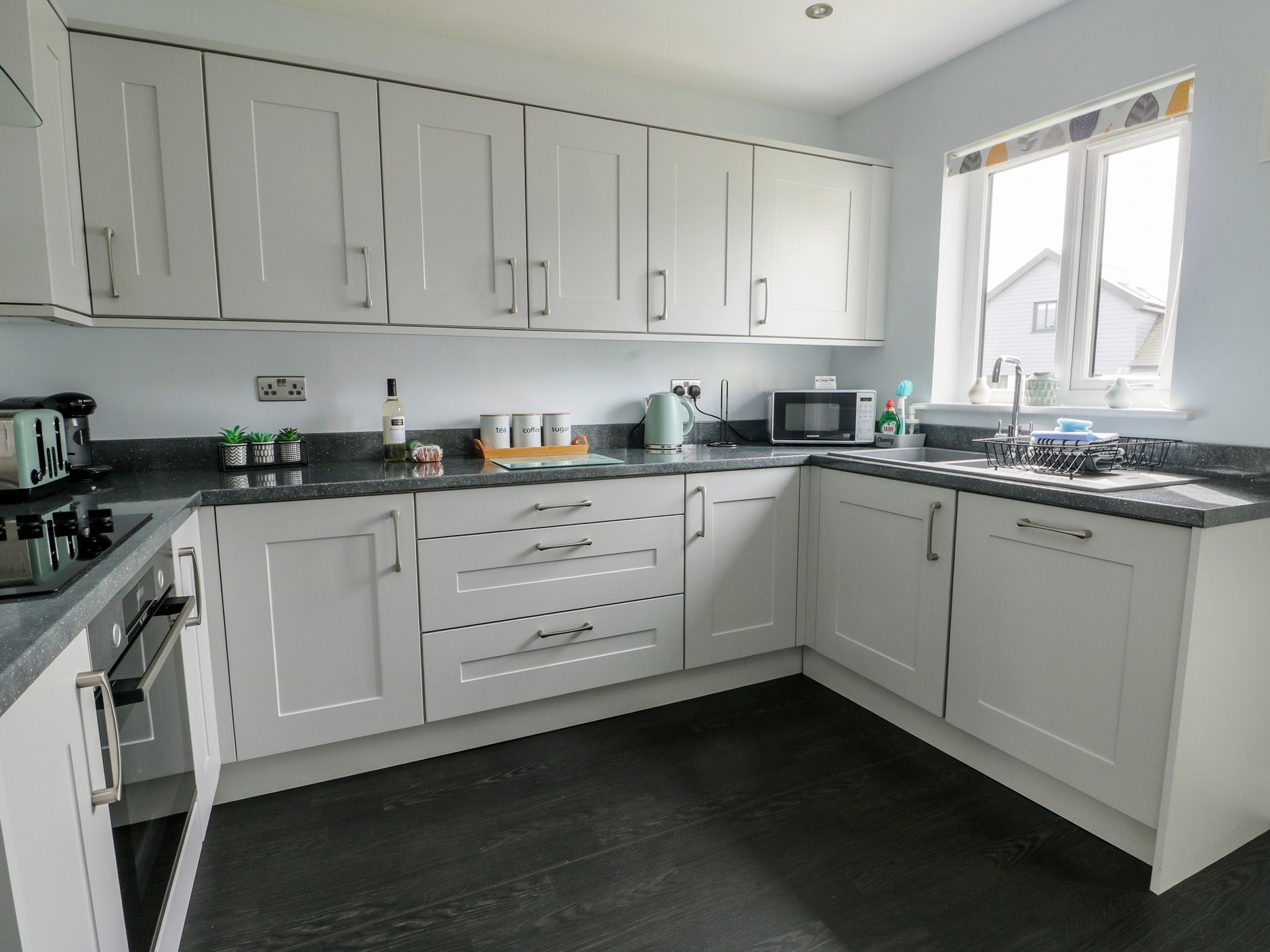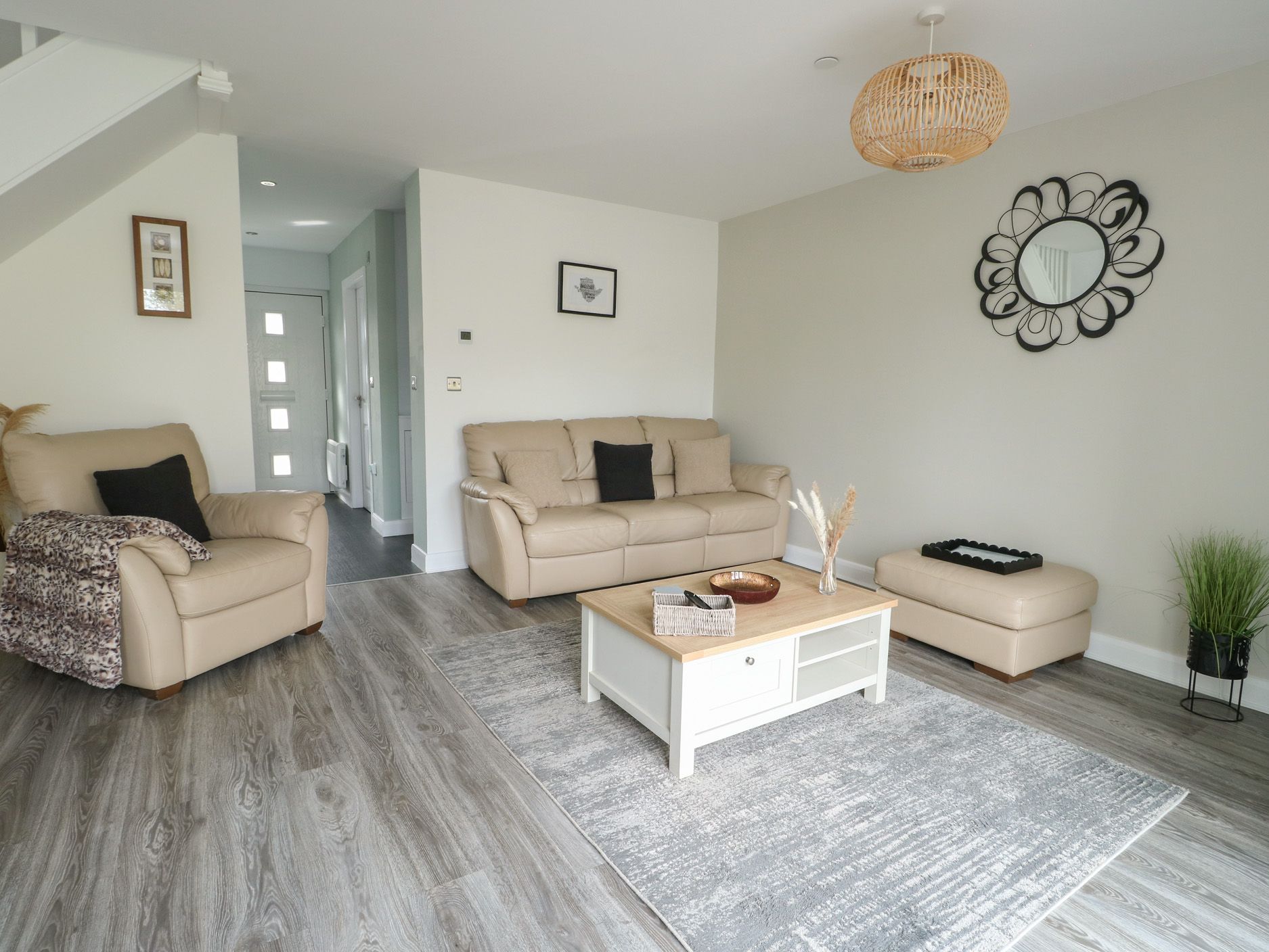 Amenities Electric central heating. Oven and hob, microwave, fridge/freezer, washing machine, dishwasher. TV, WiFi. Fuel and power inc. in rent. Bed linen and towels inc. in rent. Travel cot and highchair available on request. Off-road parking for one car on a drive and extra spaces in the free overflow car park. Enclosed rear garden with seating. Two well-behaved dogs welcome. Sorry, no smoking. Shop 2 miles, pub 0.2 miles. Beach 2.2 miles. Note: The images depict the developments show home, some furnishings will vary. Note: This property allows a minimum stay of 3 nights only.
