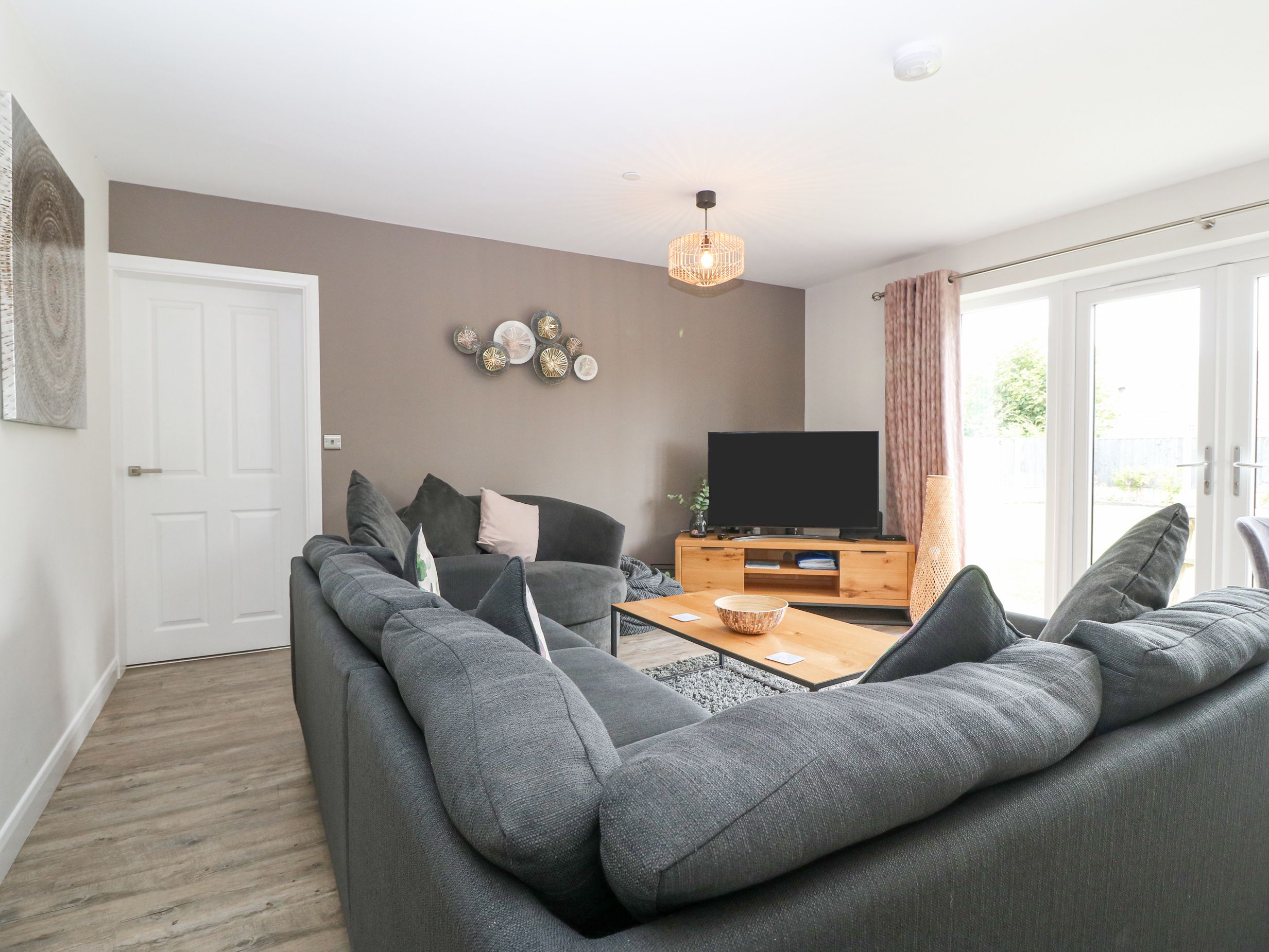 Accomodation Details Over two floors. Three bedrooms: 1 x ground-floor super-king-size with en-suite walk-in shower, basin, heated towel rail and WC, 1 x king-size with Juliet balcony, 1 x children’s room with bunk beds and a single. Bathroom with bath, shower over, basin, heated towel rail and WC. Kitchen. Utility. Living/dining room. Please note; Do not take any of the glasses outside to the garden/Hot Tub as per request from the owner.