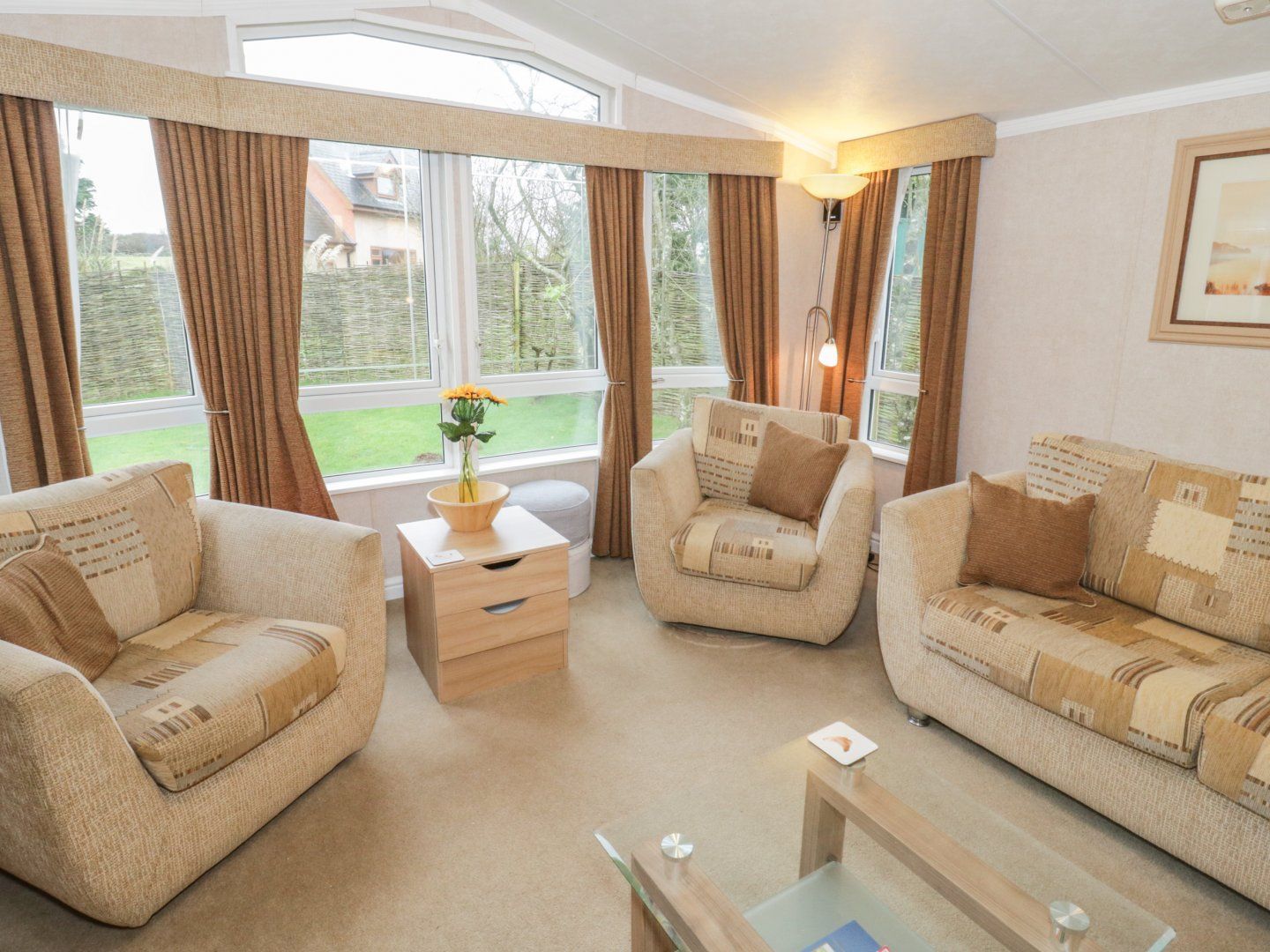 Accomodation Details All-ground-floor. Two bedrooms: 1 x master double with en-suite shower, basin and WC and 1 x twin, 1 x double (zip/link can be a twin on request). Bathroom with bath, shower over, basin and WC. Kitchen/diner. Sitting room with electric fire and double sofa bed