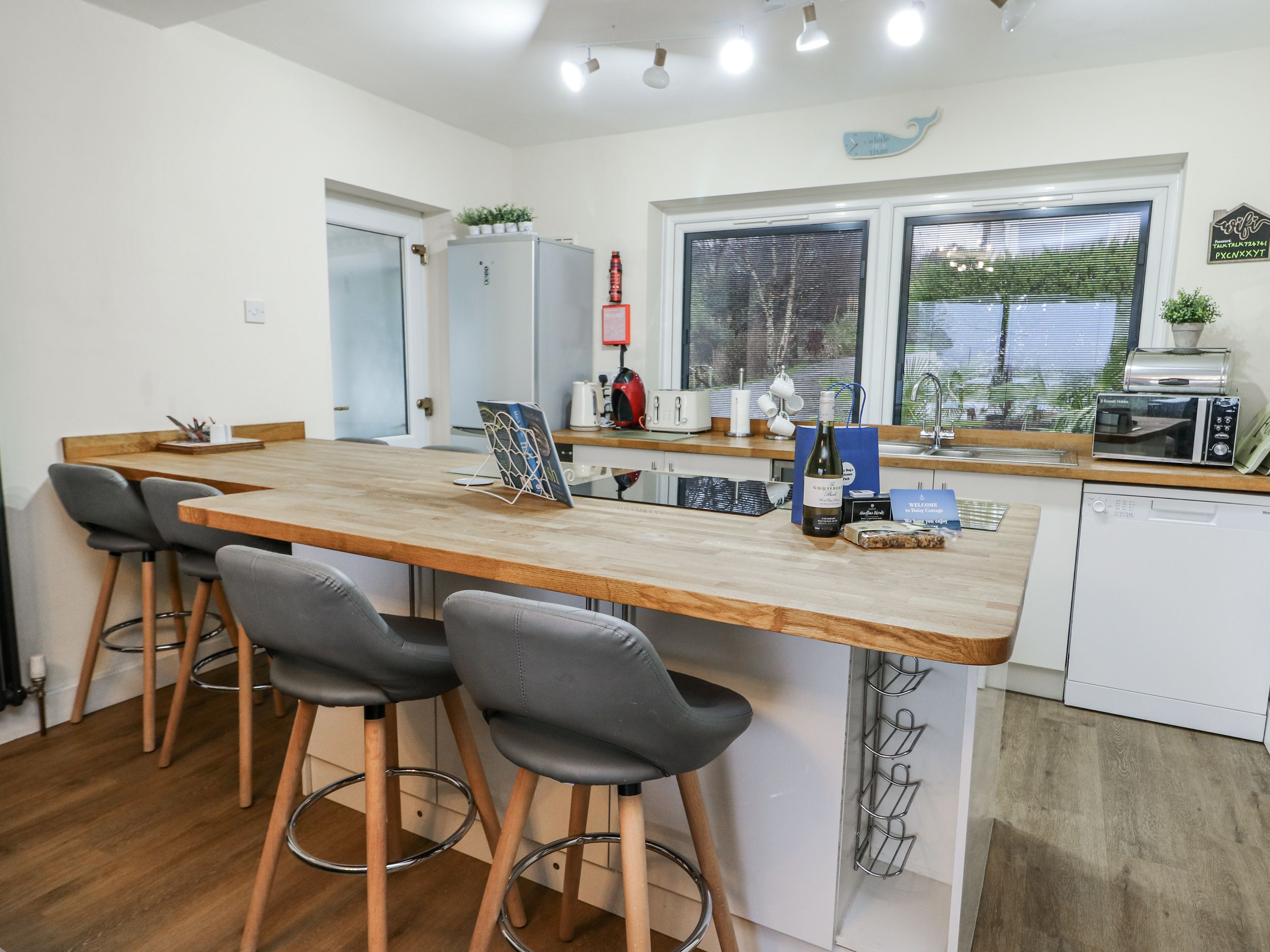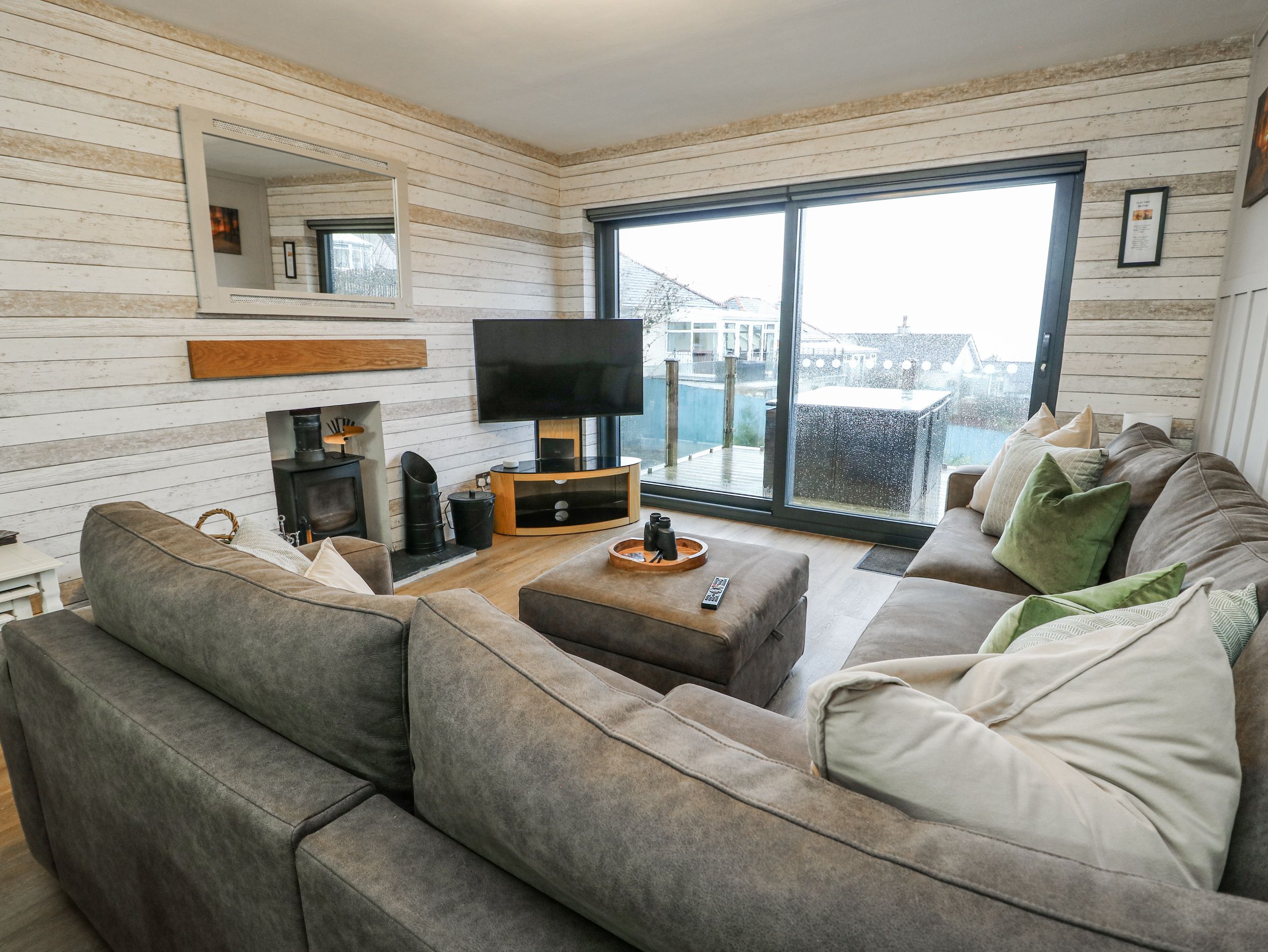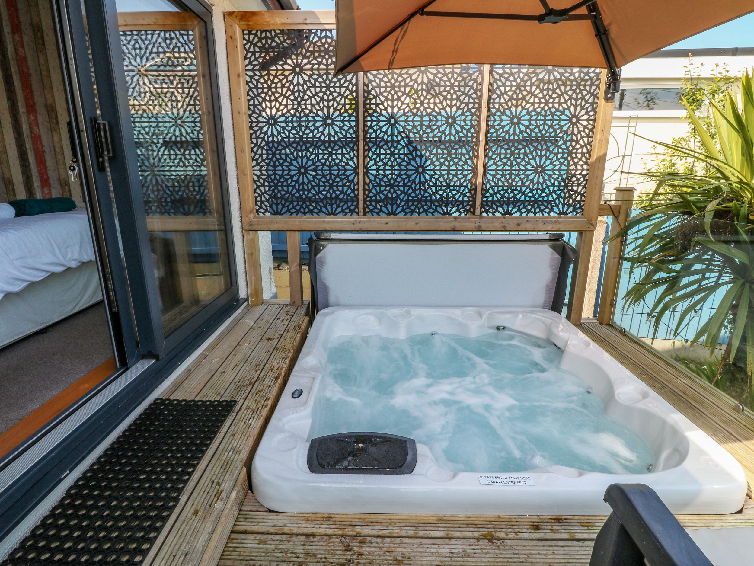 Amenities Gas central heating with multi-burning stove. Electric fan oven and hob, microwave, fridge/freezer, washing machine, tumble dryer, dishwasher, Nescafe Dolce Gusto coffee machine and wine cooler. 3 x Smart TV, WiFi. Fuel, power, and starter pack for woodburning stove inc. in rent. Bed linen and towels inc. in rent. Private driveway for 1 car with additional roadside parking. Enclosed, multi-level rear garden with an artificial lawn, terrace with a sunken hot tub, and terrace with furniture. Front garden with patio and furniture. One well-behaved dog welcome. Note no pets on the furniture. Sorry, no smoking. Shop 0.4 miles, pub 0.3, beach 0.3. Note: The front garden is not enclosed. Note: There are a few steps up to the property. Note: There are steep stairs up/down from the garden terrace. Note: The hot tub is emptied and refilled after every booking so will not be hot on arrival but will heat up over night, hot tub will be ready 24 hours after check in time.