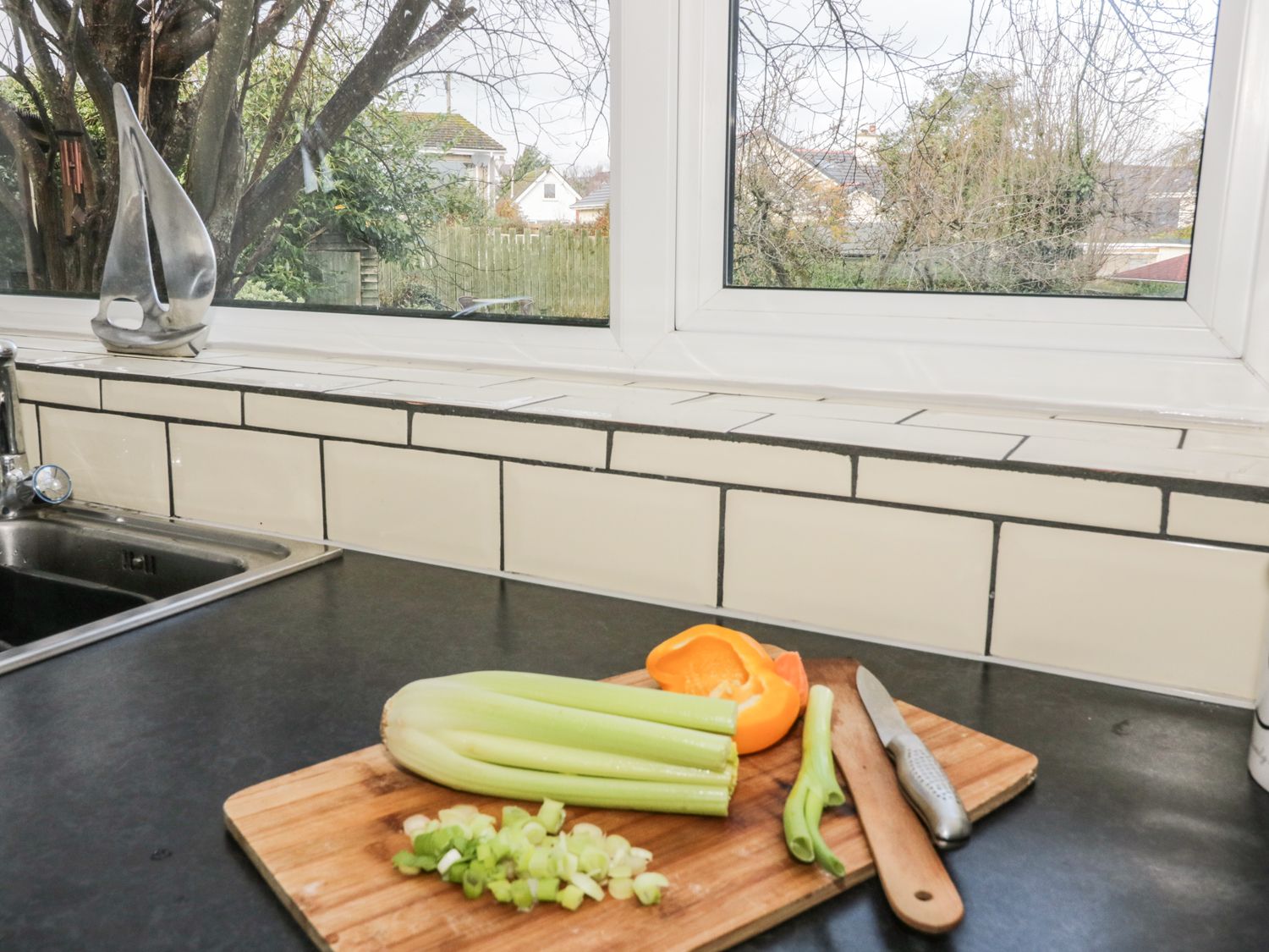 Amenities Gas central heating. Electric oven, ceramic hob, microwave, fridge, freezer, wine cooler, washing machine. TV with Freeview, DVD, WiFi. Fuel and power inc. in rent. Bed linen and towels inc. in rent, please bring own beach towels. Off road parking for 4 cars/boats. Enclosed lawned garden with patio, decking and furniture. Two well-behaved dogs welcome. Sorry, no smoking. Shops, pubs and beach 4 mins walk. Note: Upstairs rooms have sloping ceilings with reduced head-height to sides. Note: Open-tread stairs, young children to be supervised. Note: Small terraced drop in rear garden, adults and children to take care. Note: Please do take extra care on the decking in inclement/wet weather and around any drainage manhole cover on the path