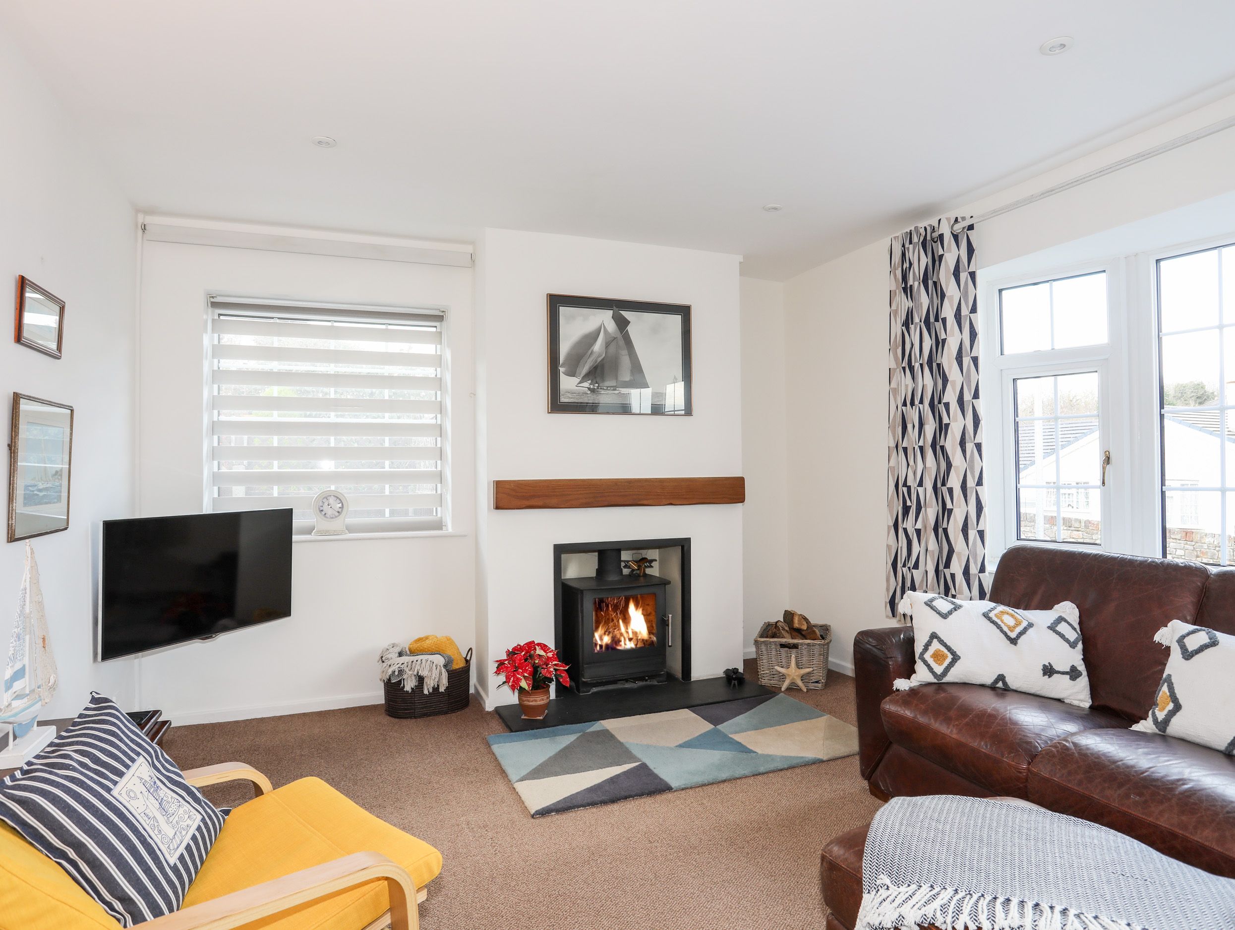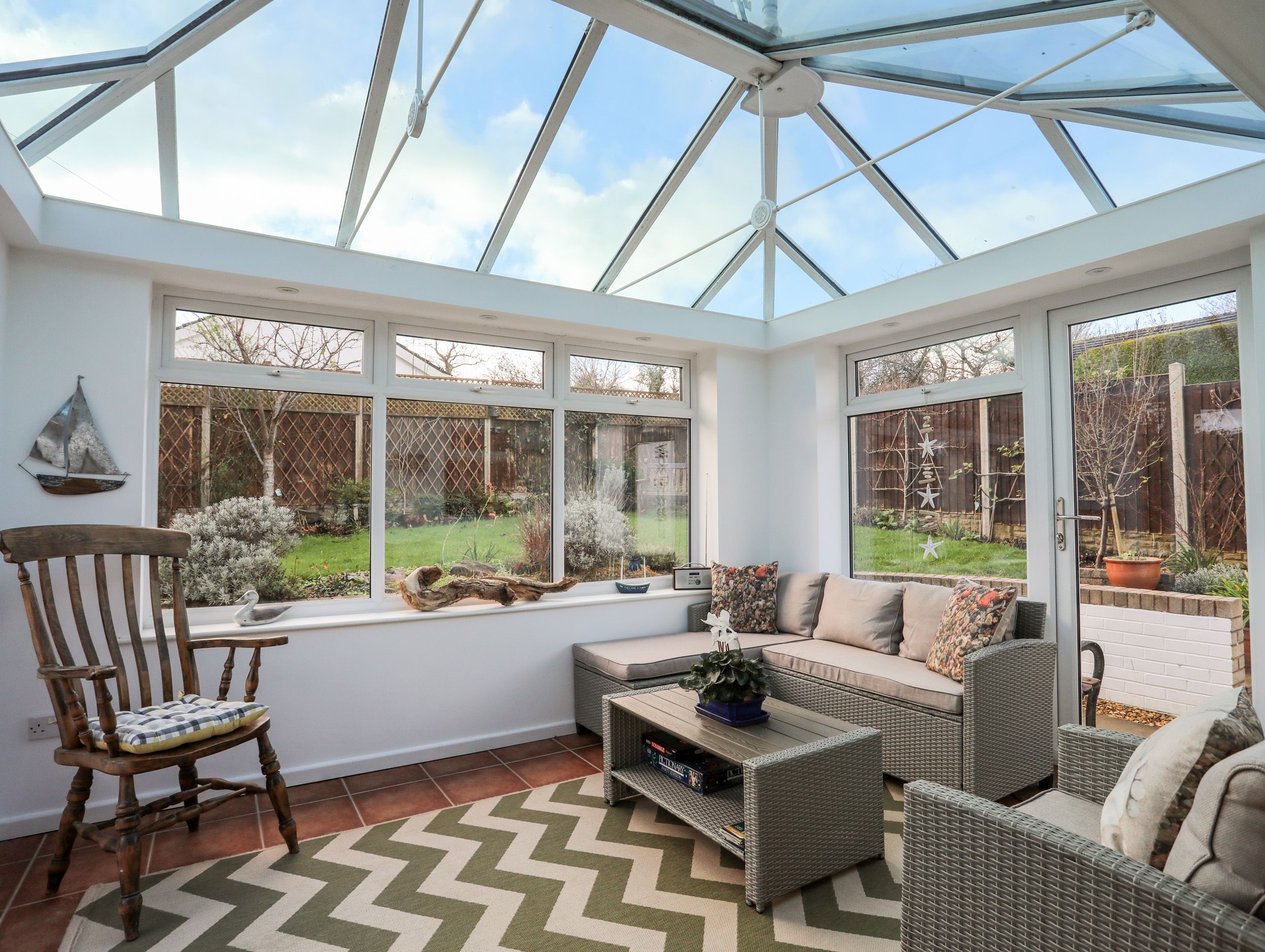 Accomodation Details Single-storey. Three bedrooms: 2 x double, 1 x single with trundle bed on request. Shower room with walk-in shower, basin, heated towel rail and WC. Cloakroom. Open-plan living space with kitchen, dining area and sitting area with woodburning stove. Sunroom