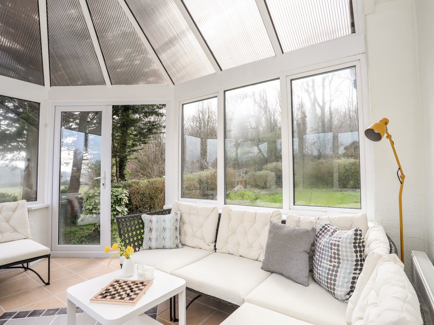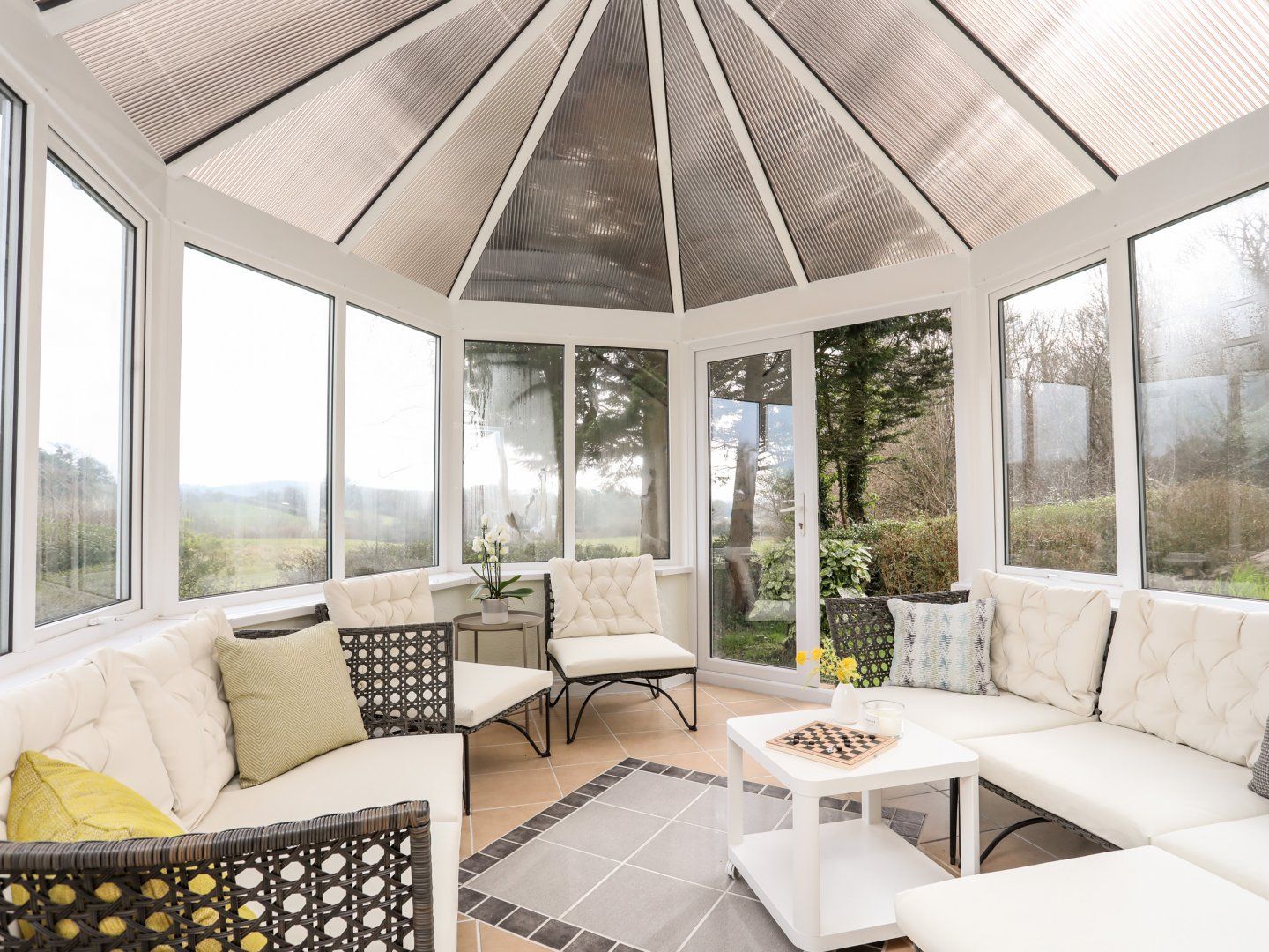 All beds except the single have hand-made, all-natural fillings, pocket sprung mattresses simply the most comfortable in the world. Plus, a full size super-comfortable double bed settee in the lounge also with a pocket sprung mattress. Ground-floor bathroom with bath, walk-in shower, basin, heated towel rail, and WC. First floor shower room with walk-in shower, basin, heated towel rail and WC. Fully equipped Kitchen and very large dining area for up to 12 people. Utility with washing machine and tumble dryer. Sitting room with wood burning fireplace. Conservatory with board games, books and toys.