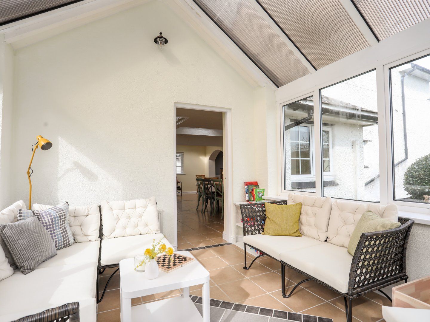 Holiday home The living areas include a kitchen with electric oven and hob, microwave, fridge/freezer, dishwasher, a utility room with washing machine and tumble dryer, a dining room with seating for ten, a sitting room with Smart TV and woodburning stove and a conservatory with ample seating. The bedrooms include a super-king-size with TV, three twin rooms (all zip/link) and a single room, served by a bathroom and shower room. To the outside is ample off-road parking and an enclosed garden patio with furniture. Within 0.2 miles there is a shop, a pub within 0.1, and a beach within 0.9. This property does not accept pets or smoking. WiFi, travel cot, highchair, fuel, power, bed linen and towels are included in price. Neuadd Wen is a spacious property for a special family getaway, whatever time of year.