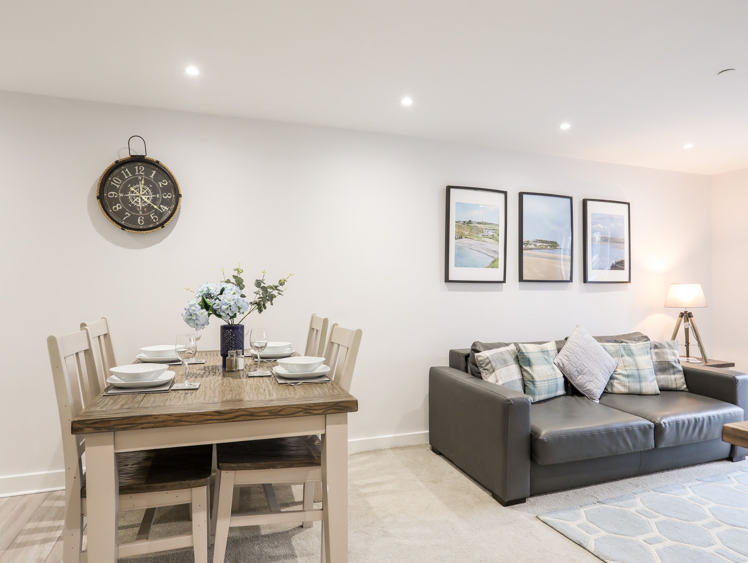 Holiday home This spacious and stylish ground floor holiday apartment is the perfect base to enjoy your seaside getaway. Comfy, cosy furnishings, underfloor heating and modern fixtures throughout. Juliette balconies allow the light and sea air to flood in and with underfloor heating, you can be sure to be cosy on chilly evenings after a day’s adventures.