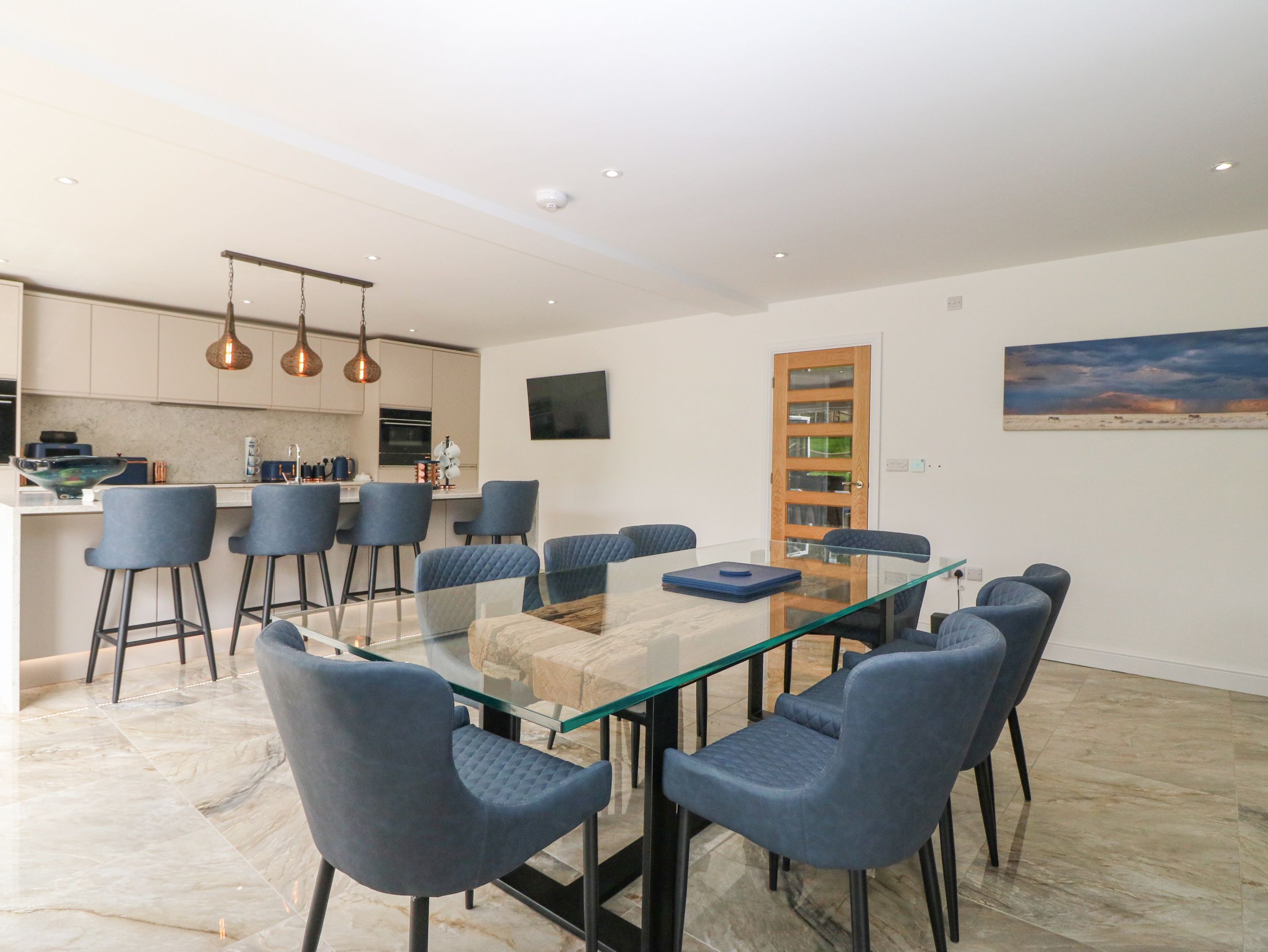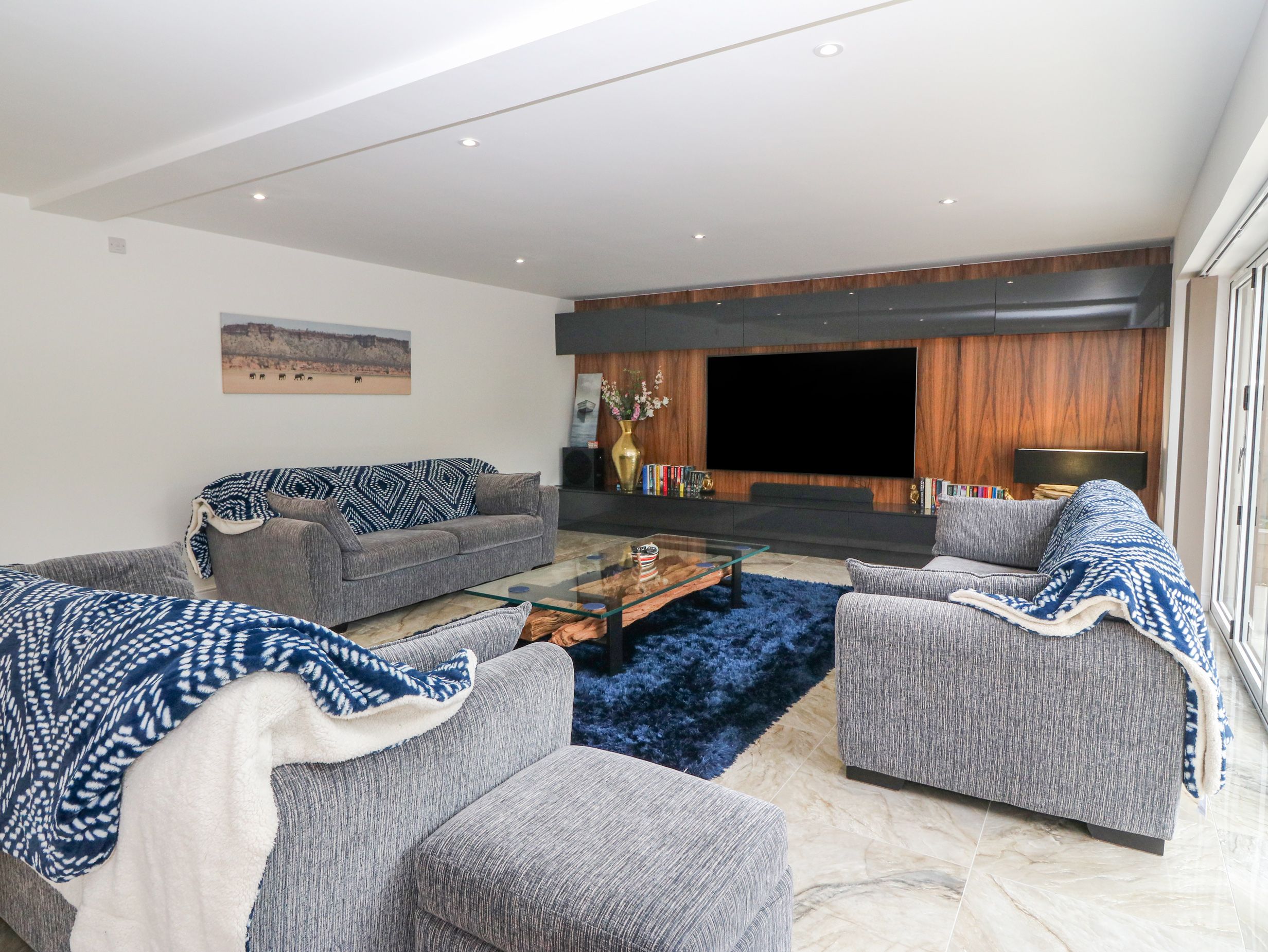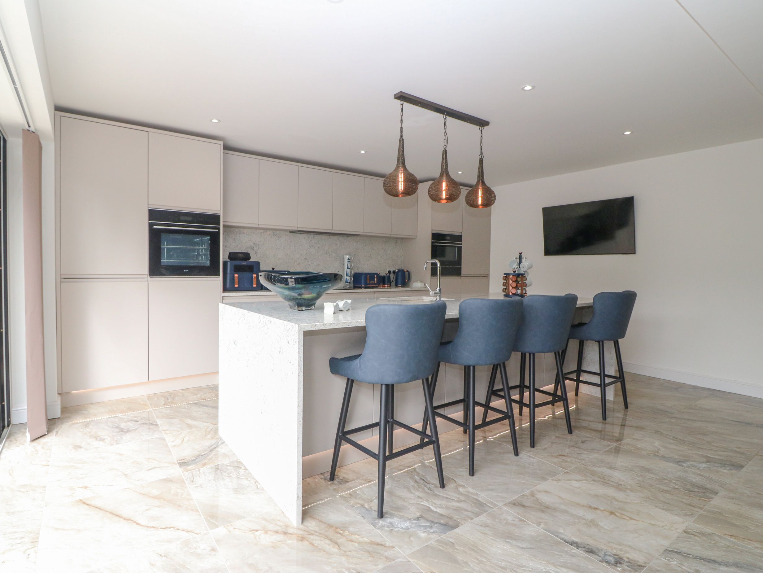 Accomodation Details Five bedrooms: 1 x super-king-size with Smart TV and en-suite walk-in shower, basin, and WC, 2 x king-size with Smart TV and en-suite walk-in shower, basin, heated towel rail, and WC, 1 x ground-floor triple bunk room, 1 x ground-floor triple with en-suite walk-in shower, basin, and WC. Ground-floor bathroom with bath, shower over, basin, WC. Open-plan living space with kitchen, dining area and sitting area