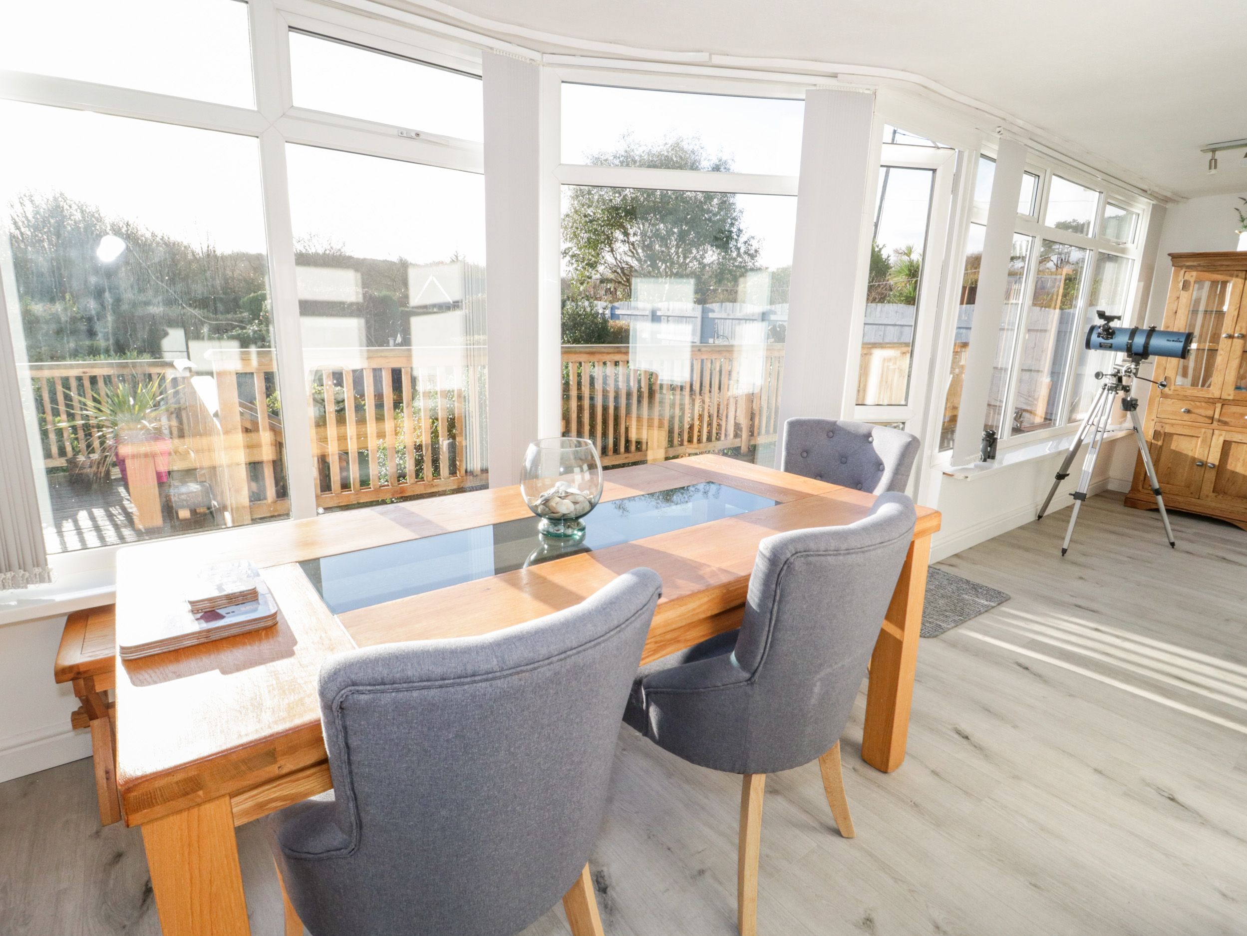 Amenities Electric central heating and log fire. Electric oven and hob, microwave, fridge/freezer. TV, DVD, WiFi. Fuel and power inc. in rent. Bed linen and towels inc. in rent. Travel cot available. Off-road parking for three cars. Multi-level enclosed garden with lawn and decking with furniture, summer house and coal/ gas BBQ. Sorry, no pets and no smoking. Shop and pub 0.3 miles. Beach 0.7 miles