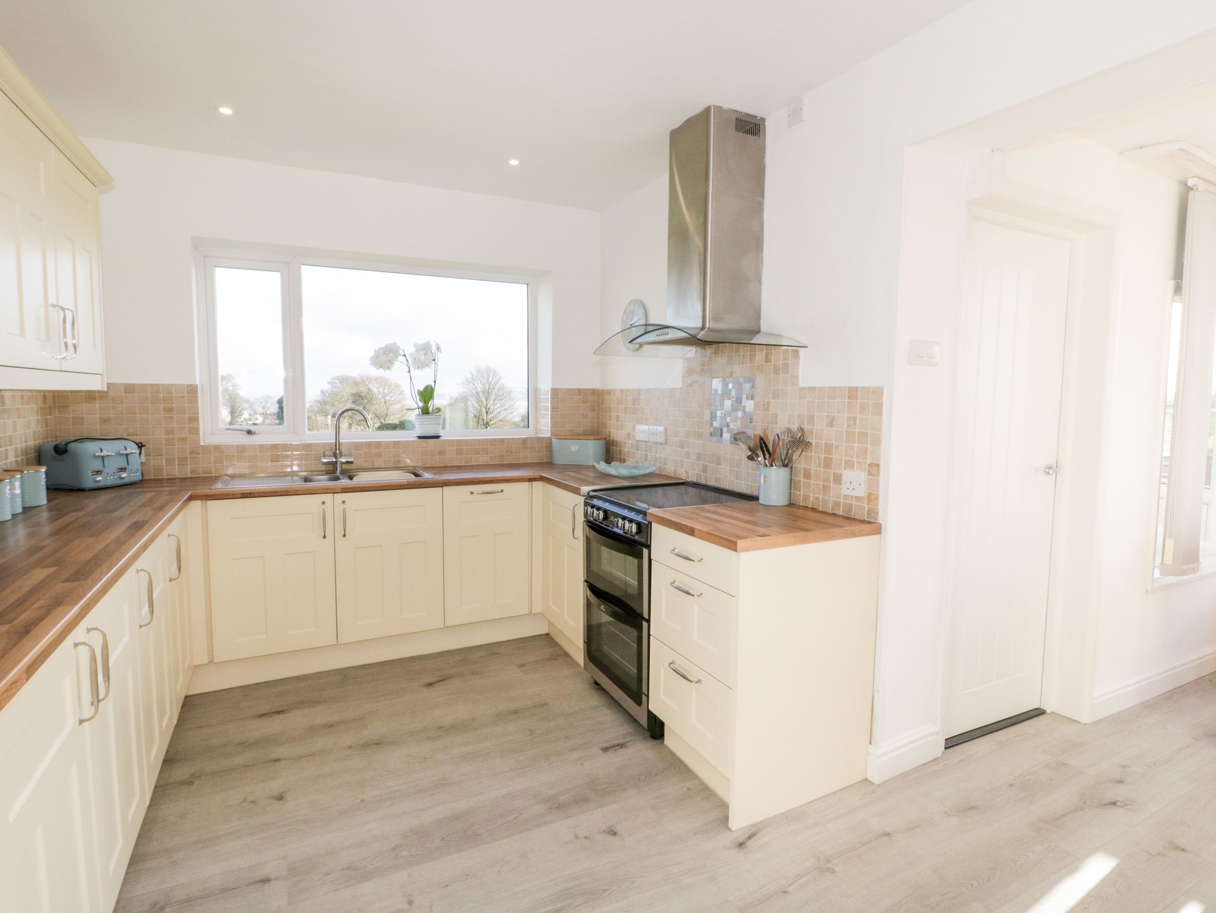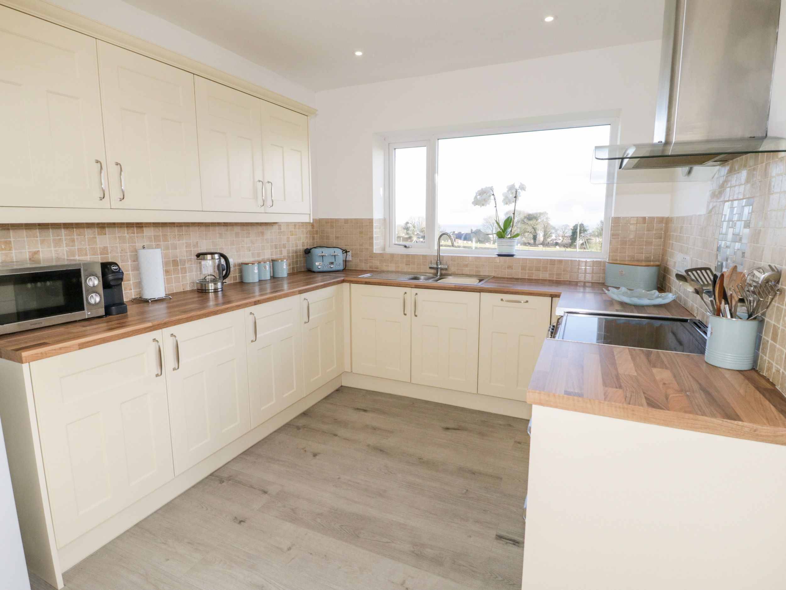 Holiday home Tyddyn Glas is a detached bungalow resting in Benllech in Anglesey. Hosting three bedrooms; two king-size and a bunkroom, along with a bathroom, this property can sleep up to six guests. There is an open-plan living space with a kitchen, dining area and sitting area with a fire. To the outside, there is a multi-level enclosed garden with lawn and decking with furniture. Enjoy an elegant trip with your loved ones at Tyddyn Glas in Anglesey.