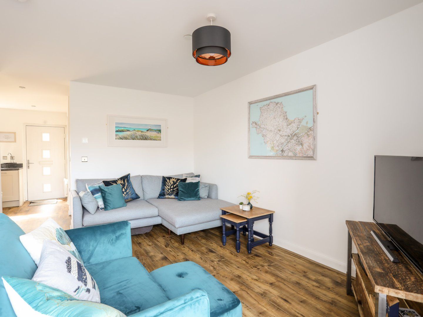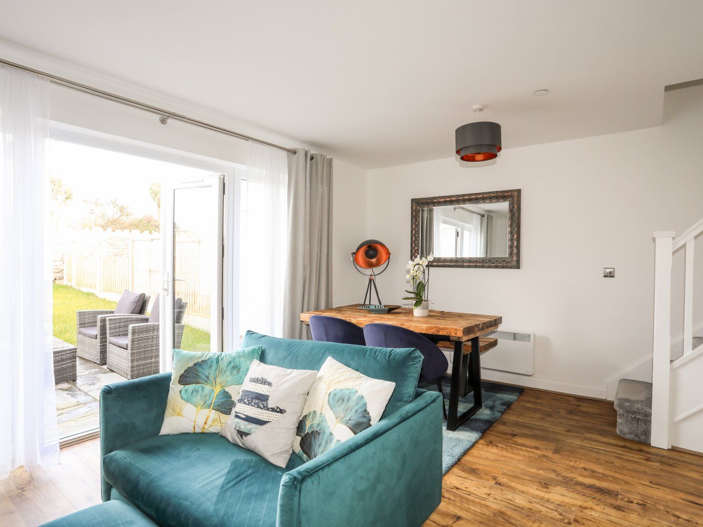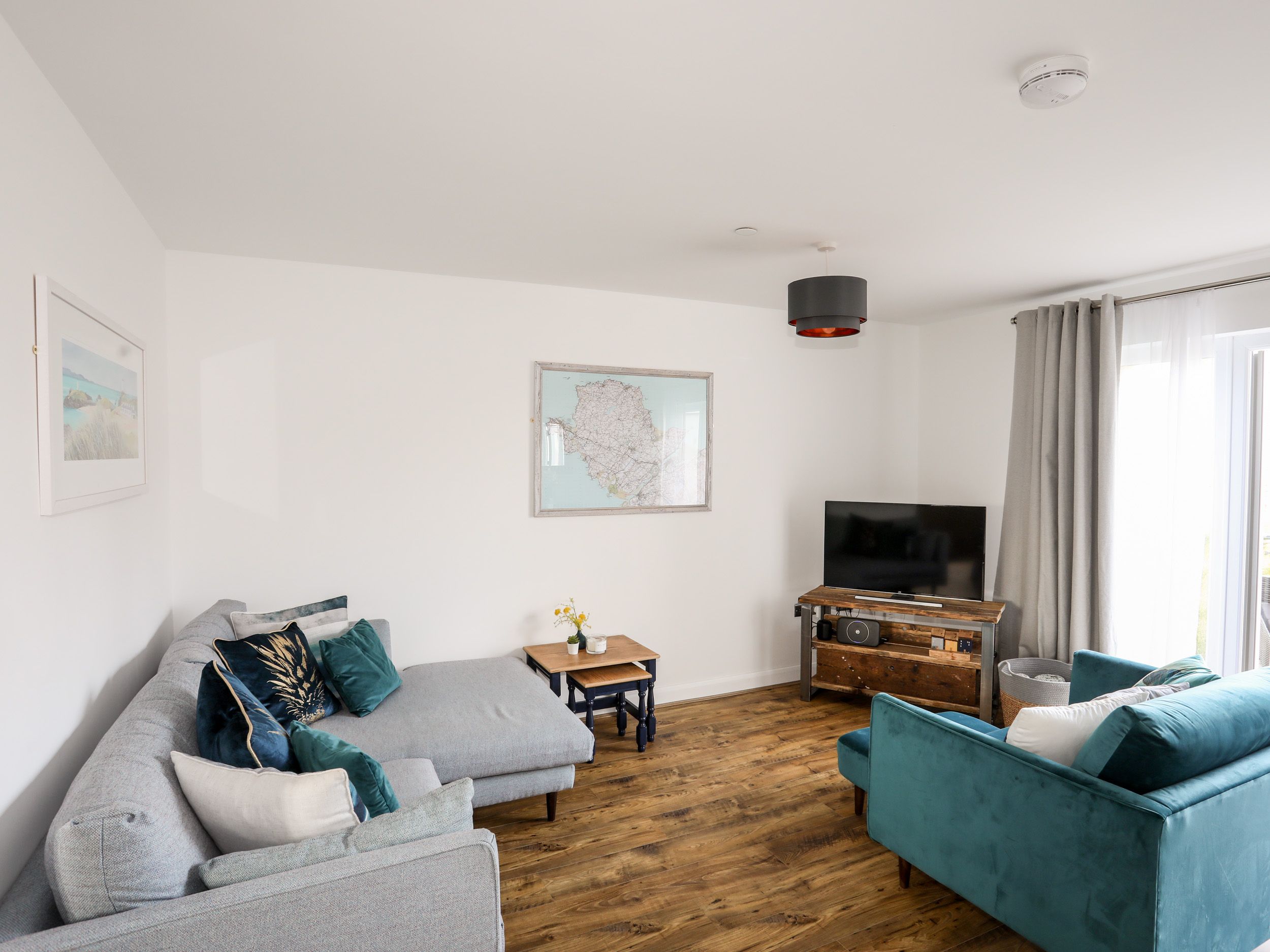 Accomodation Details Two bedrooms: 1 x king size bed with Juliet balcony, 1 x twin. Bathroom with bath, shower over, basin, heated towel rail and WC. Ground-floor shower room with walk-in shower, basin and WC. Kitchen. Utility. Living/dining room
