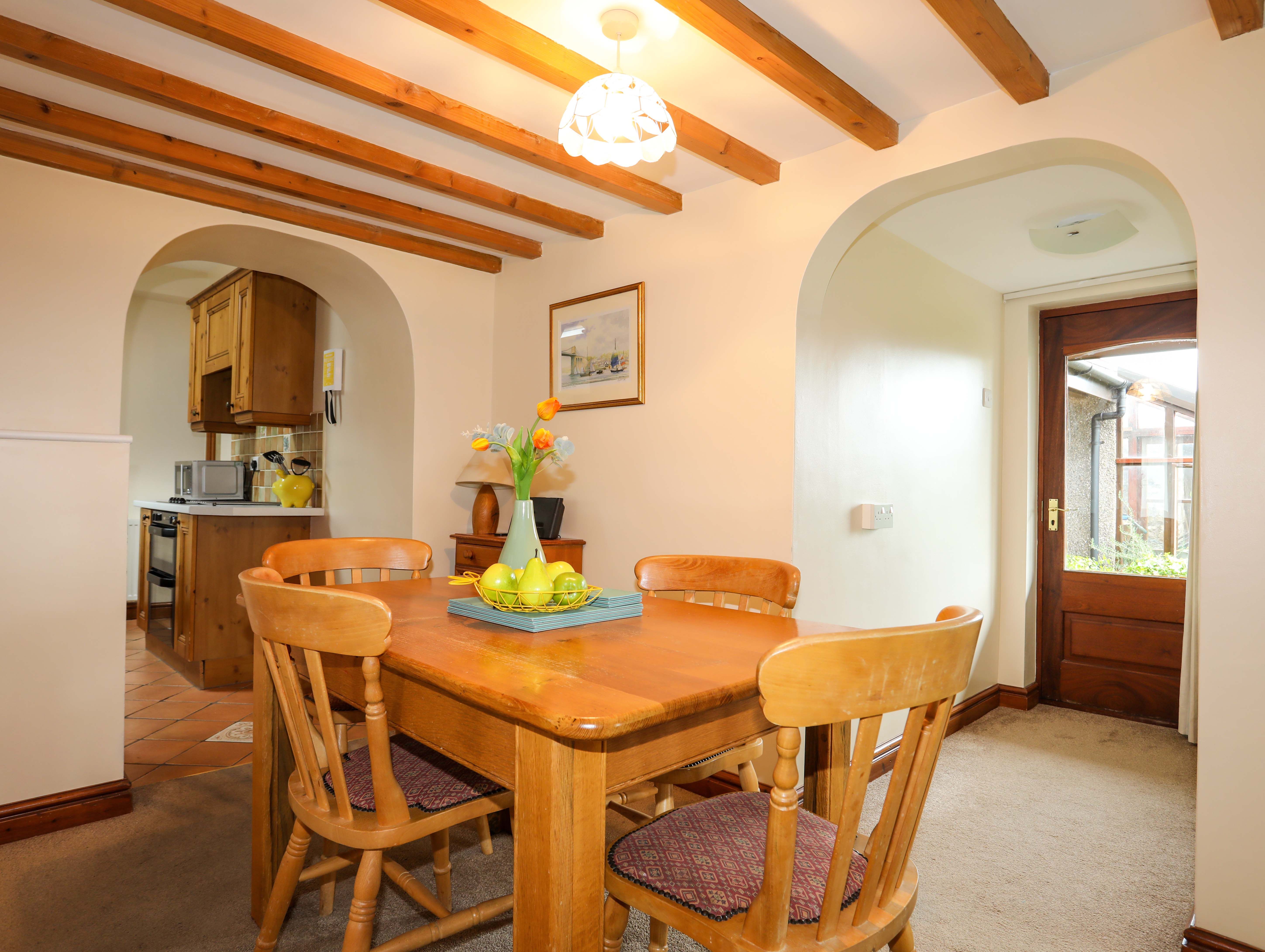 With a cosy interior, you have a small sitting room with TV and windows with views out across the garden, there’s a dining area with table and chairs and sit up to four people.The well equipped kitchen has everything you need to do a little home cooking, and there’s an electric hob, oven, fridge freezer, microwave and toaster.The utility has a washing machine/dryer and bread-maker.