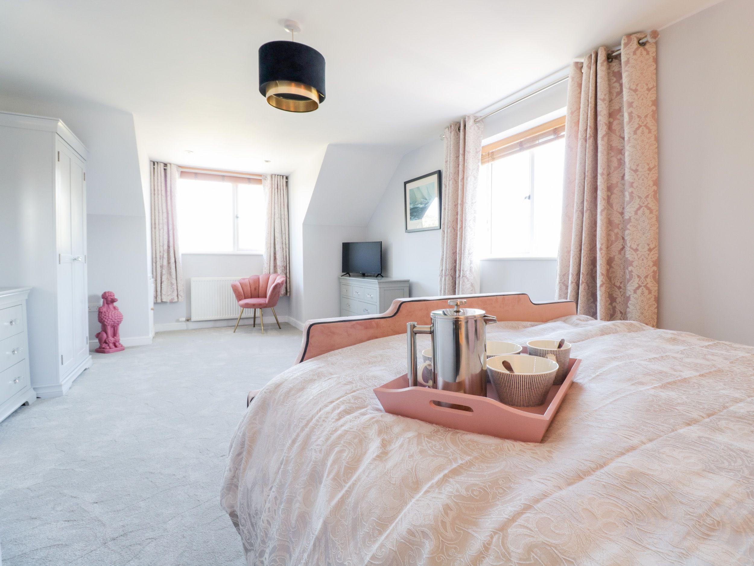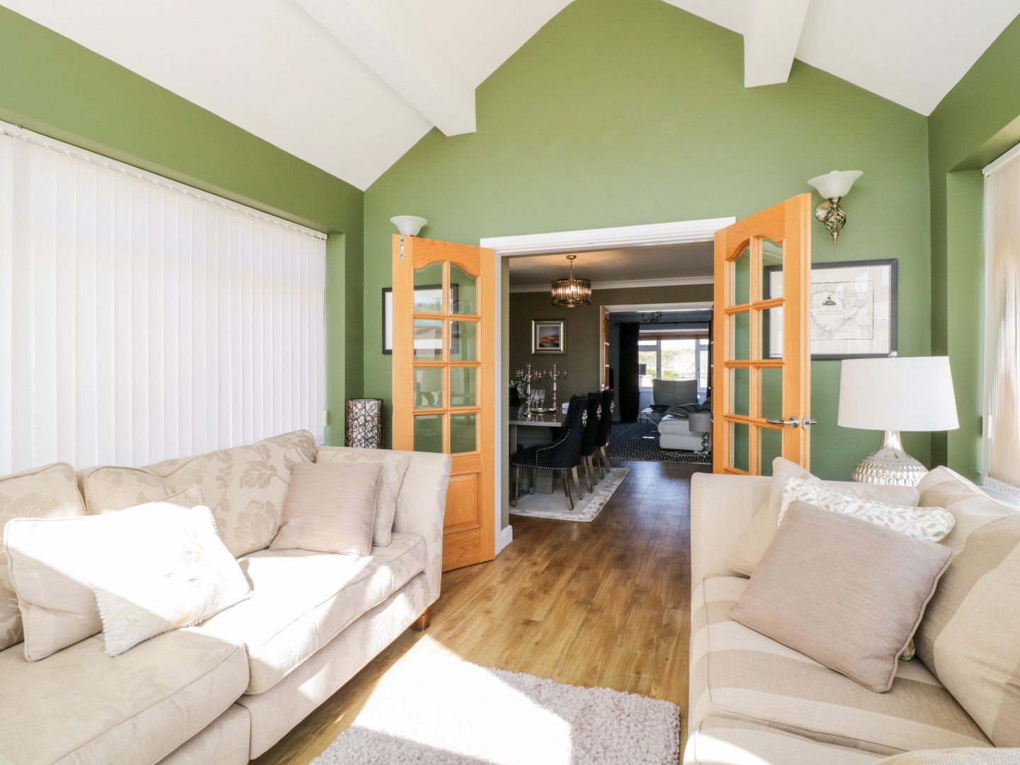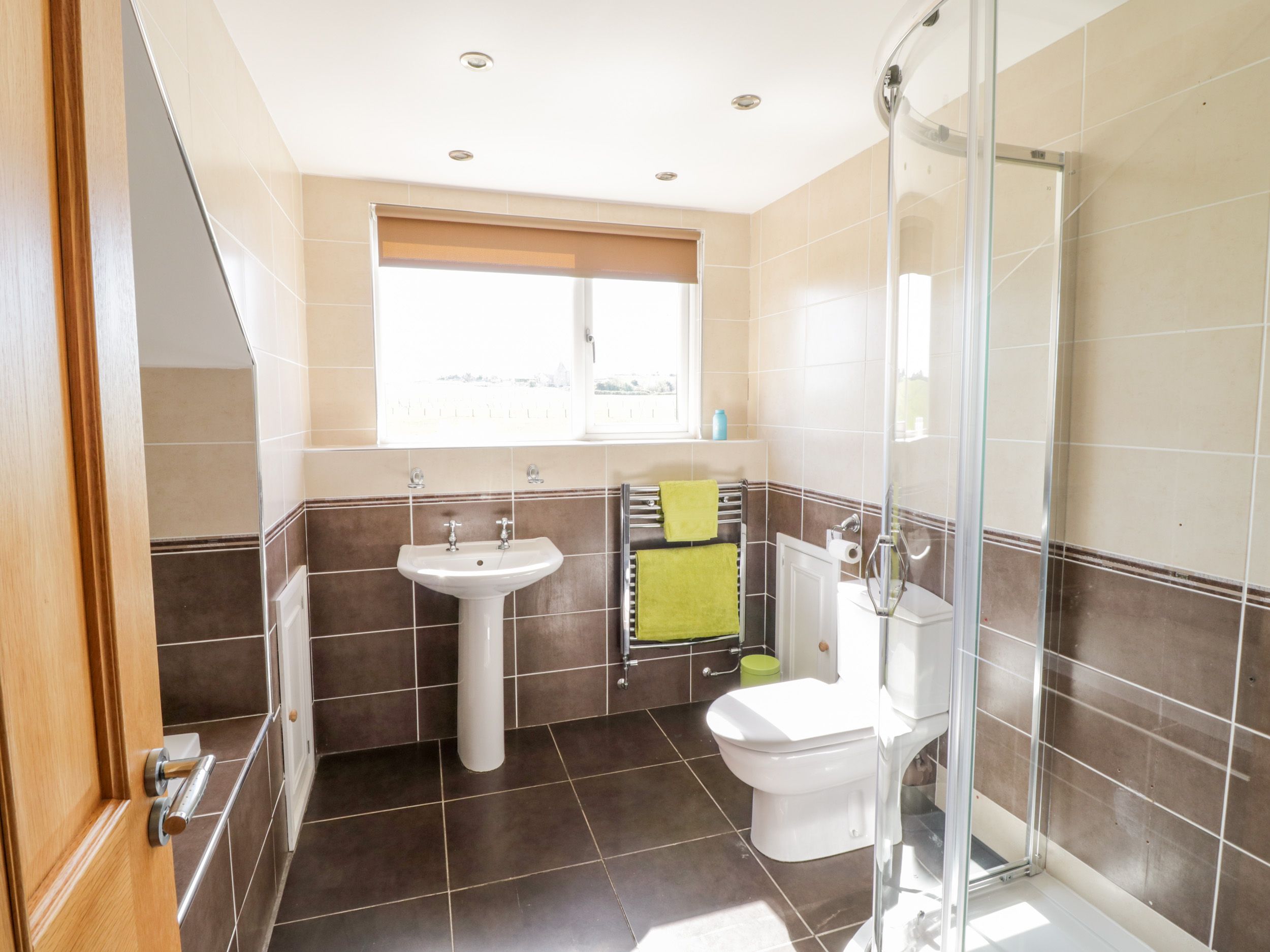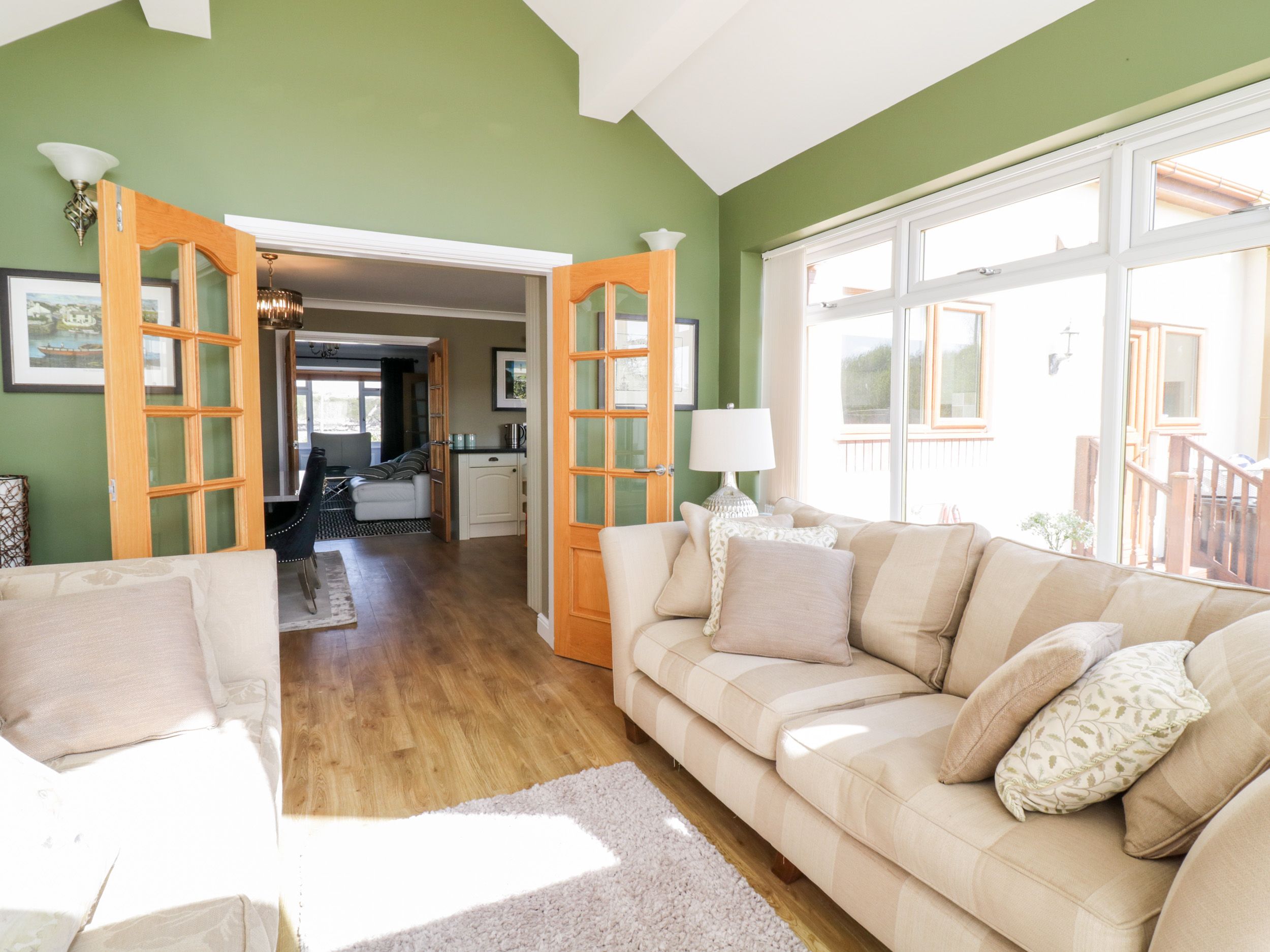 Three bedrooms: 1 x bedroom with king-size bed, TV and en-suite shower, basin, heated towel rail and WC. 1 x bedroom with king-size bed with TV. 1 x ground-floor bedroom with king-size bed. Bathroom with bath, walk-in shower, basin, heated towel rail and WC. Ground-floor shower room with walk-in shower, basin and WC. Kitchen/diner. Sitting room with views towards the sea and enjoying a woodburning stove. 2x Smart TVs at the property - convenient for you to bring TV adaptors such as Firesticks or HDMIs. Conservatory/Sun room with views over the rear garden and then towards the rolling countryside.