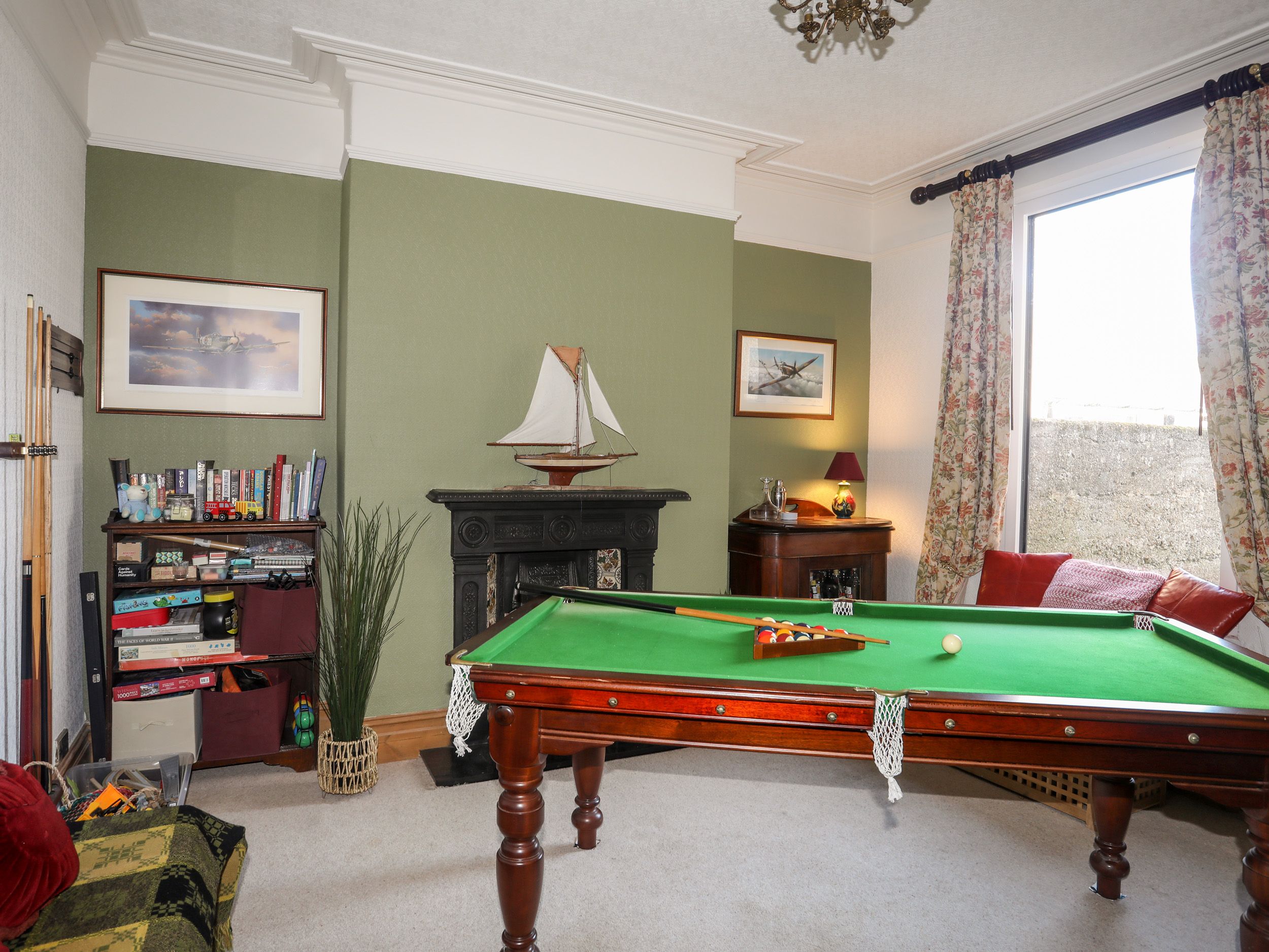 The living areas in this property consist of a kitchen with oven, hob, microwave, and fridge/freezer, a utility, a cloakroom, a living/dining room, a sitting room with TV and woodburning stove, a games room with pool table, a third-floor sitting room, and a garage for storage. The bedrooms consist of a super-king-size with Jack-and-Jill access into the bathroom, a king-size with en-suite, two second-floor king-size, a double, and a second-floor double, along with a second-floor shower room. Outside there is a front lawn, a rear courtyard with furniture, and off-road parking for two cars. This is a smoke-free property. You'll find a shop in 0.2 miles, a pub in 0.1 miles, and the beach in 0.3 miles. WiFi, fuel, power, bed linen and towels are all included in the price. Glasfryn is a wonderful base for a group getaway to Anglesey. Note: The first-floor king-size bedroom has an open en-suite, falling as a part of the bedroom. Note: Check-in from 4pm, check-out by 10am.