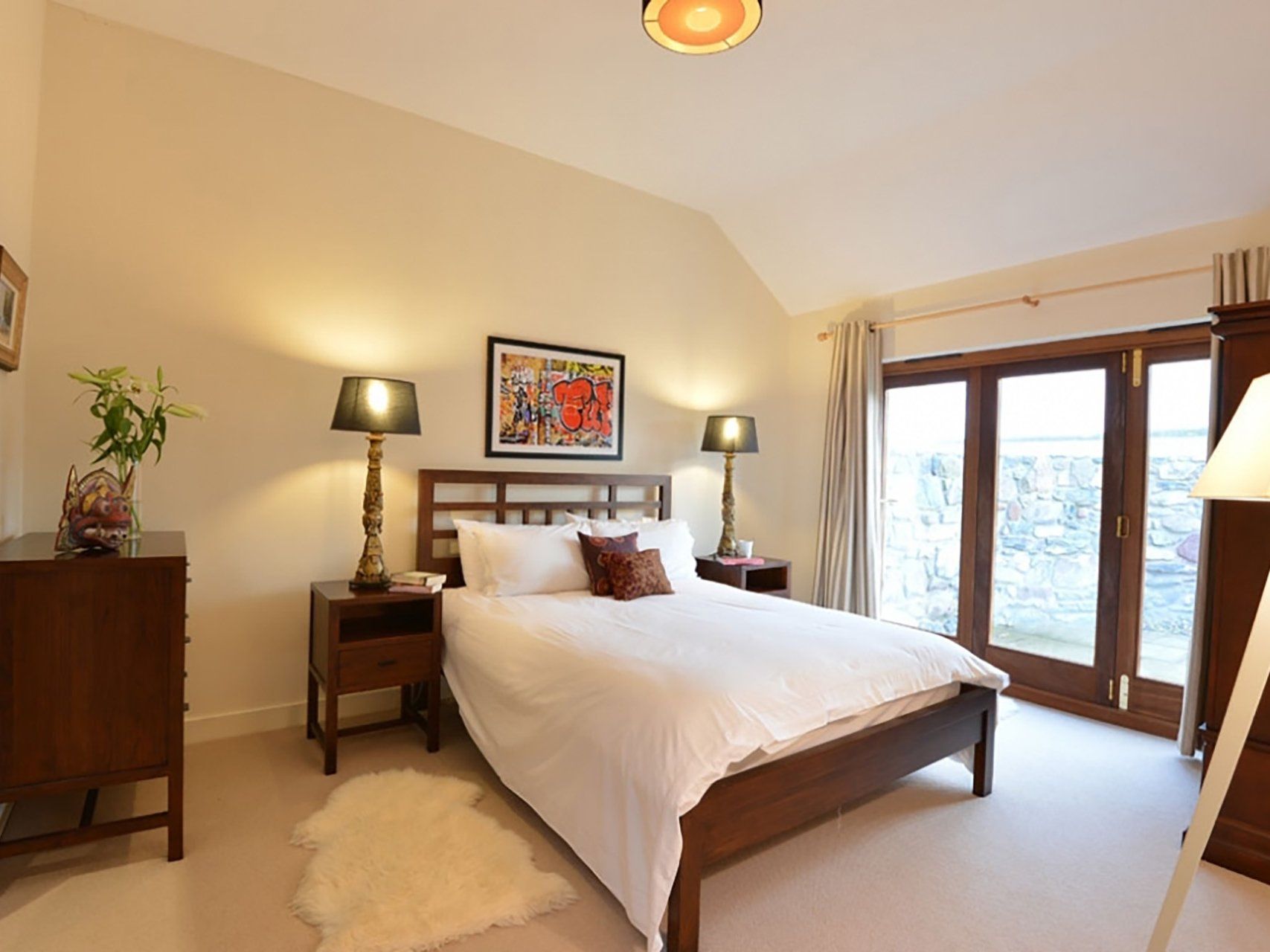 Accomodation Details One bedroom: 1 x double. 1 x ensuite bathroom with large double-headed shower, an extra large bath, loo, wash hand basin and heated towel rail. Open plan kitchen, dining and sitting room with modern wood burning stove, TV, DVD player, CDs and DVDs.