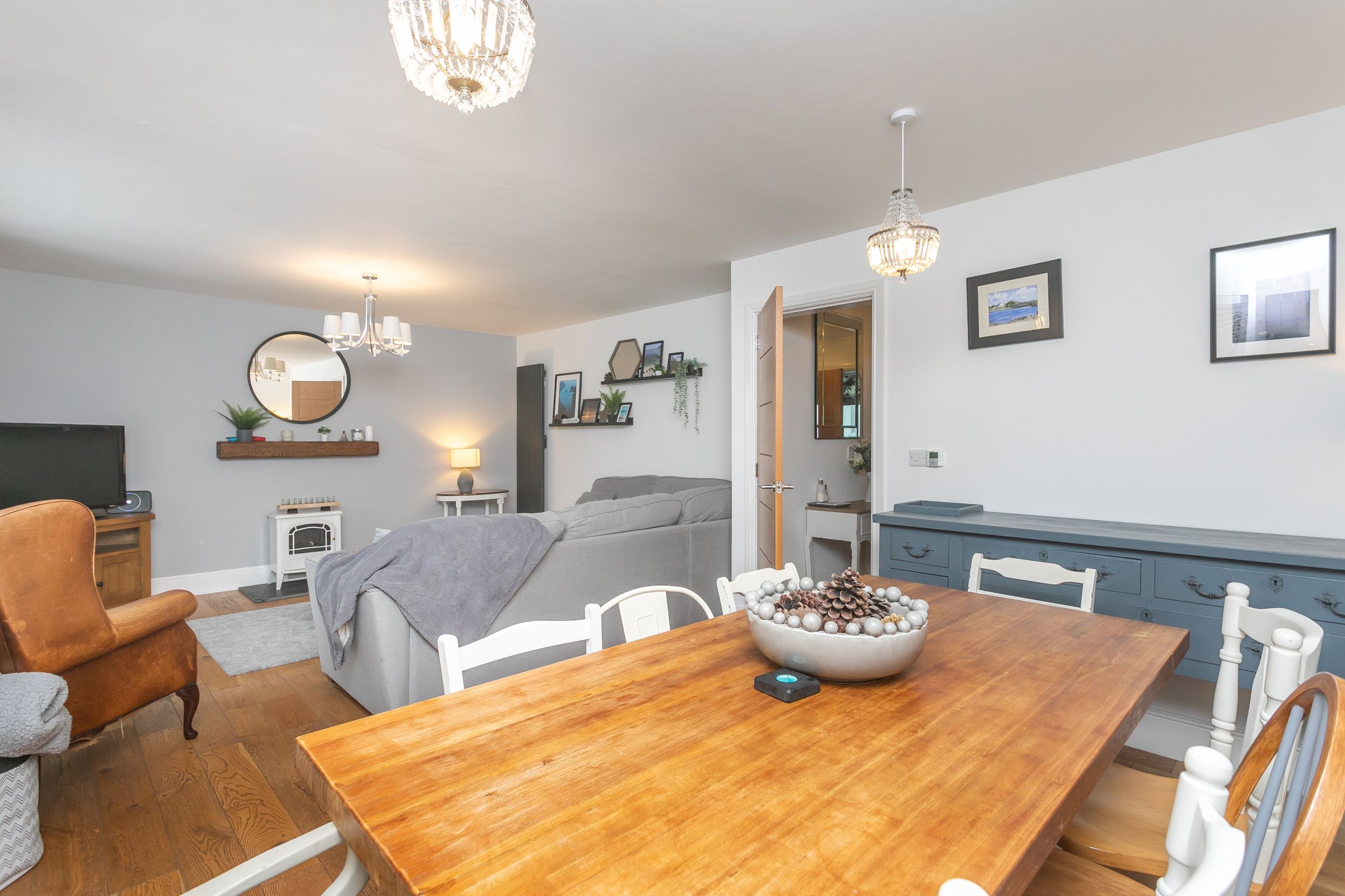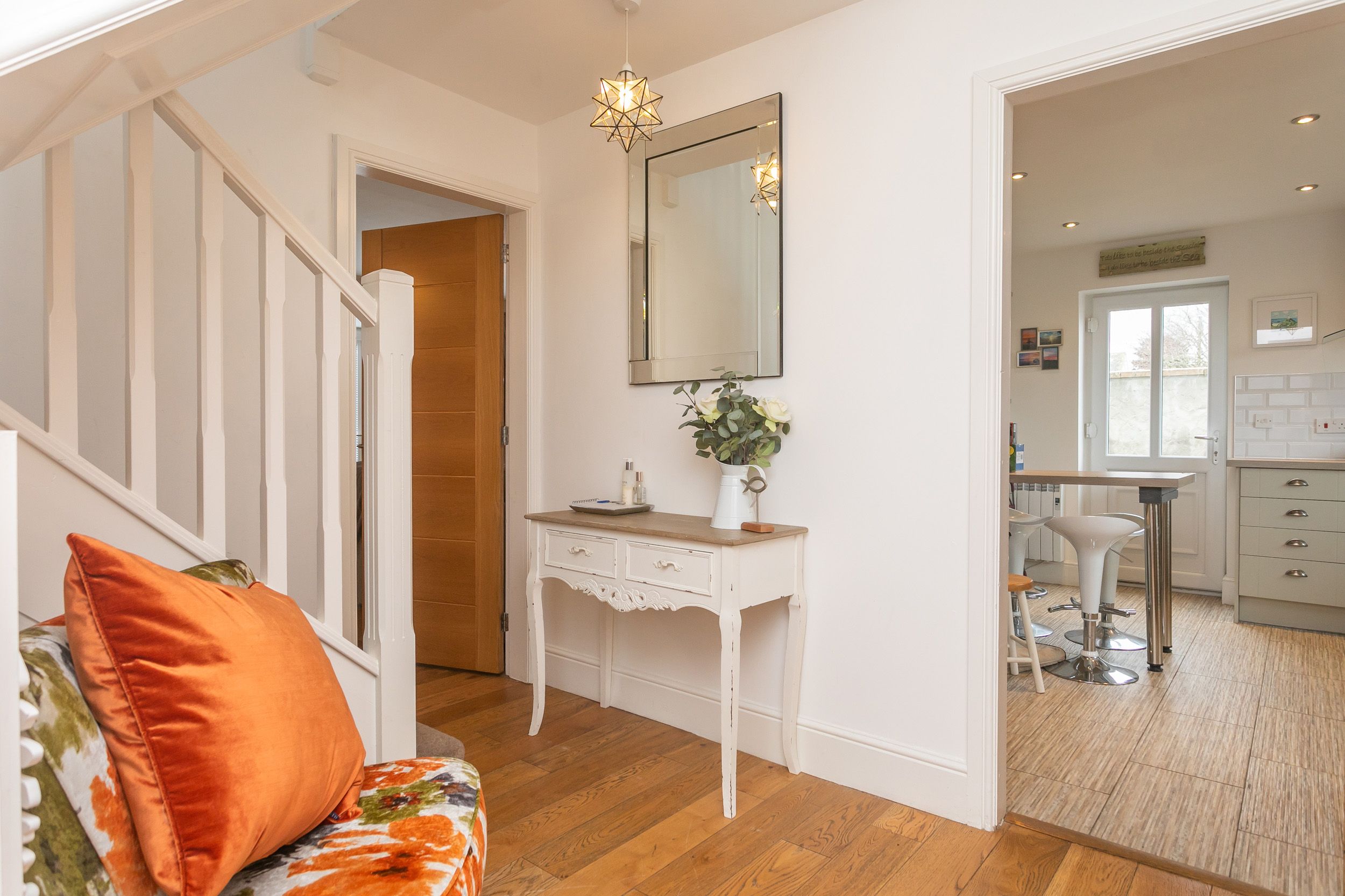 Amenities Electric central heating. Electric oven and hob, microwave, fridge/freezer and dishwasher. Apple TV, Fibre-optic broadband, board games. Fuel and power inc. in rent. Bed linen and towels inc. in rent. Highchair and travel cot available on request. Private parking for 2 cars. Private decking with furniture. Sorry, no pets and no smoking. Shop 1.3 miles, pub 0.4 miles, beach 1.8 miles