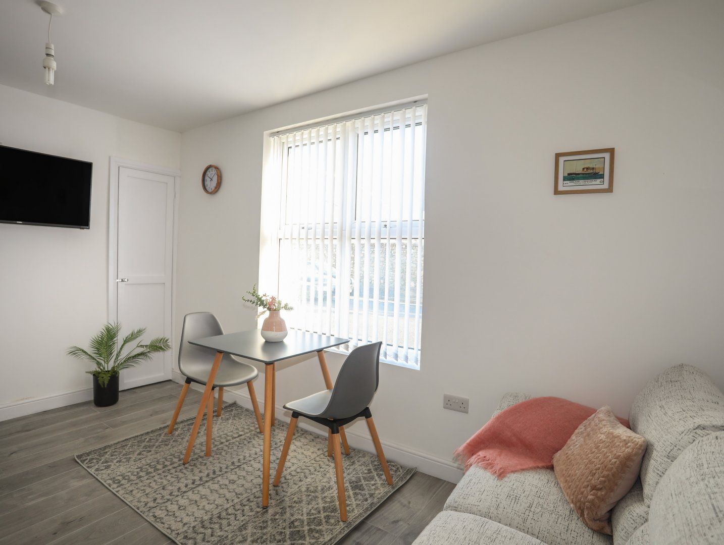 Accomodation Details Ground-floor apartment. One double bedroom with en-suite walk-in shower, basin and WC. Open-plan living space with kitchen, dining and sitting area. 200m from the Holyhead Port Terminals