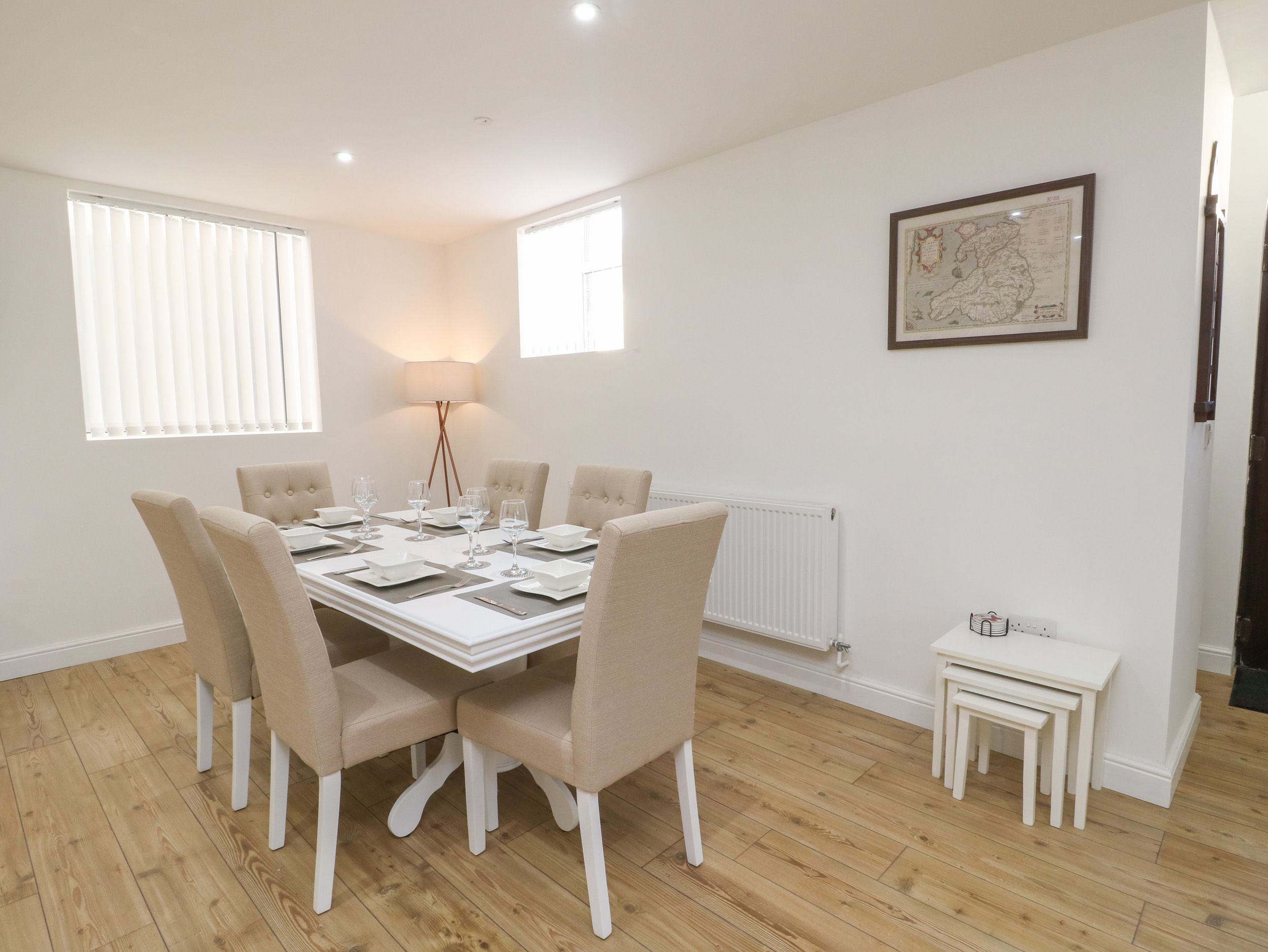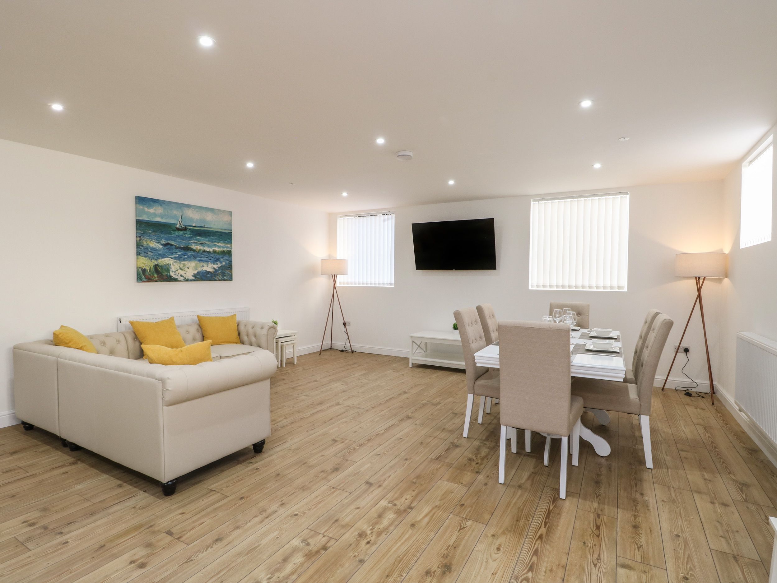 Accomodation Details Three bedrooms: 1 x king-size, 1 x double, 1 x twin. Bathroom with bath, handheld shower, walk-in shower, basin, heated towel rail and WC. Open-plan living space with kitchen, dining area and sitting area