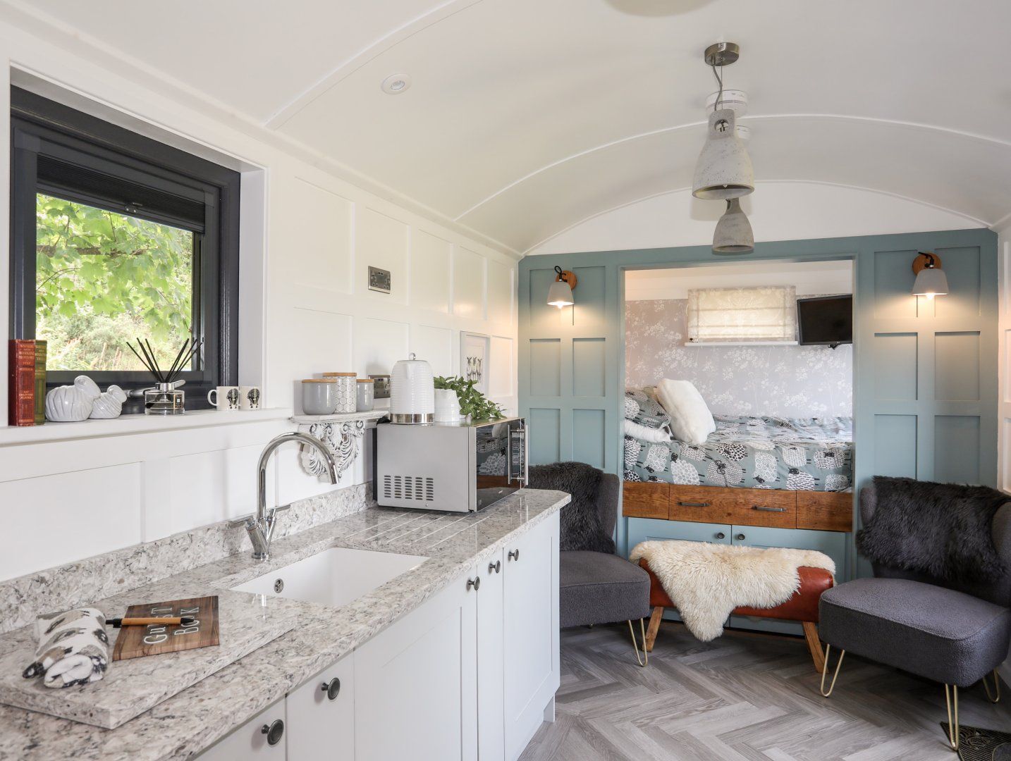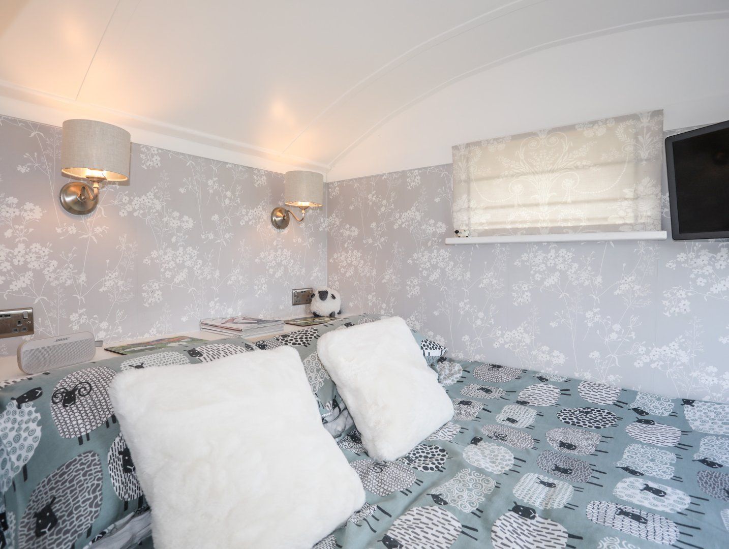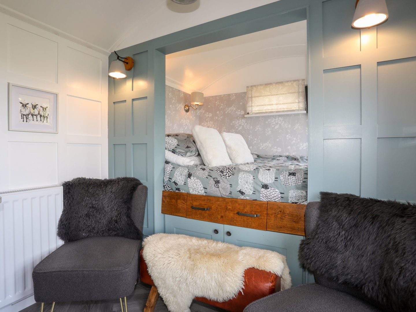 Holiday home The living areas in this shepherd’s hut consists of a studio-style layout with a double bed, kitchenette equipped with a 2-ring induction hob, microwave/grill, fridge with ice box and a toaster, dining area with seating for two guests and a sitting area with TV. There is also a shower room. Outside, there is an enclosed lawned garden with patio, barbecue, and a hot tub, along with available parking. Within 3.3 miles, you will find the nearest shop, and within 1.5 miles, a pub and beach. Please note, this is a non-smoking property. WiFi, fuel, power, bed linen, and towels are all included in the rent. Enjoy a romantic getaway to Anglesey at Shepherd’s Stone. Note: Check-in from 4pm, check-out by 10am. Note: Steps up to property may be unsuitable for those with mobility issues. Hot tub available at an additional £35 supplement. Please note the hot tub will need to be requested by Sykes.