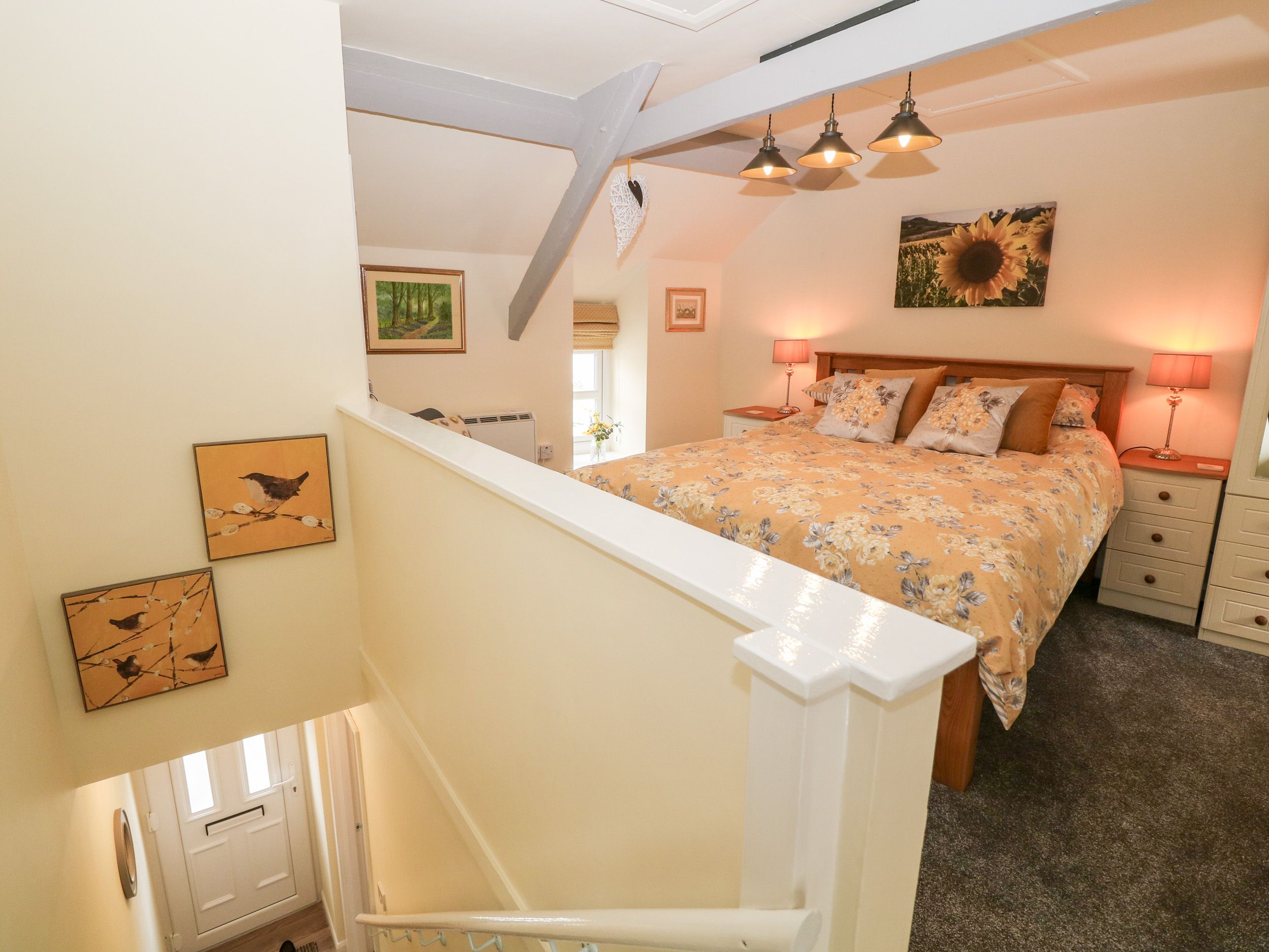 Accomodation Details Over two floors. One king-size bedroom. Ground-floor bathroom with bath, shower over, basin and WC. Kitchen. Sitting room with electric coal effect fire