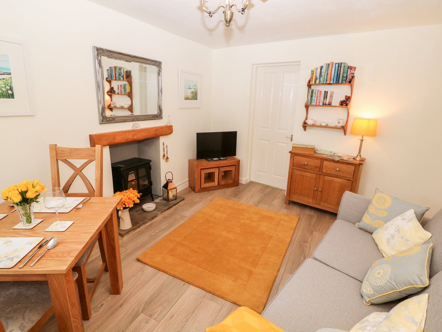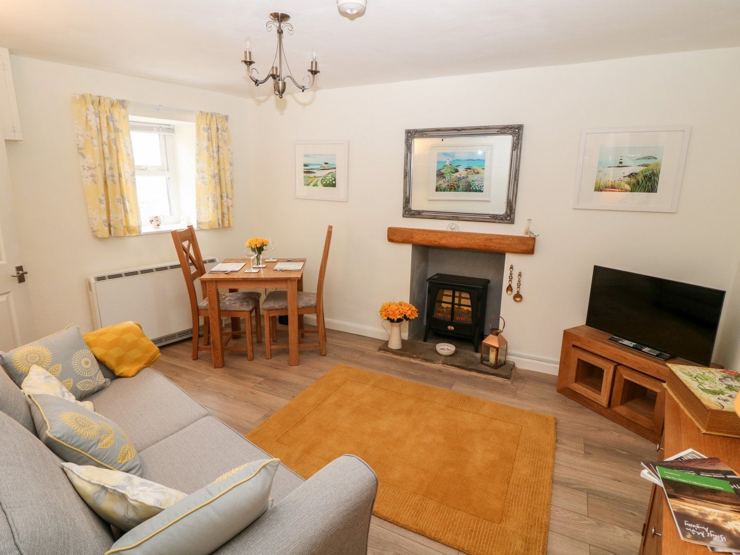 Amenities Electric central heating and electric coal effect fire. Electric oven and hob, washing machine, microwave, fridge, freezer. Hairdryer, iron and ironing board. Smart TV and WiFi. Power inc. in rent. Bed linen and towels inc. in rent. Roadside parking outside the property on a first come first served basis. Rear garden with gravelled and lawned area with furniture. One well-behaved dogs welcome. Sorry, no smoking. Shop 2.8 miles, pub 2.4 miles. Please note: this property only accepts check-ins on Thursday or Friday.