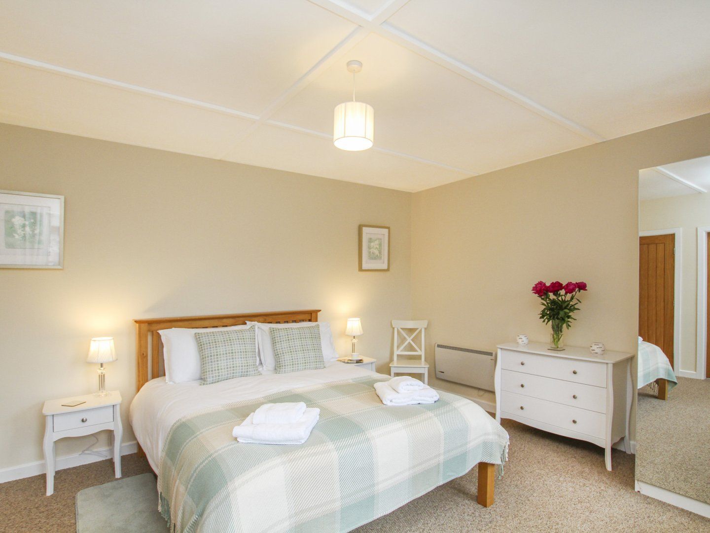 Two bedrooms - Master ensuite bedroom with king size bed (the ensuit has shower, loo and wash hand basin). Twin bedroom.