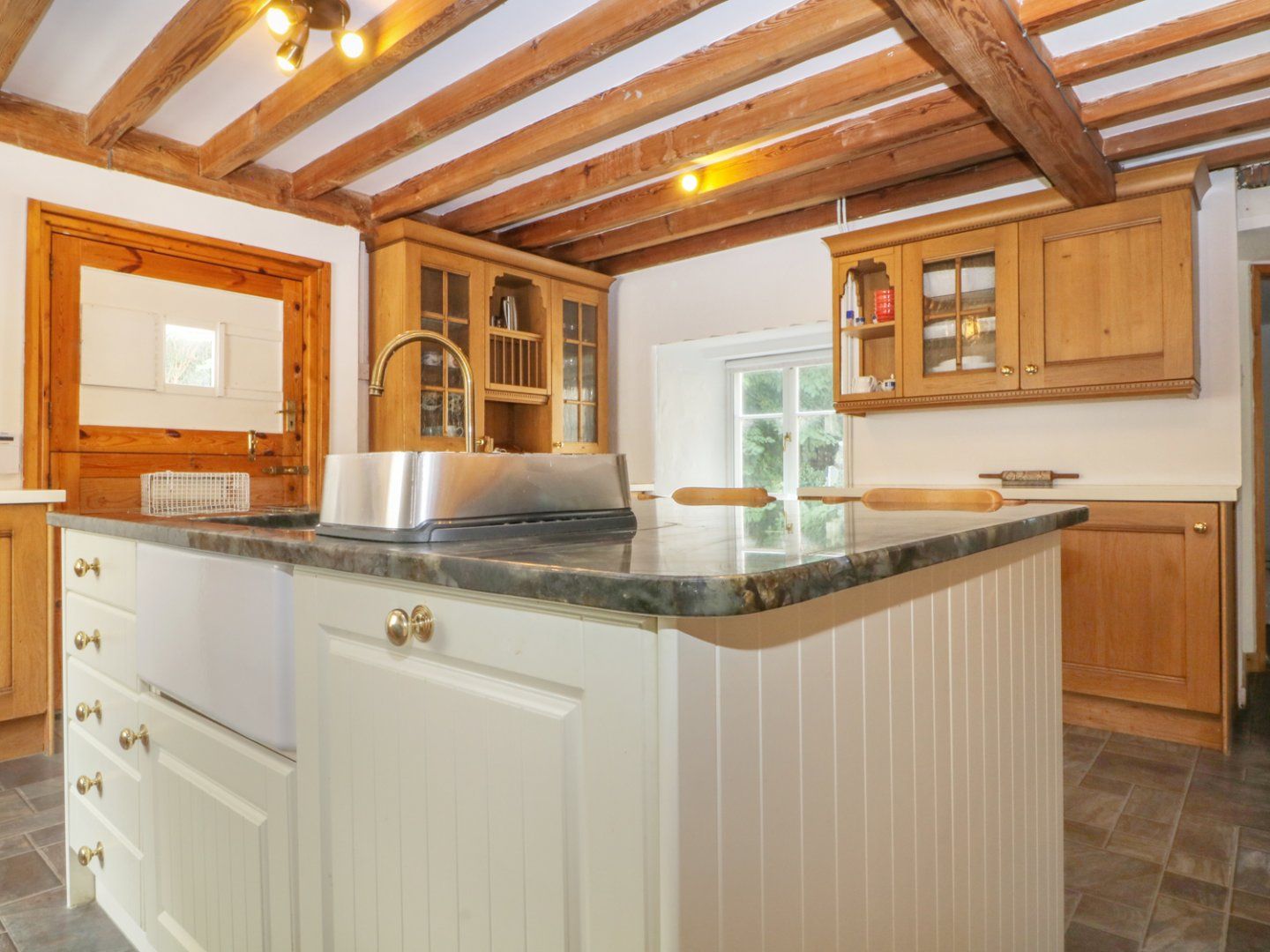 Accomodation Details Over three floors. Six bedrooms: 1 x ground floor king-size double with en-suite walk-in shower, basin and WC, 1 x first floor king-size, 1 x first floor twin, 1 x lower ground floor single (with trundle bed), 2 x lower ground floor king-size. Lower ground floor bathroom with bath, shower over, basin and WC, Lower ground floor bathroom with bath, basin and WC. First floor shower room with shower, basin and WC. Ground floor cloakroom with basin and WC. Kitchen with breakfast bar.