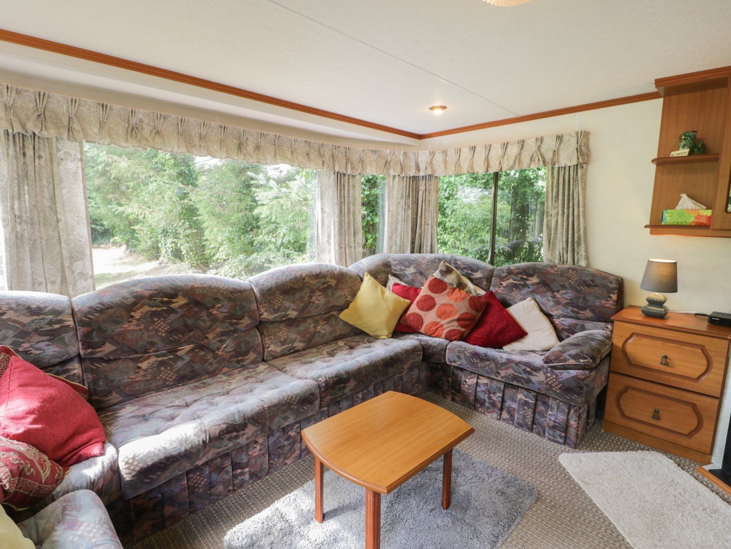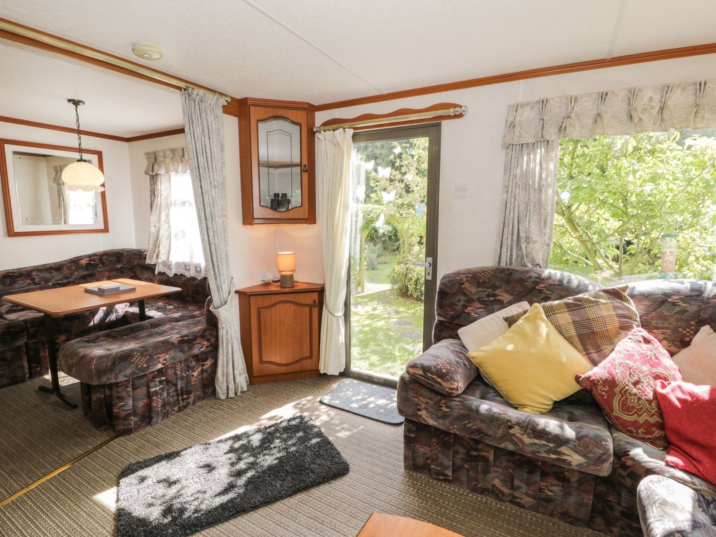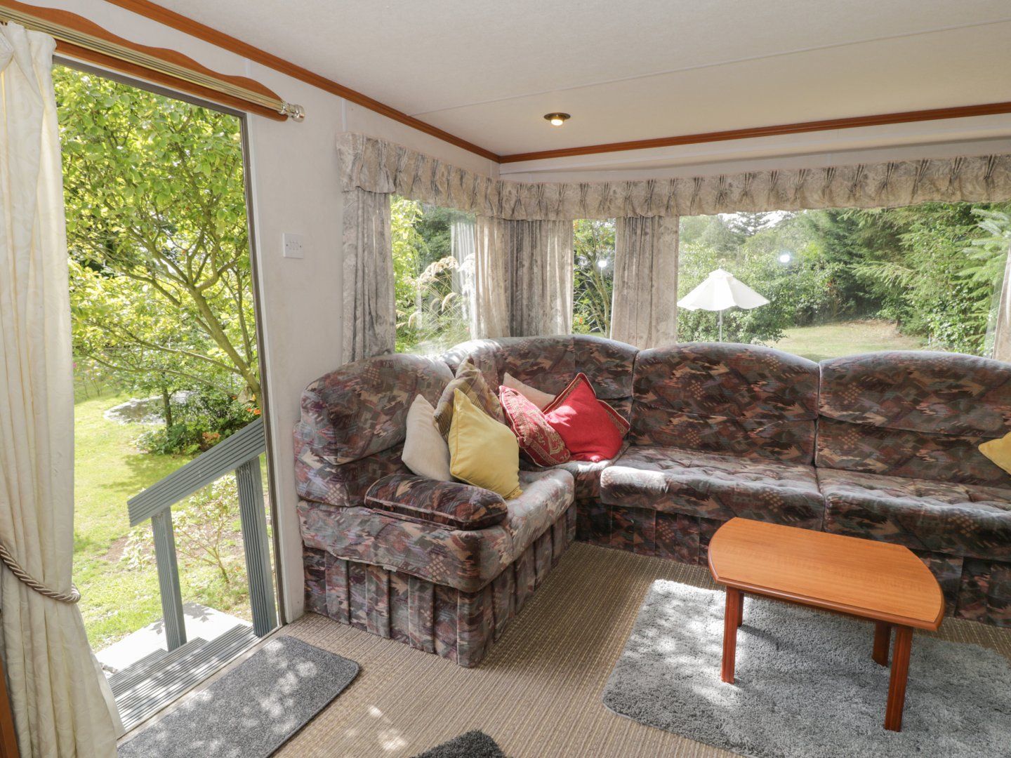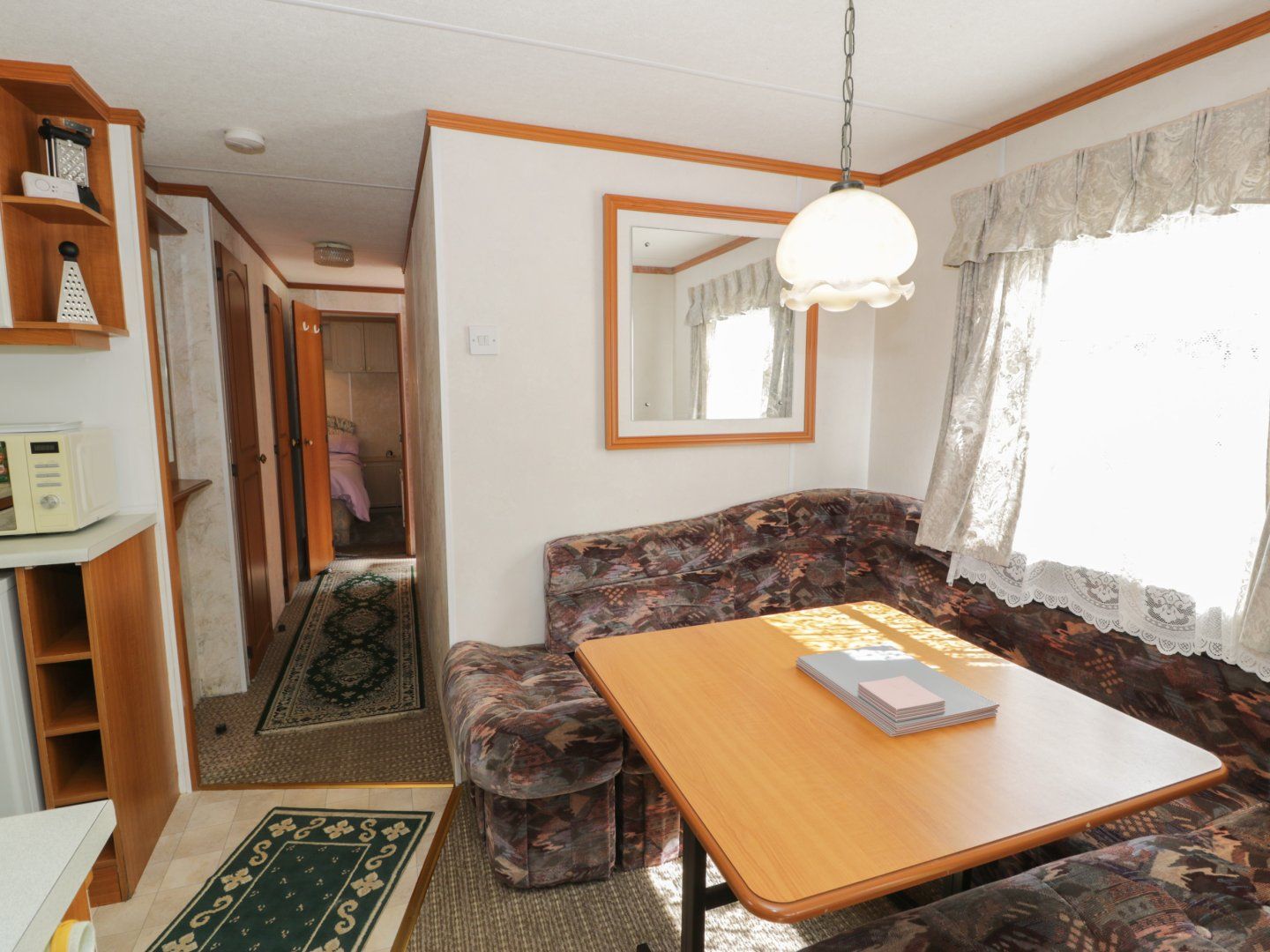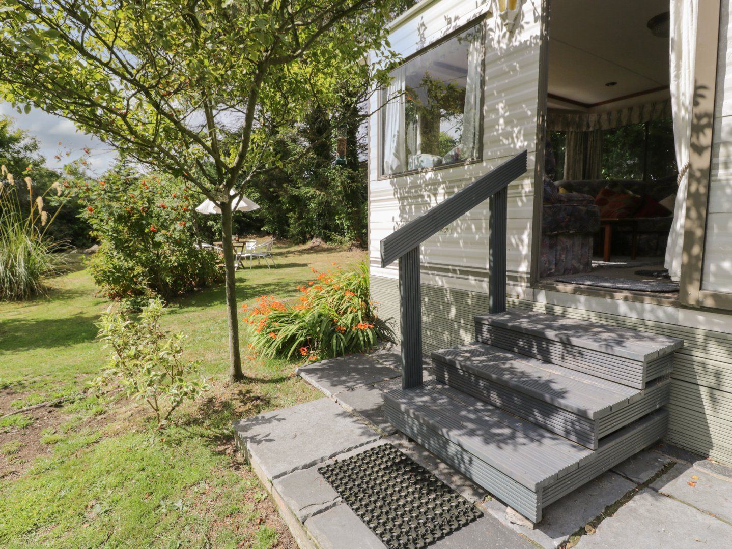 This static caravan has an open-plan living space. The kitchen has a gas oven and hob, microwave, and fridge with ice box, a dining area for four guests, and a sitting are with a TV, DVD player, and gas fire. There are three 4' double bedrooms, a shower room, and a cloakroom. Outside, there is a private garden area within the owner's grounds with furniture, and off-road parking for one car with additional roadside parking. Within 3.4 miles, there is a shop, within 2.5, a pub, and within 1.3, a beach. Please note, no pets and smoking is not allowed. WiFi, fuel, bed linen and towels are all included in the price. Note: Located next to owner's home. Note: Unfenced pond in garden, children and dogs must be supervised. Note: Two double bedrooms have access on one side. Note: Payment is required for electricity via £1 or £2 coins. Set in a secluded spot surrounded by vegetation, Fron Dderw Caravan is a peaceful base for families to explore Anglesey.