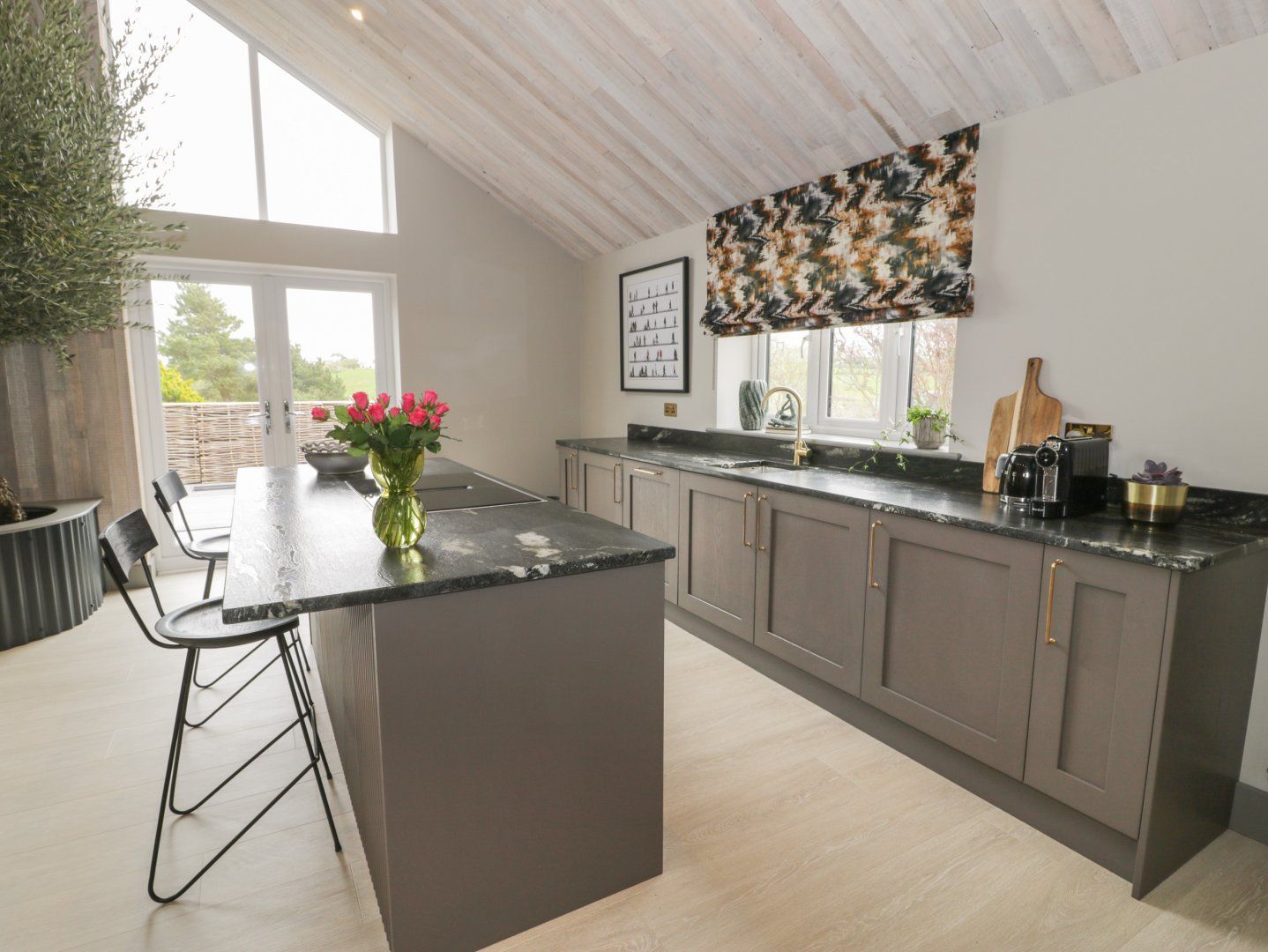 Please note: property requires a minimum stay of 3 nights. Ground-floor home. One king-size bedroom with en-suite bathroom with free-standing bath, walk-in shower, double basin, heated towel rail, and WC. Open-plan living space with kitchen, dining area and sitting area with woodburning stove